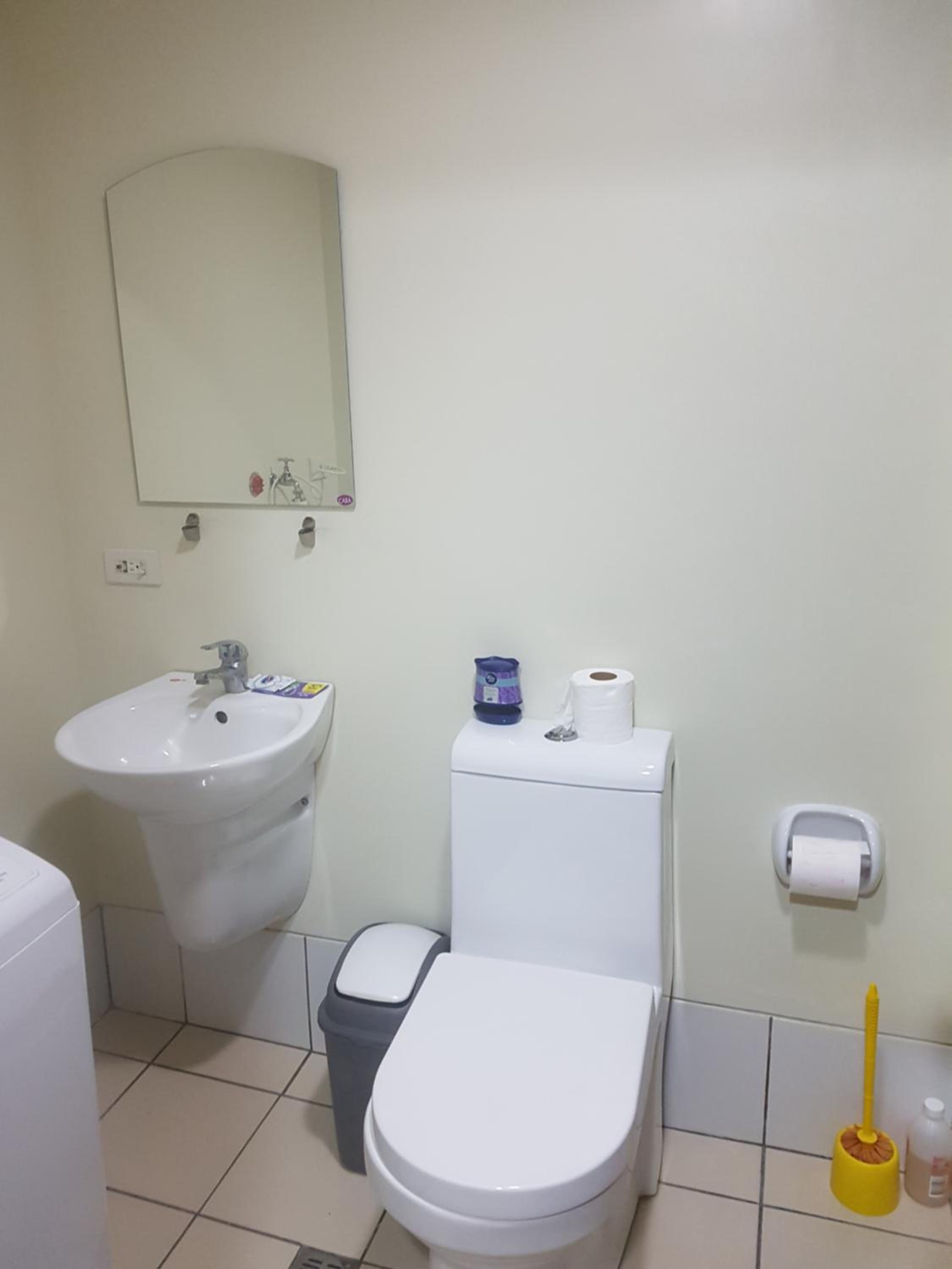 El baño sucio, olia a orina bastante. Había cucarachas por todo el edicficio.