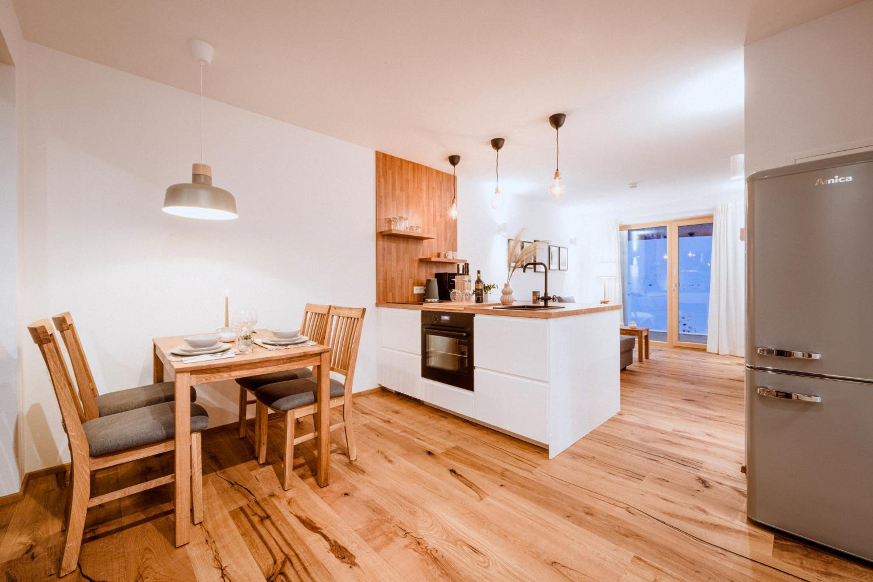 Piękne, nowoczesne, doskonale wyposażone apartamenty. Bardzo praktyczne dodatki oraz wykończenie w naturalnym drewnie dodaje uroku i przytulności. Super miejsce na pobyt z pupilem- dookoła natura, możliwość spacerów o każdej porze dnia. Blisko do stoków narciarskich - do 15 minut samochodem. Urokliwe miejsce, przemiła i gościnna obsługa. Dziękujemy za super pobyt. Cudownie wypoczeliśmy - mimo aktywności na nartach oraz długich spacerów po górach z psem. Napewno wrócimy wiosną lub latem.