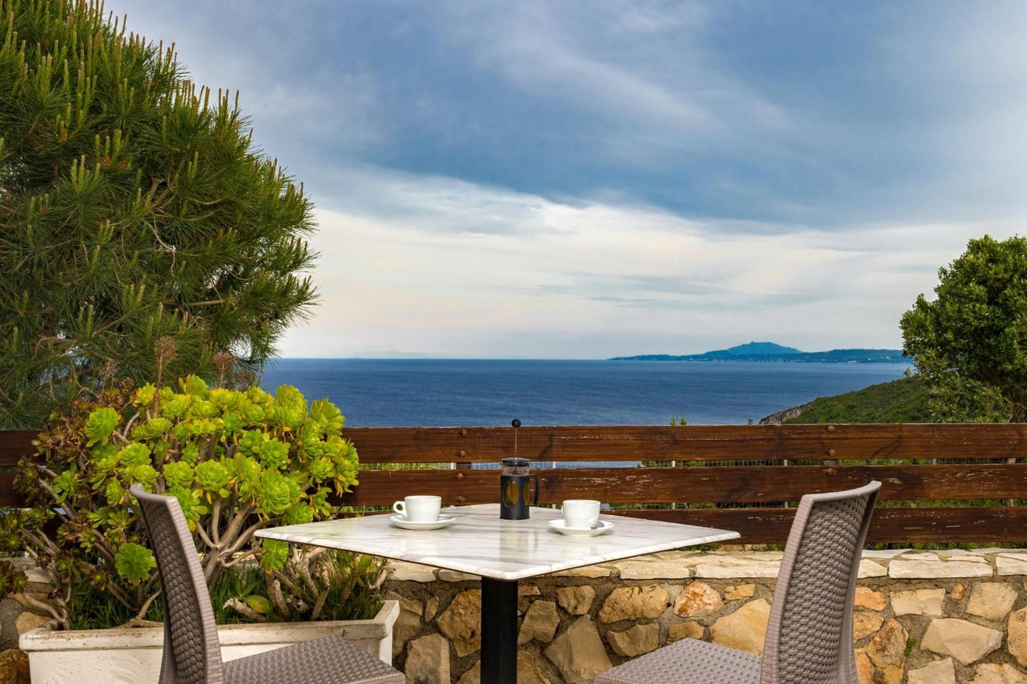 Це фантастичне місце. Ми жили в номері з терасою, де можна посидіти в любий час , так як є накриття від сонця. Вид приголомшений . Номер звичайний . Ви виходите з номера і відразу біля вас таверна також з приголомшеним виглядом на море. Сніданки брали, дуже смачні і поживні . В таверні працюють привітні і дуже уважні дівчата з України та Молдови. Майте на увазі, близькість таверни абсолютно не порушує ваш спокій, ніяких запахів кухні, шуму не відчуваєте у цьому помешканні. Далі від таверни відразу йде спуск до моря широкими сходами біля 250 метрів. По дорозі розташовані декілька платформ з зручними , безкоштовними шезлонгами. Платформи деякі мають захист від сонця, що є дуже зручно . Скрізь ви бачите шикарне іонічне море. Є можливість пострибати у море з висоти 6, 8 і здається 10 метрів. Снорклінг шикарний, бачила рибу - крилатку, морську зірку та інших морських жителів.Дякуємо Яніні за комфортний відпочинок.