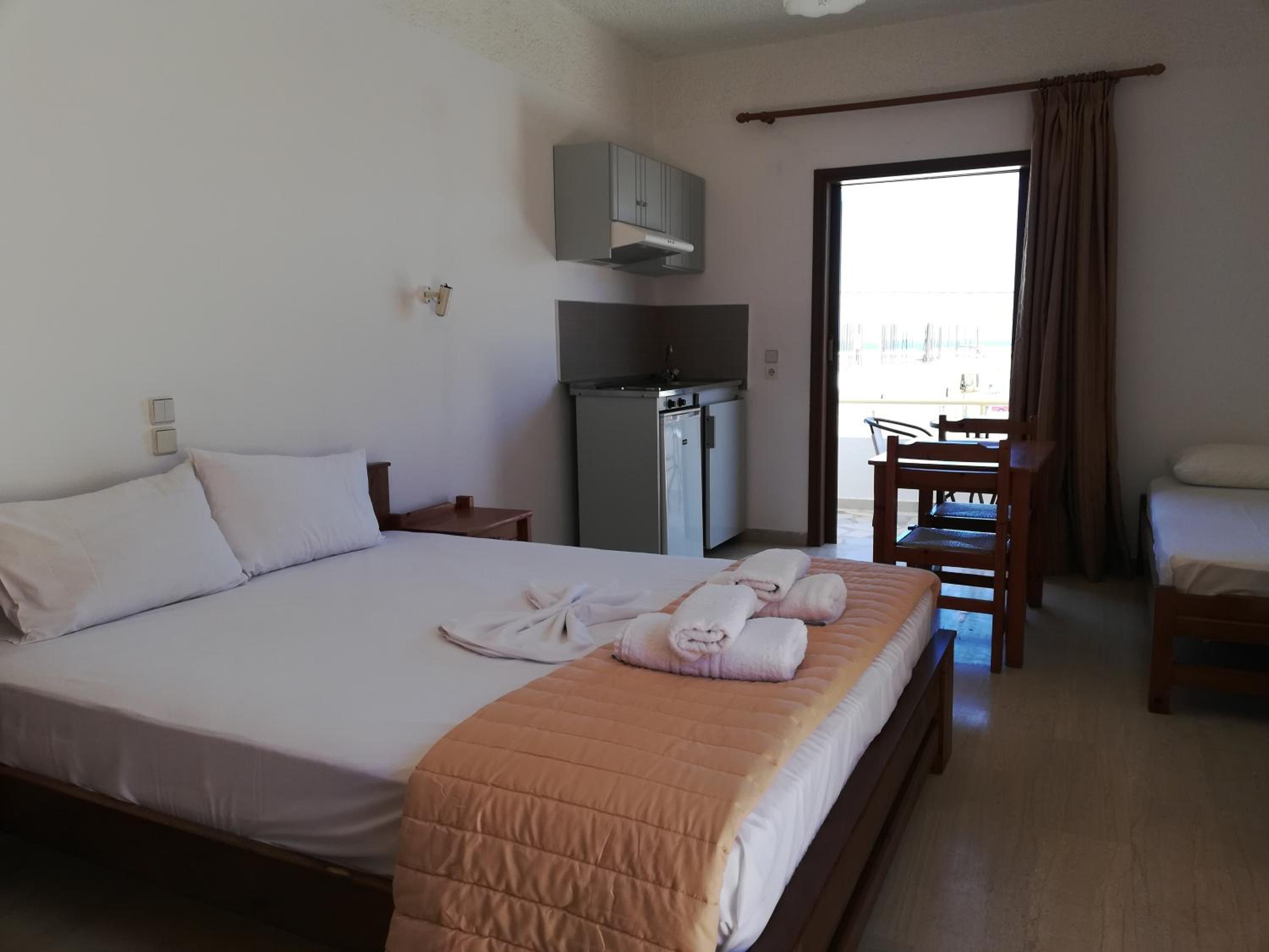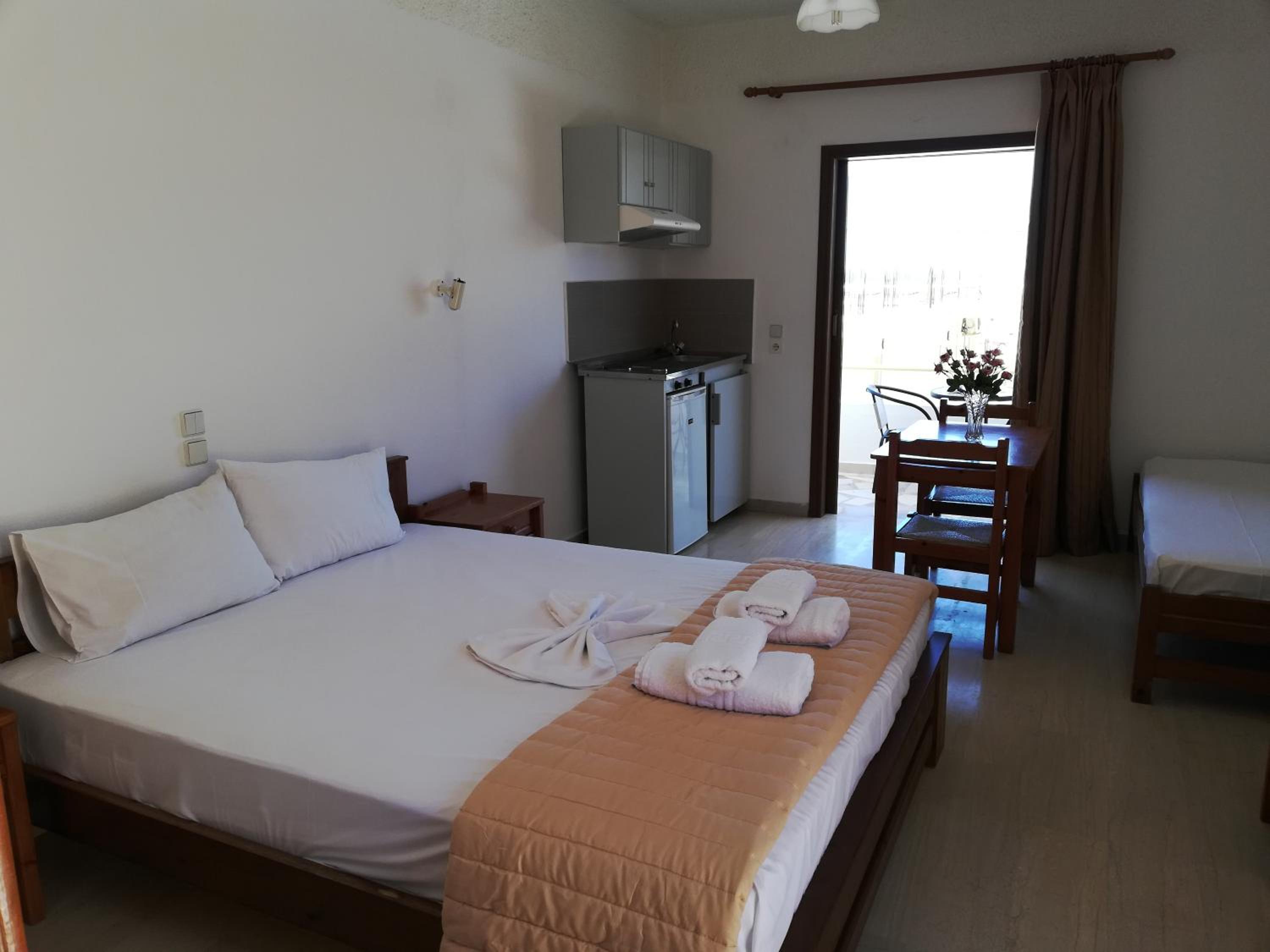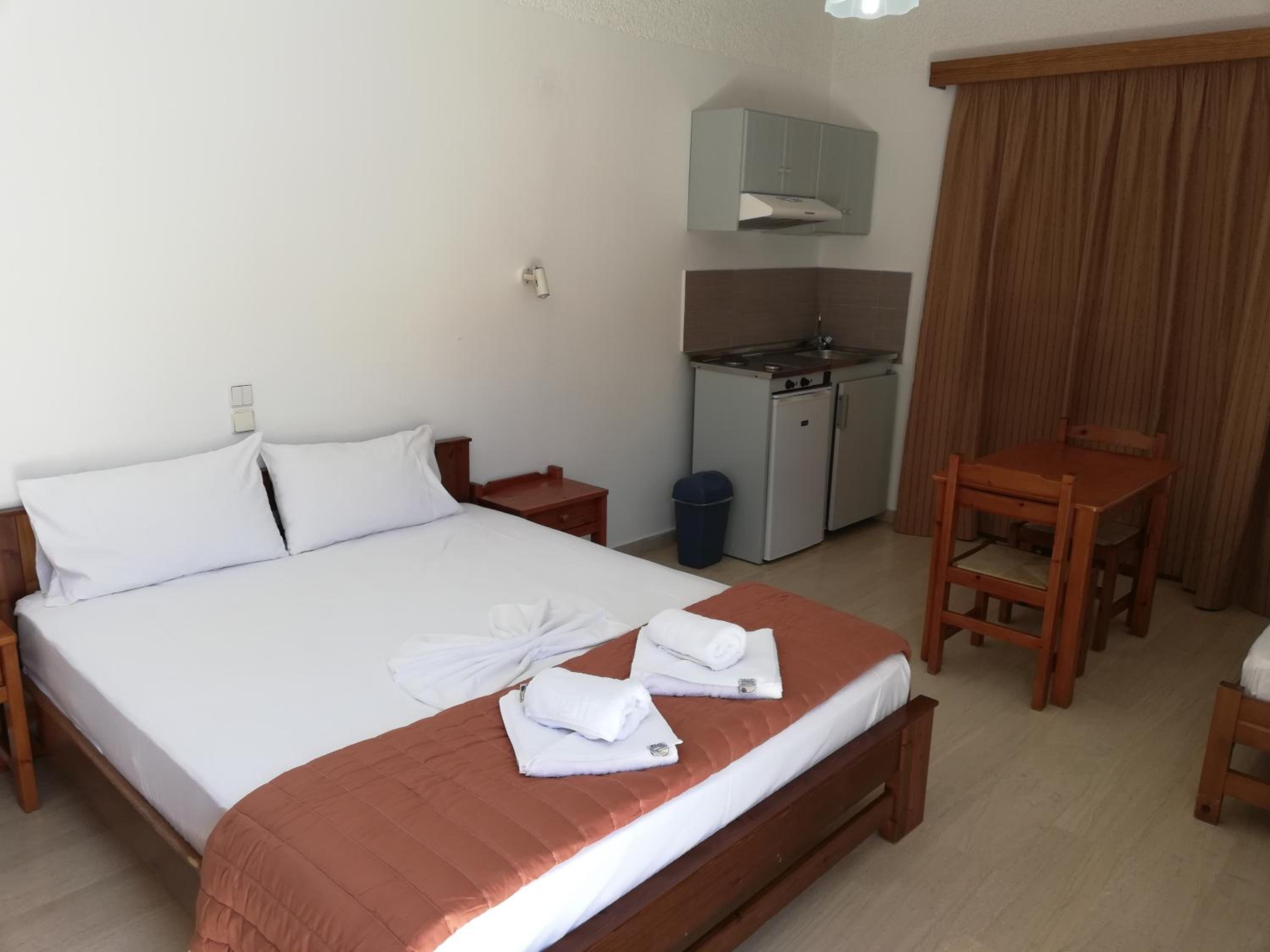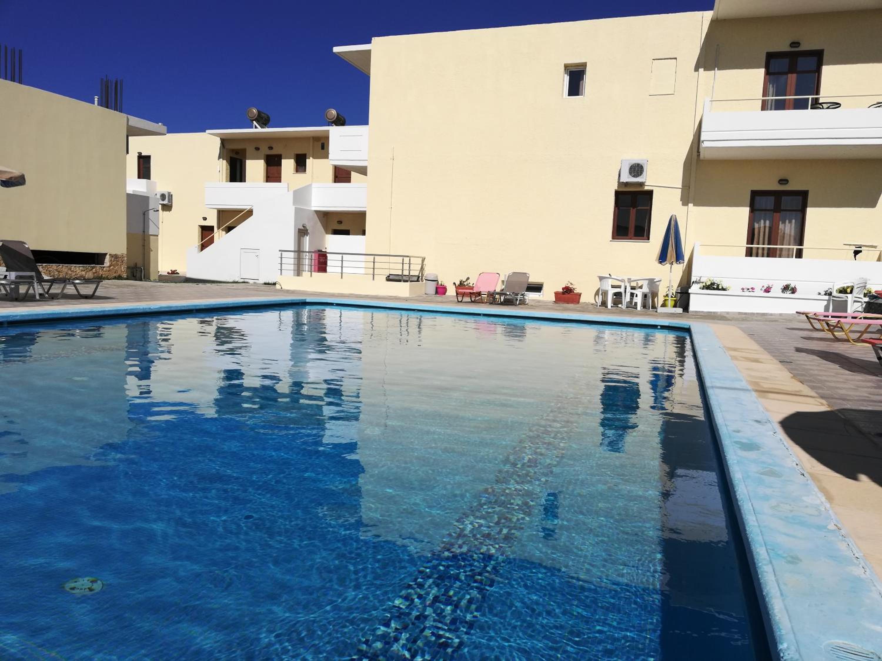 Accomodatie is gewoontjes maar netjes,zeer goede matras en hoofdkussen,heerlijk zwembad,goede ligging met leuke strandjes op weg naar Kissamos