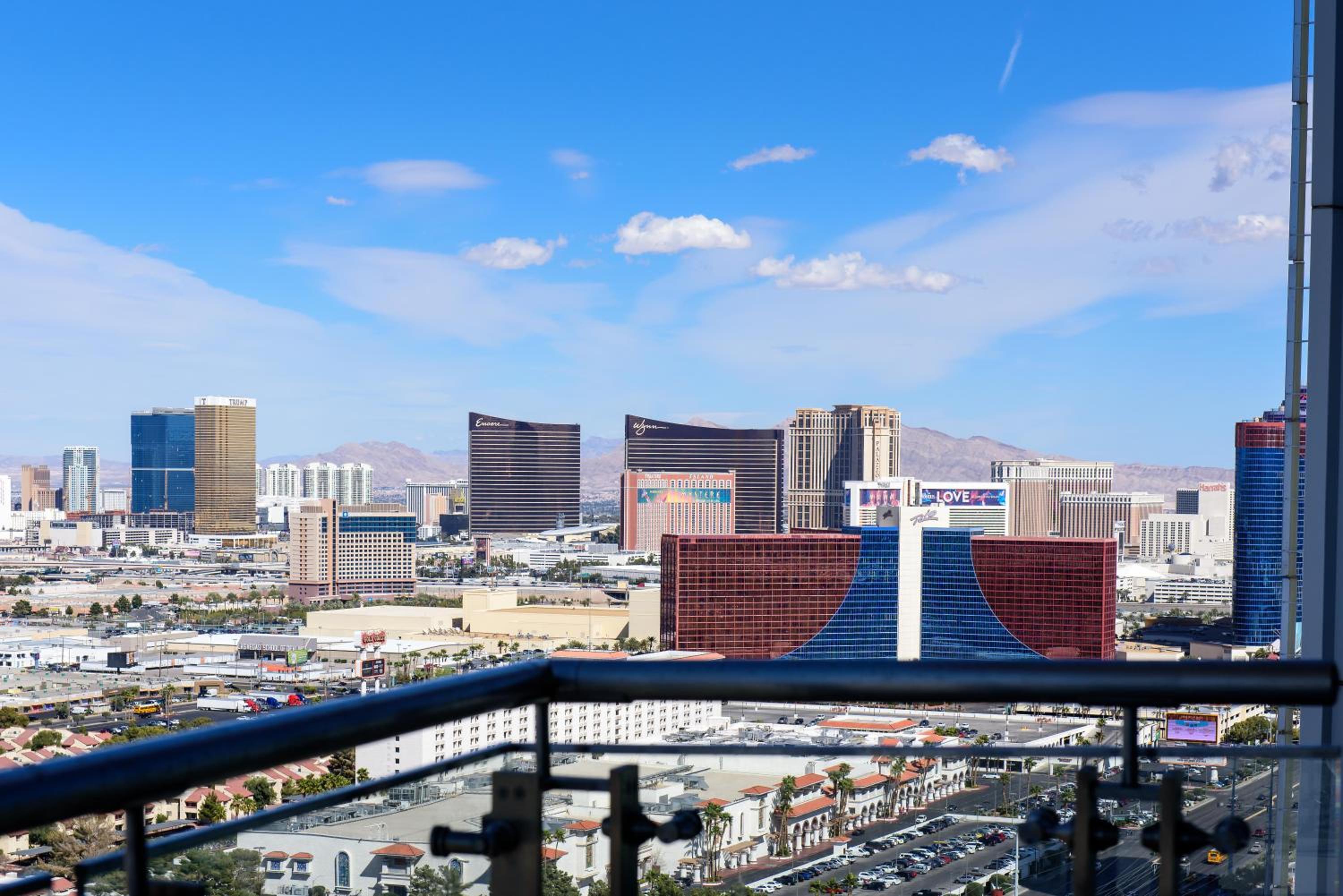 The view from the room's balcony was spectacular. The building was nice and the Palms Casino was nice . The location was nearby everything and made getting around really easy. Had a full size refrigerator and washer/dryer.