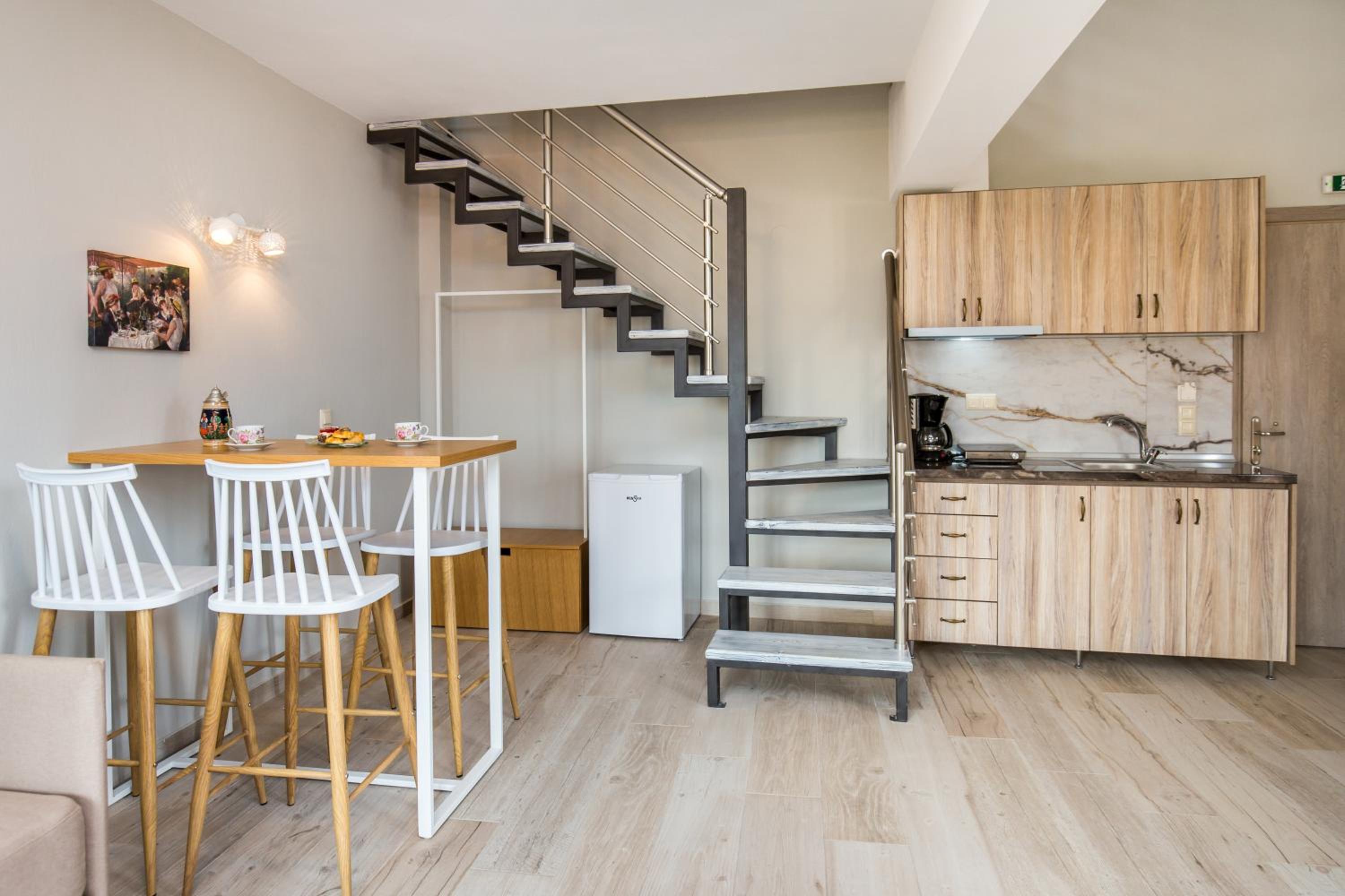 Indulge in modern amenities including a fully equipped kitchen, flat-screen TV, and free WiFi. Start your day with a buffet breakfast or savor a continental spread at the on-site coffee shop and lounge.