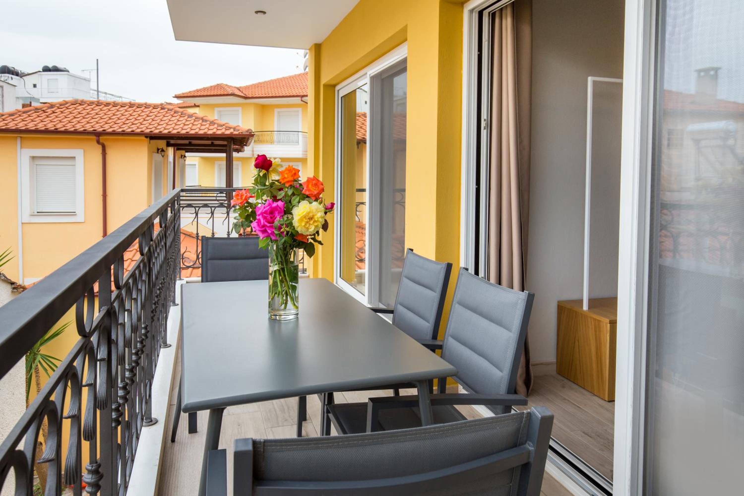 Harika bir konum plaja 200 300 metre ,markete ,restoranlara yakın olması araba kullanmamak muhteşemdi...