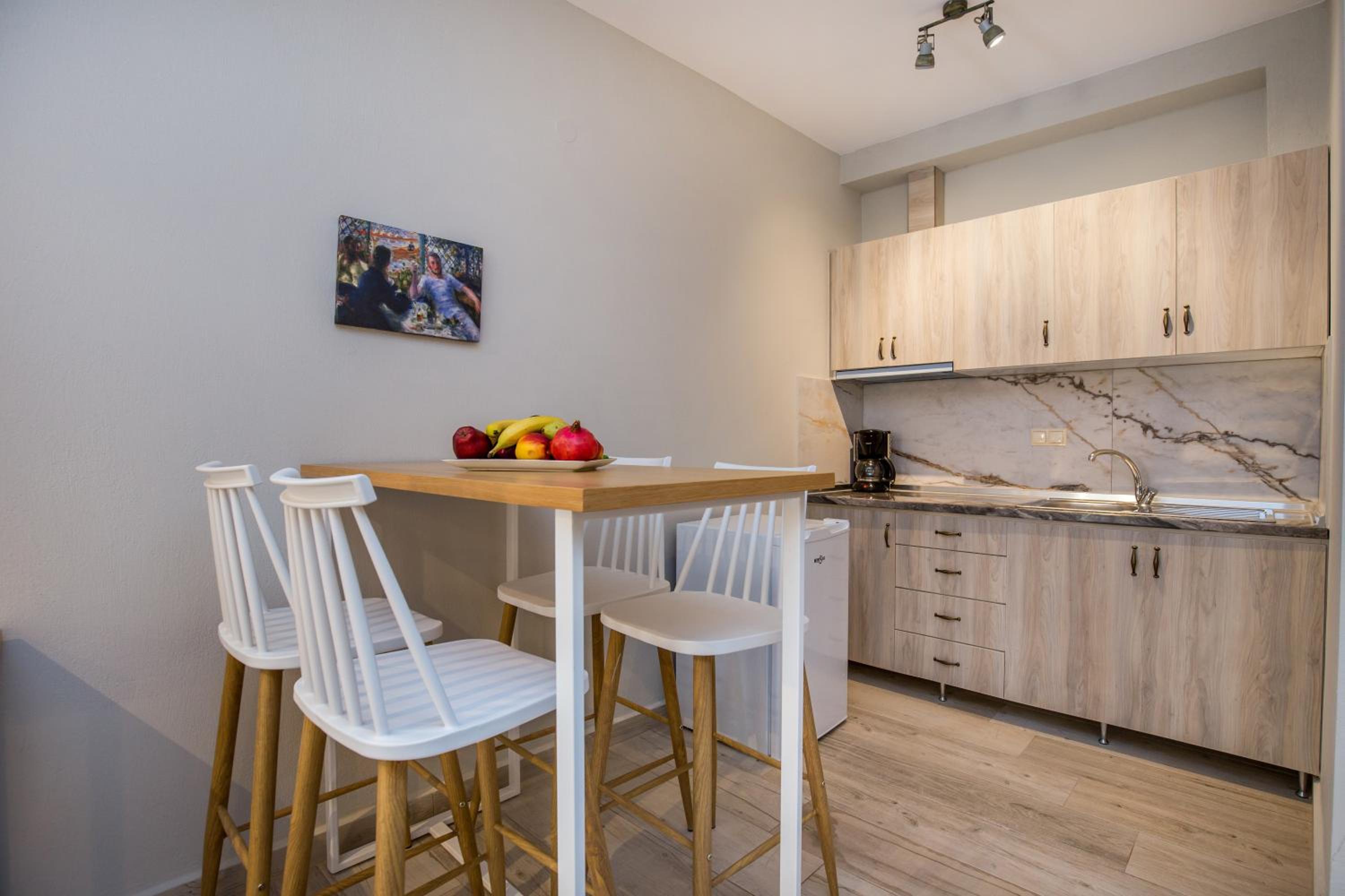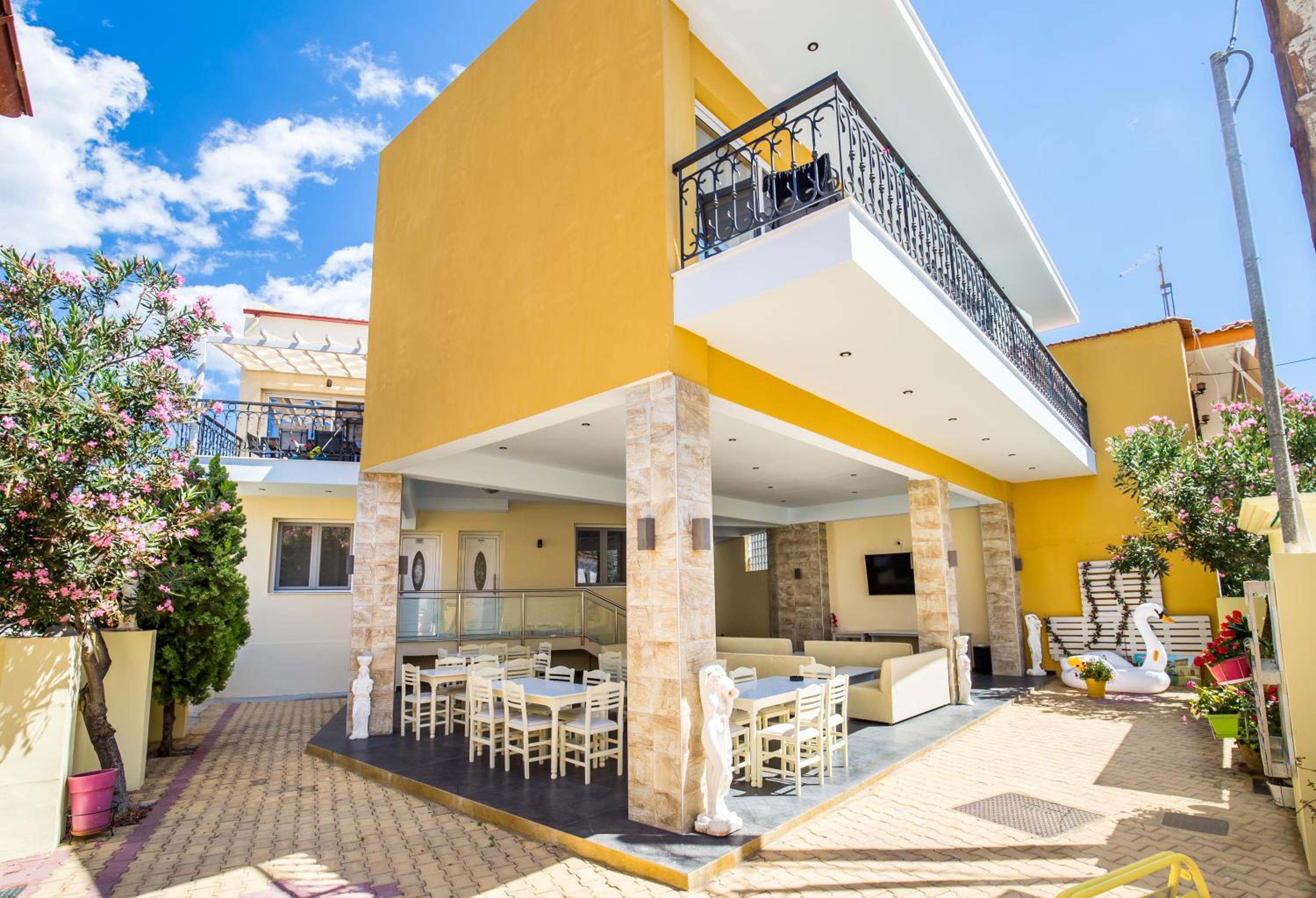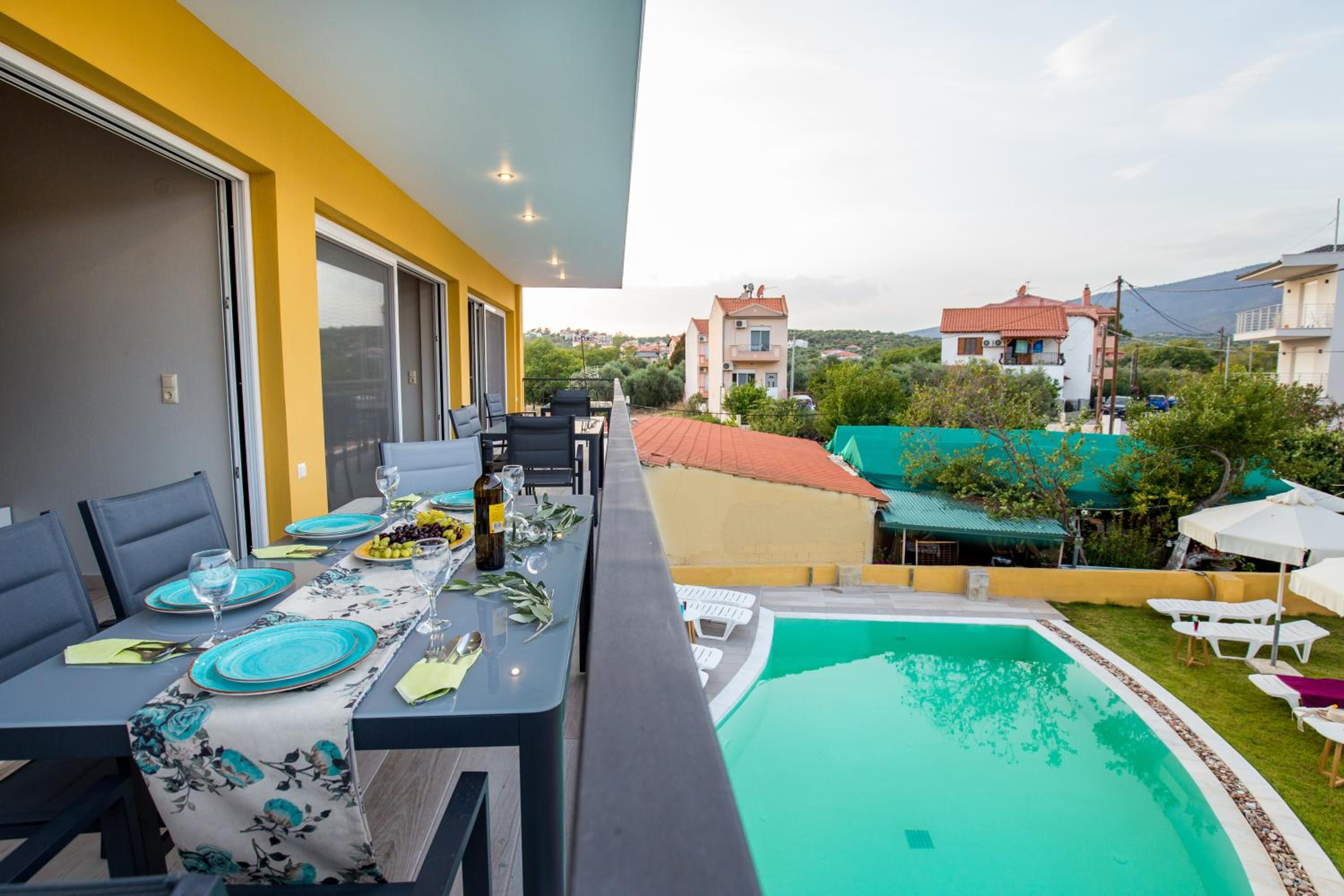 O locatia excelenta, apartament spatios, pretabil pentru familii cu copii, modern, foarte curat, asternuturi si prosoape schimbate la 2 zile, gazda foarte primitoare si de ajutor. Se poate lua masa si la ei, noi am incercat si mancarea a fost foarte buna! Locatia are si un bar exterior langa piscina, unde poti sta la taifas cu gazda sau pur si simplu savura o bere rece seara! In curtea interioara exista si un ecran TV imens unde se pot vedea meciuri in aer liber. Aproape de plaja din Limenaria si de faleza cu taverne. Supermarket cu de toate la 20 m de locatie. Piscina a fost un bonus foarte apreciat de copii! :) Cu siguranta vom reveni cu placere!