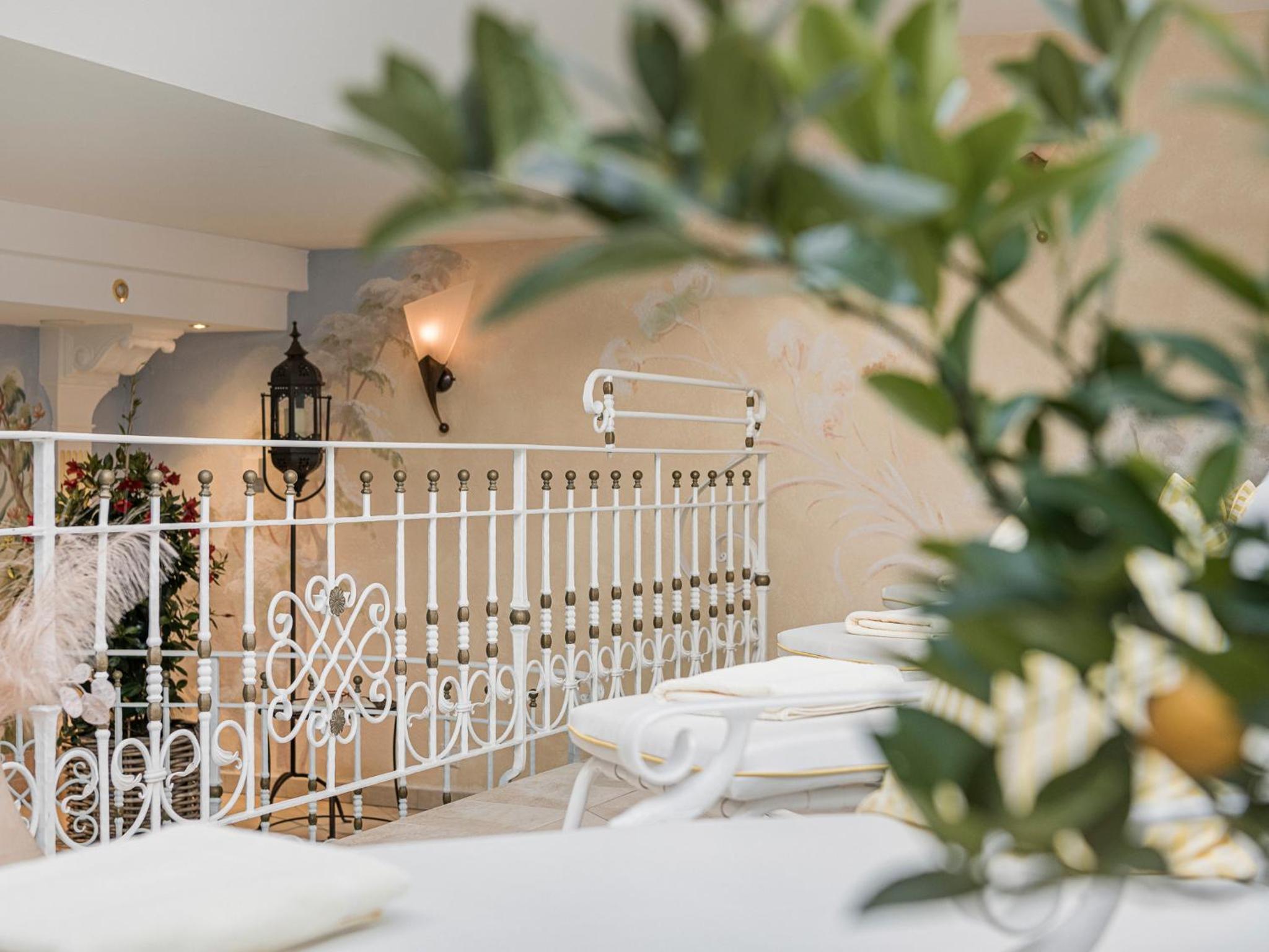 Indulge in relaxation at Apparthotel Veronika's spa area, boasting an indoor pool, hydrotherapy massage bed, infrared cabin, steam room, and wooden dry sauna.
