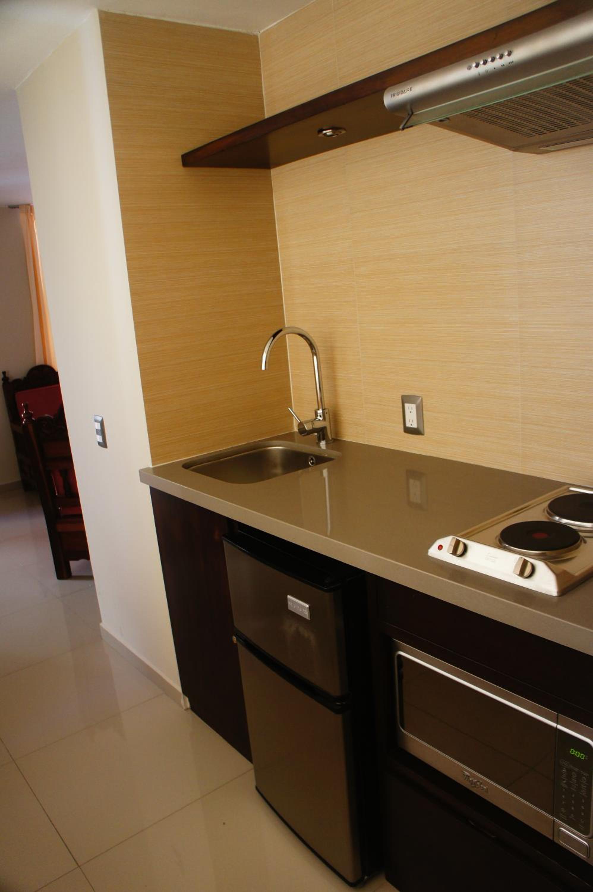 Very pleasant, convenient, central to Zona Dorado. Perfectly clean interior (bedroom, kitchen, living room area), modest exterior, in a quiet, pleasant, and safe neighborhood one block back from the main boulevard Camaron Sabalo. Restaurants within walking distance, also easy access for taxis and smaller open-air vehicles to various locations. Easy beach access by walkway between larger hotels one block away onto very clean and safe beach also used by larger hotels. Owned and managed by a Mexican family. VERY helpful and friendly manager Diana Angelica is devoted to comfort, service, and orientation, always available by phone if not on site. She welcomes you home to Suites San Luis upon arrival, and wants you to feel as if you are at home. Wonderful!