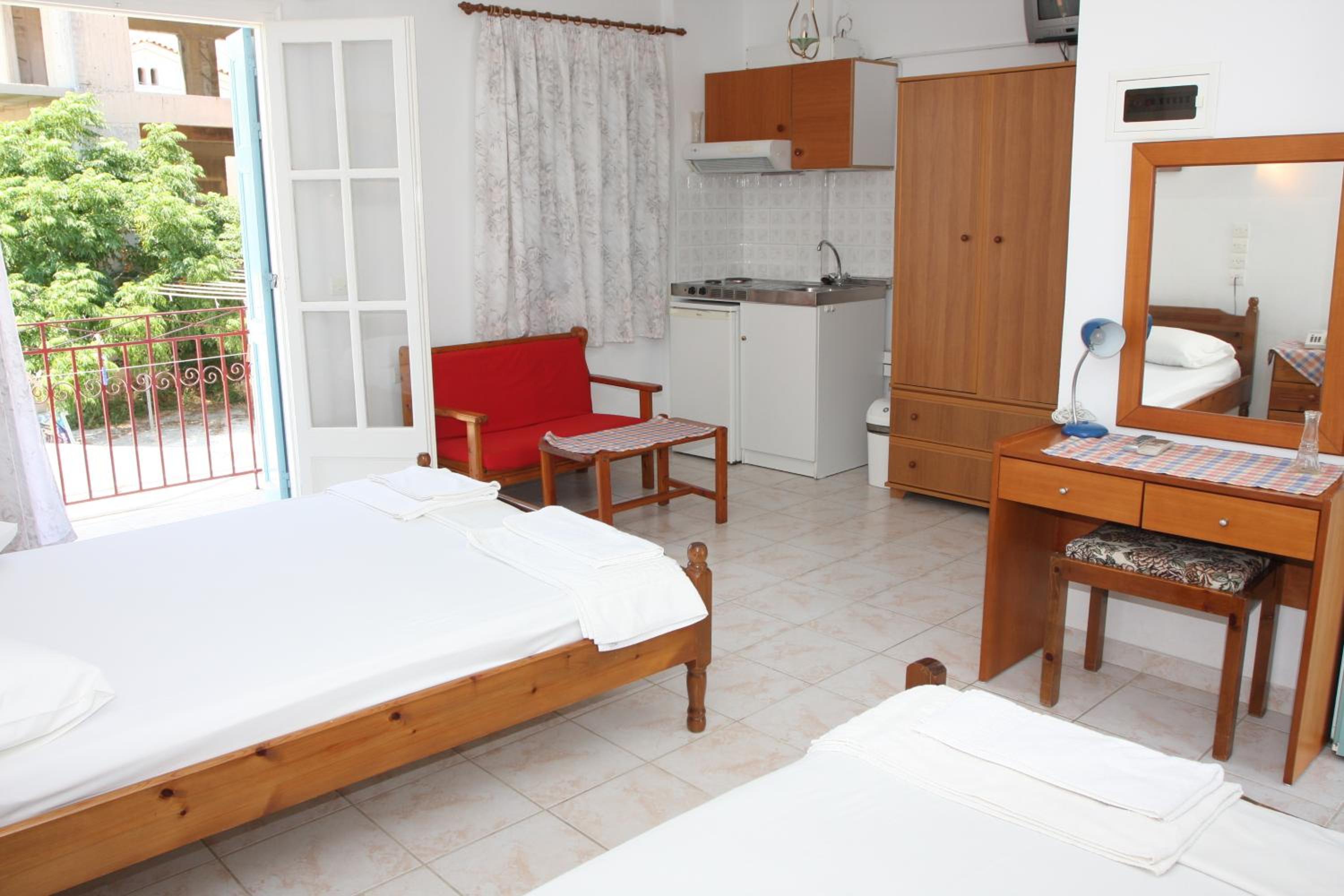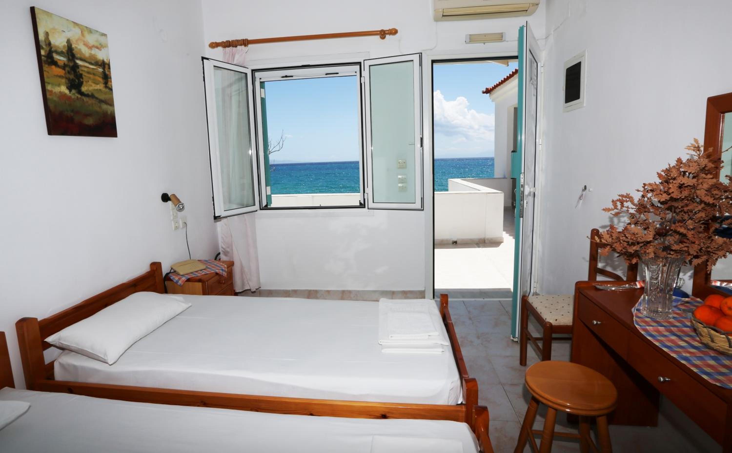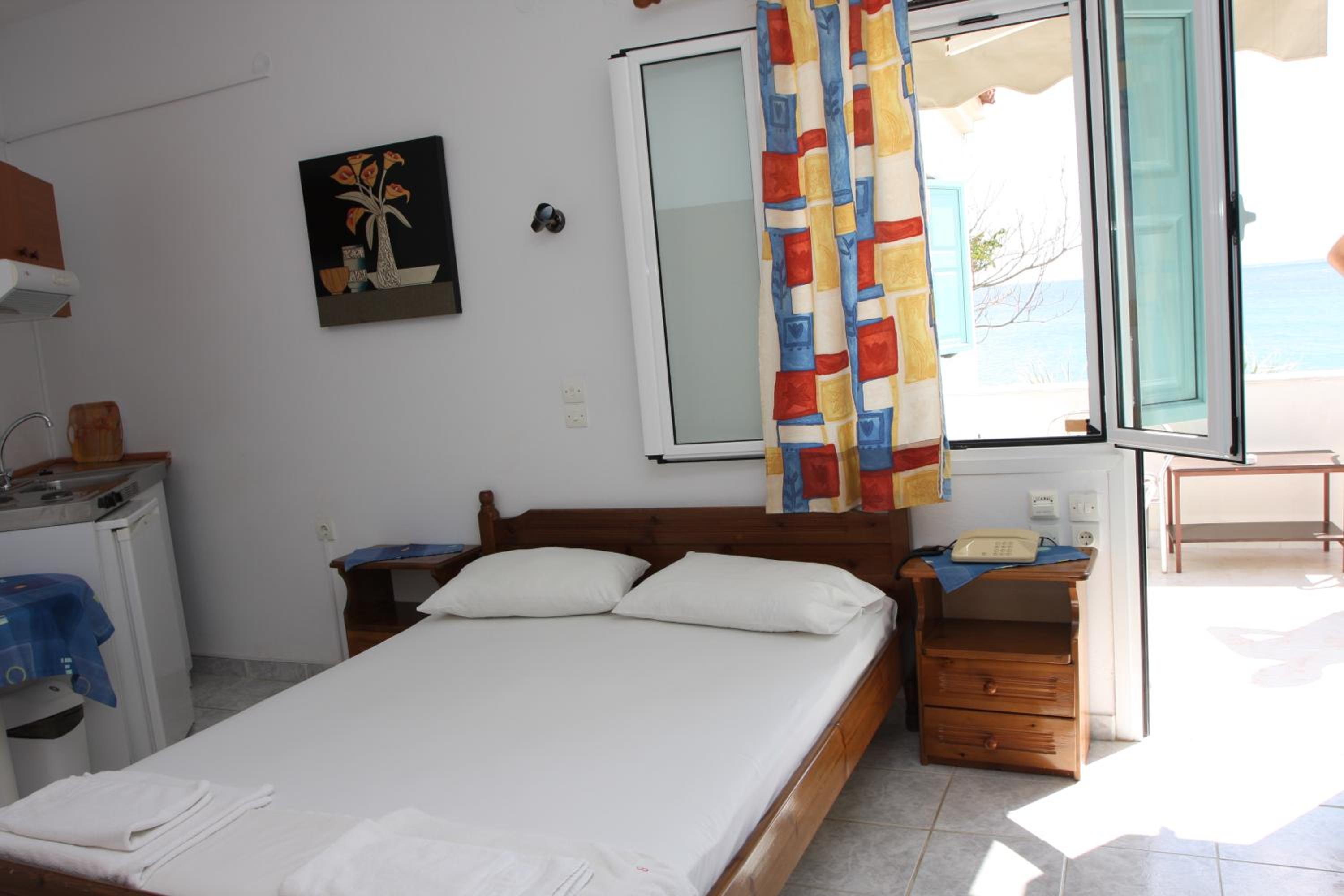 Öncelikle otelin sahibi İrini çok tatlı harika biri onu çok sevdik. Bize her konuda elinden geldiğince yardım etti. Otel hemen deniz kıyısında ve denizi çok güzel. İrini ve kızının hazırladığı kahvaltı çok lezzetli ve yeterli. Bizim kaldığımız odalar temiz ve ferahtı. 4 kız gittik çok memnun kaldık