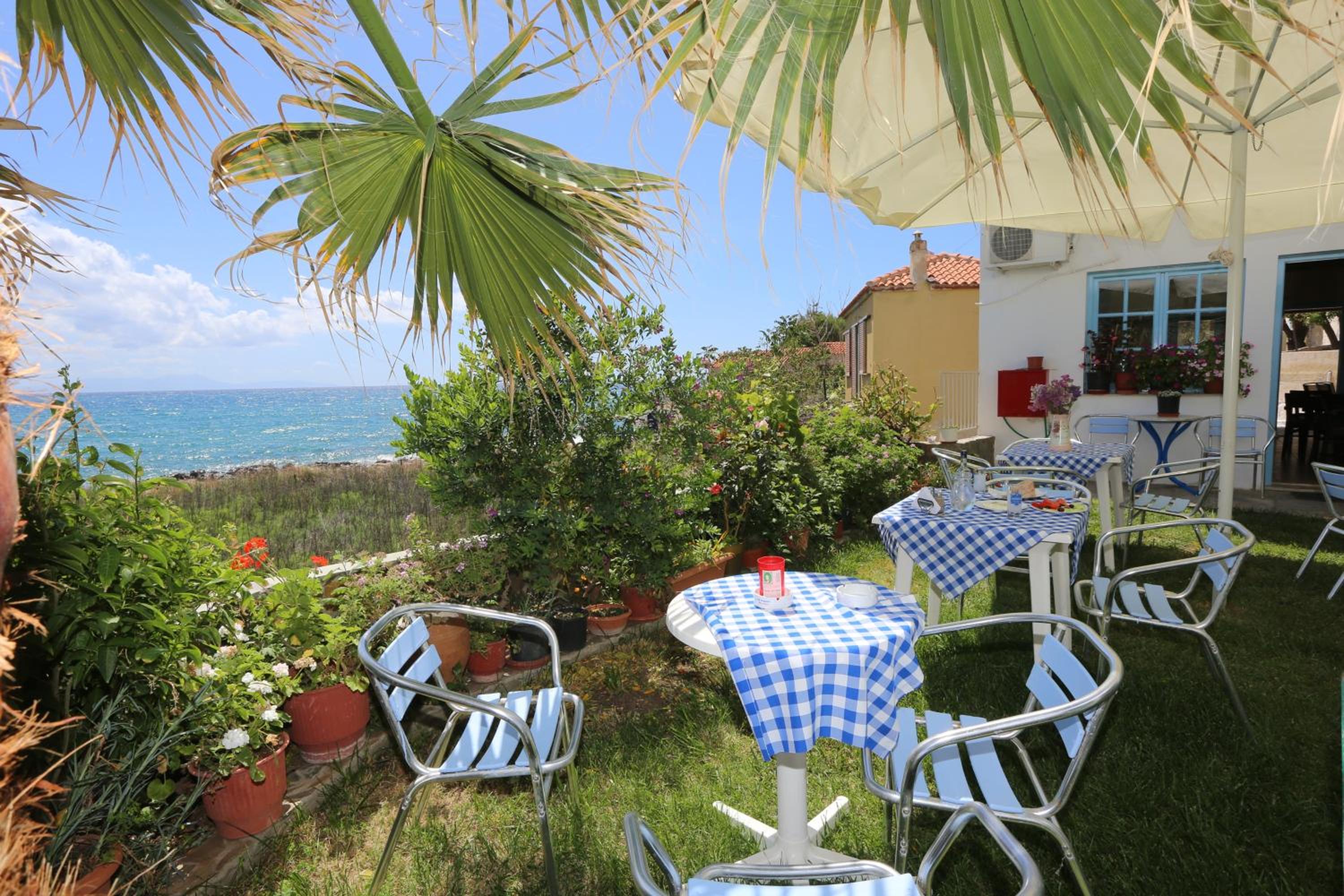 İrini ve ailesi çok tatlı, güleryüzlü karşıladı ve ilgilendi. Odalar bu bölgedeki en güzel denize bakıyor ve denize çok yakın tabiiki mayolarımızla çıkıp denize gittik çok konforluydu. Plomari merkezine arabayla 5 dk mesafede, akşam yemeği için orda birçok seçenek var ve marketler var. Hemen otelin yanında ücretsiz bir otopark var, dışardan denize gelenler de olduğu için gündüz saatleri otopark kalabalık oluyor ama akşam boşalıyor. Otel tertemizdi, her sabah otelden çıktığımızda odayı temizlediler havlular ve nevresim değiştirdiler. Kahvaltı bizce yeterliydi, bize demlikle türk çayı demlediler çok tatlıydı.