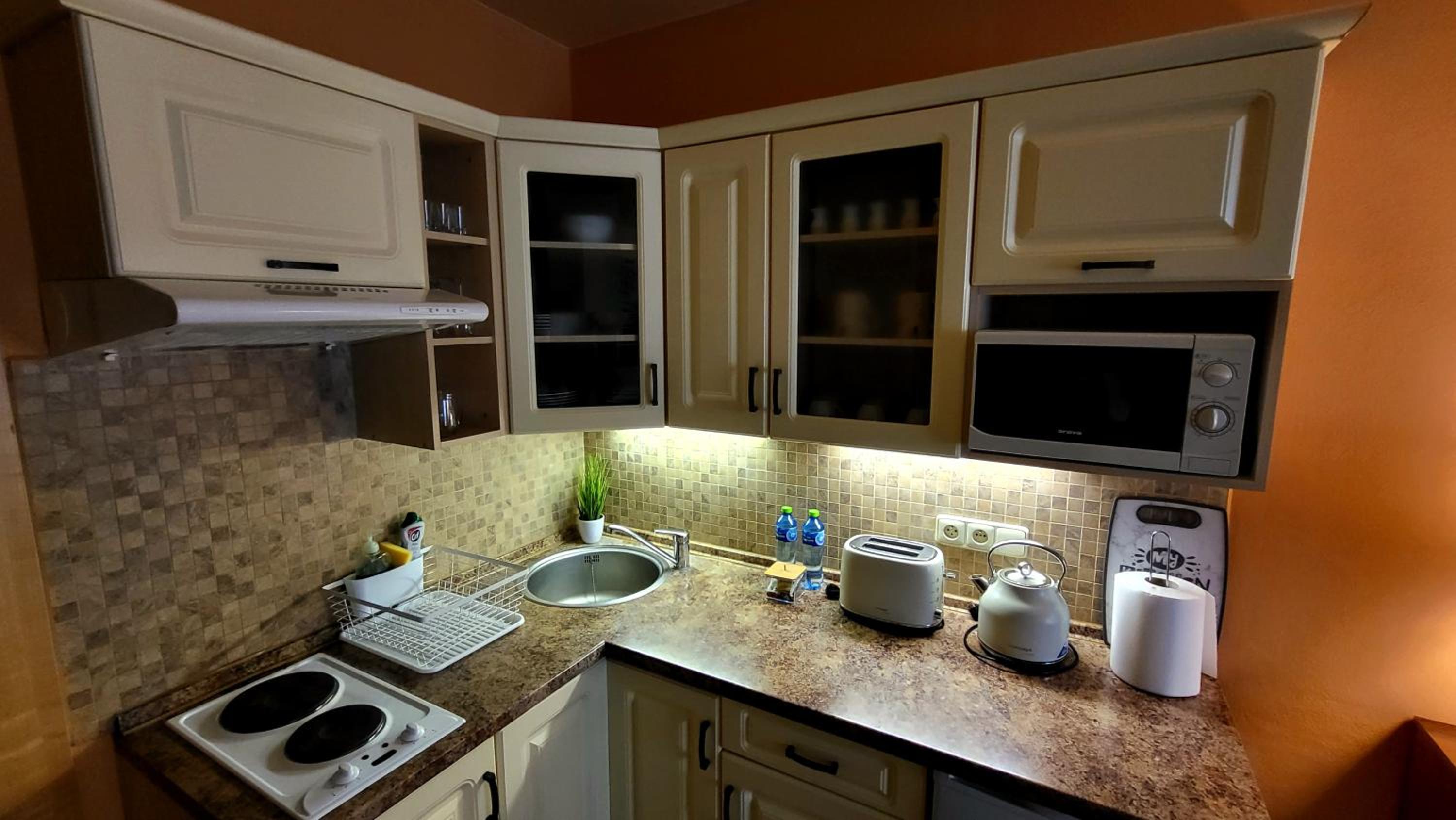 Tökéletes kényelem fogadott minket. A szállásadó figyel az apróságokra is: kávékapszula, mosogató eszközök, papírtörlő, piperecikkek, papucs. A konyhai eszközökben válogathattam. A személyes kapcsolat biztosított volt. A Kaufland nagy bevásárló központ gyalog a közelben elérhető.