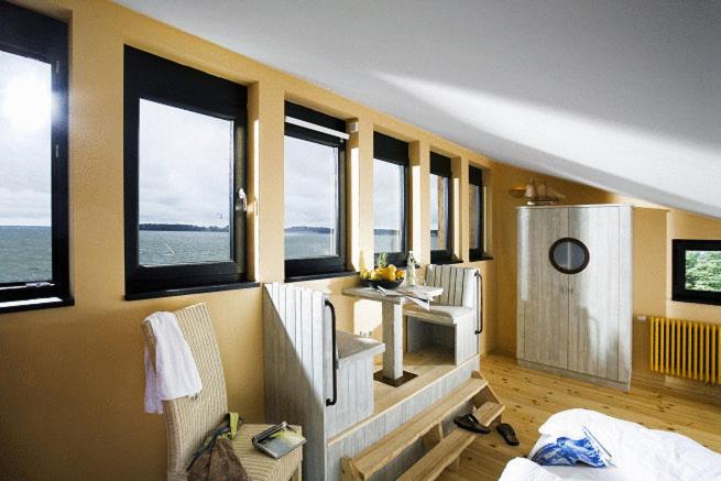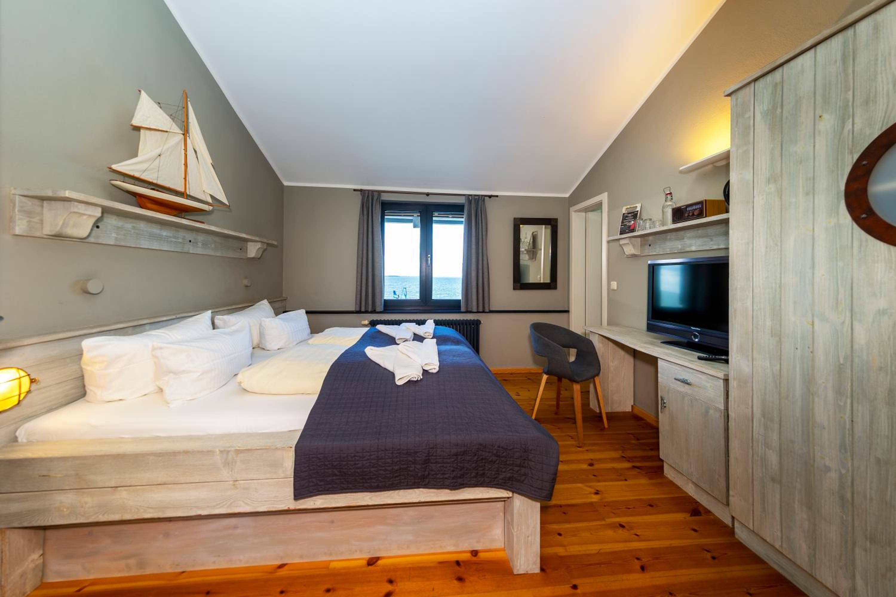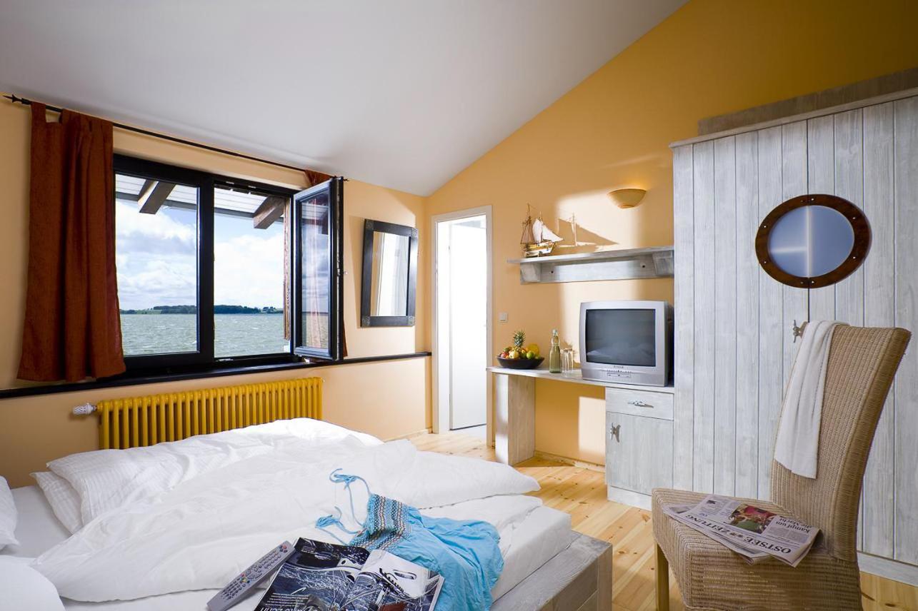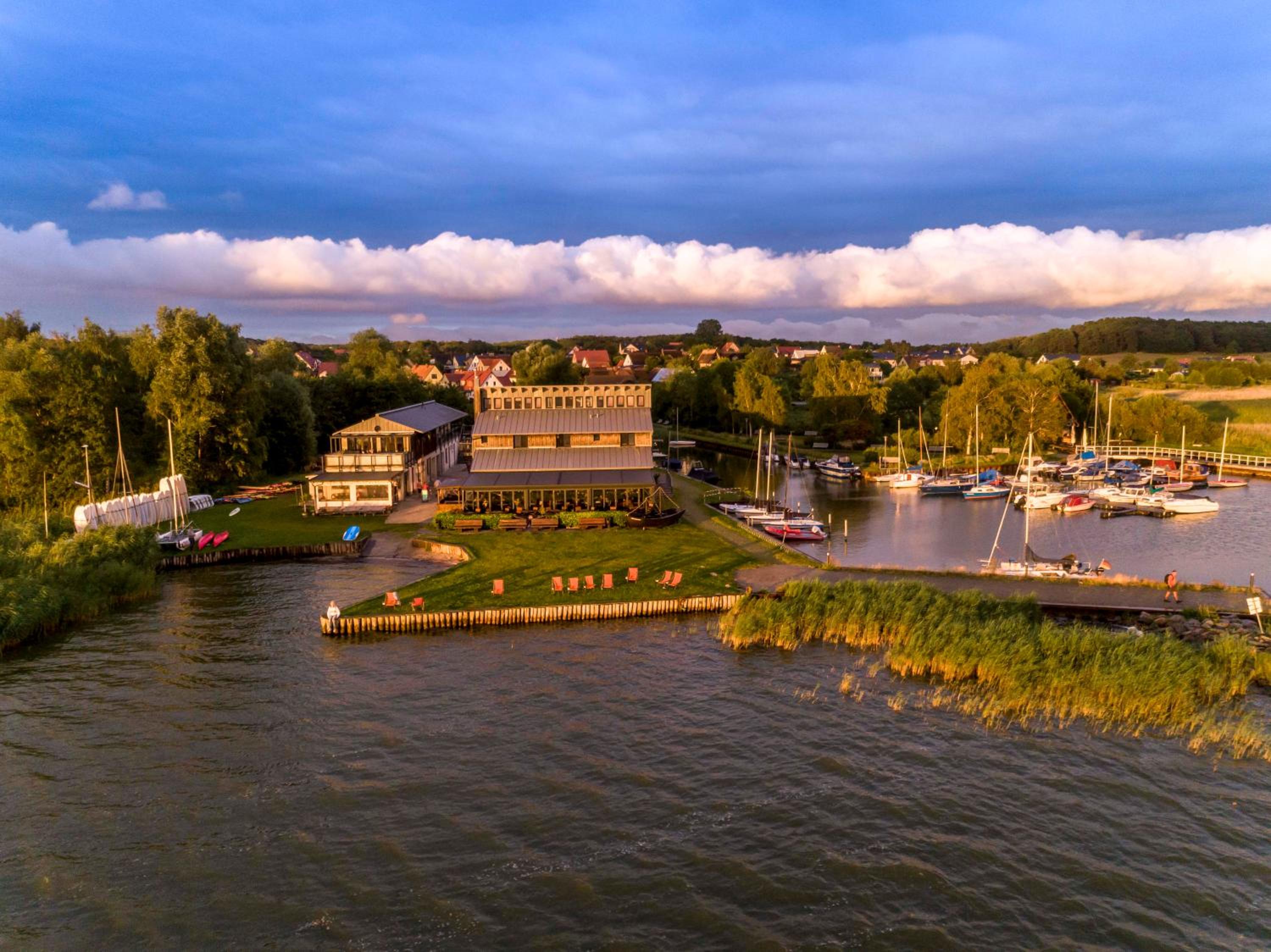 Die Lage ist perfekt. Direkt am Bodden gelegen ist es sehr ruhig und idyllisch. Das Restaurant ist liebevoll eingerichtet und das Personal sehr freundlich. Die Einrichtung der Zimmer ist sehr gemütlich im nordischen Stil.