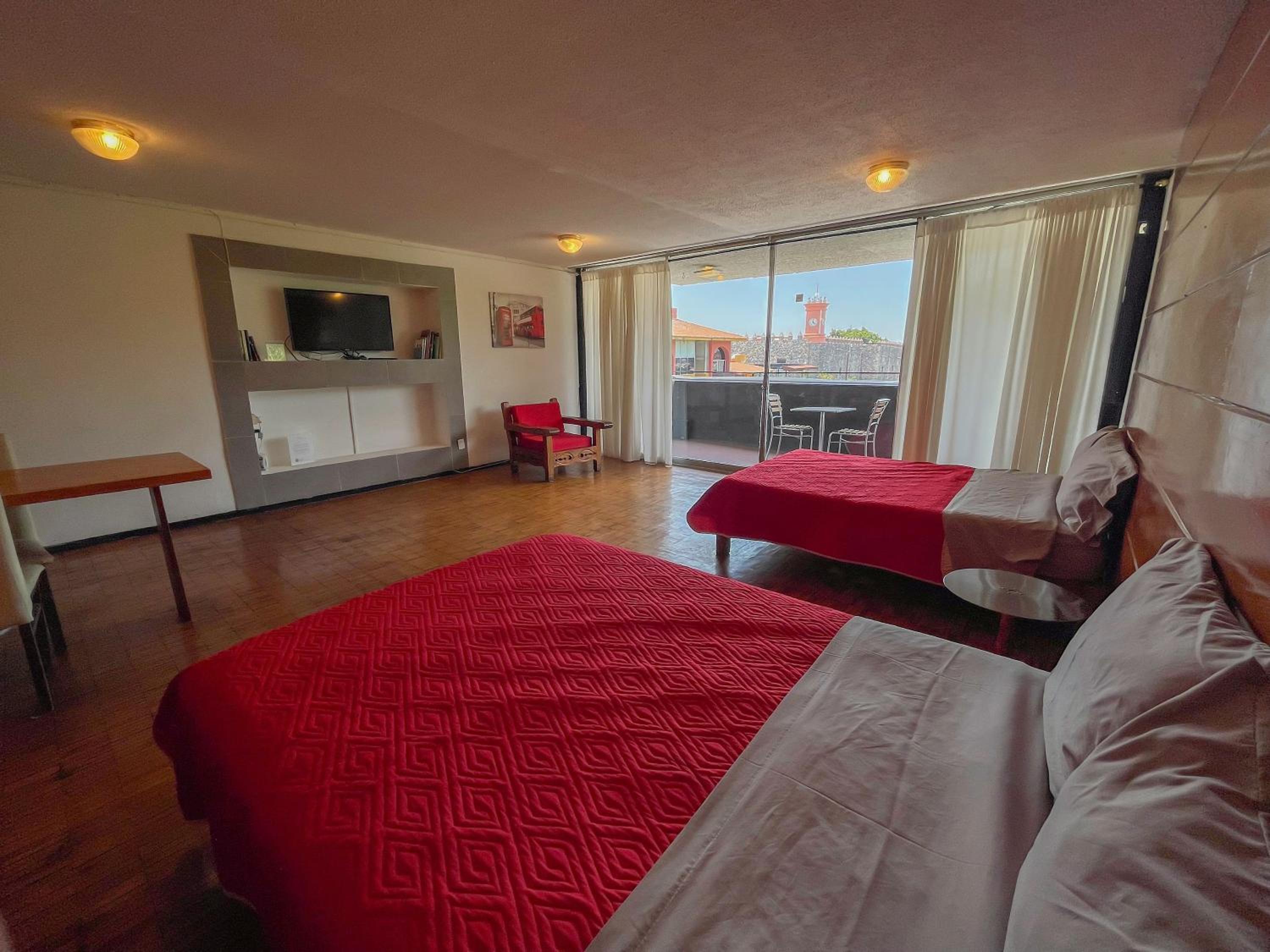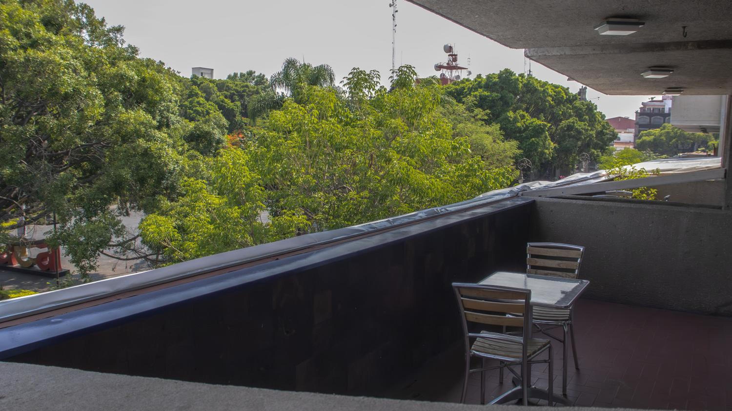 Balcony with a View: Enjoy breathtaking city views from your own private balcony at Suites Las Plazas.