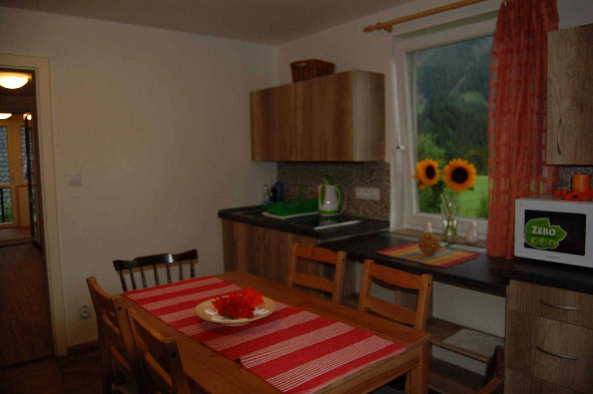 Skvělá výchozí pozice do Totes gebirge. Kuchyňka s koupelničkou na pokoji.