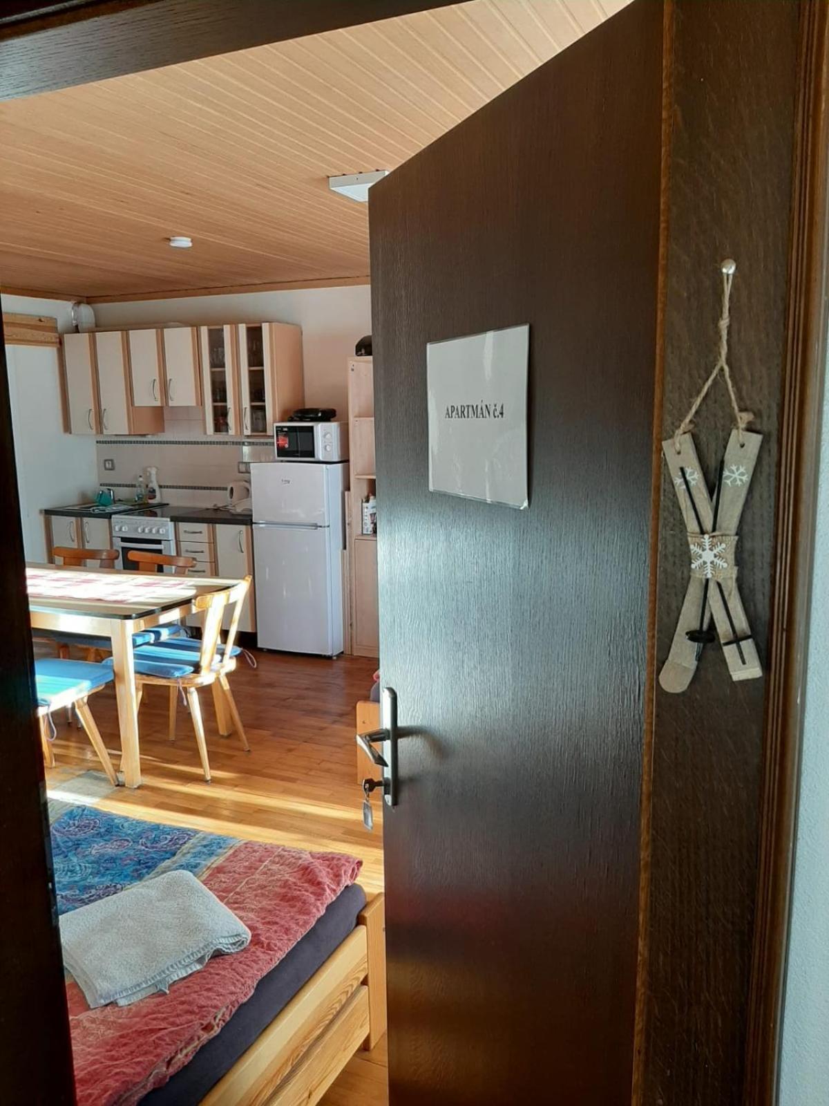 Very friendly owners, very good location in the proximity of slopes (5km). Allowed even large dogs, and there was many oportunities to walk around. Everything needed was in room - towels, kitchen utensils, microvave, stove. ...