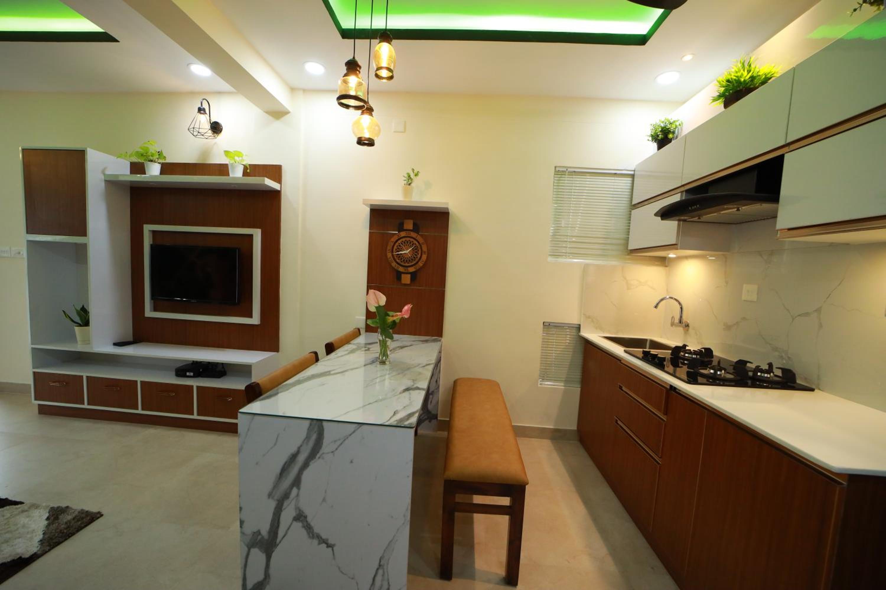 Modern Comforts: Green Royale Living Spaces - Luxury Serviced Apartments offers a stylish retreat with air conditioning, a fully equipped kitchen, and a flat-screen TV in each of its 3 bedrooms.
