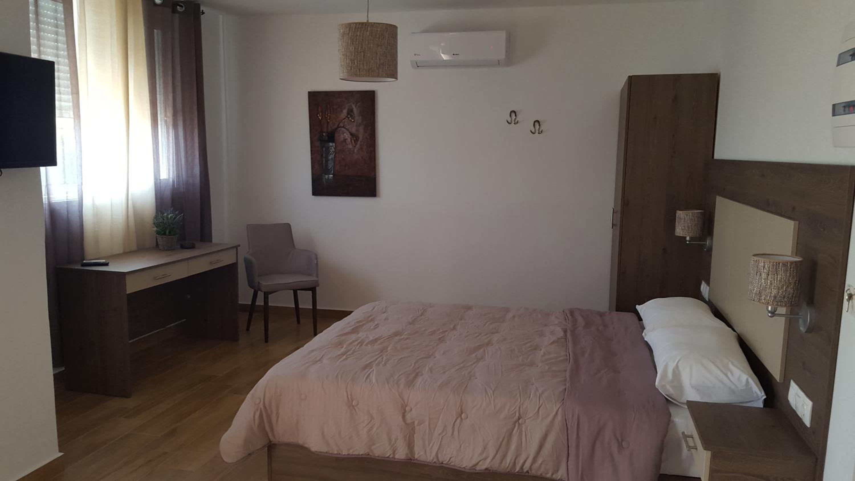 Hôtel très bien situé, accueil très souriant de la dame qui nous a personnellement amenés à notre chambre et nous donne des explications pour nous rendre à la ville et aux restaurants. Le studio était bien équipé et disposait d’un grand balcon avec table, chaises et transats avec vue mer.