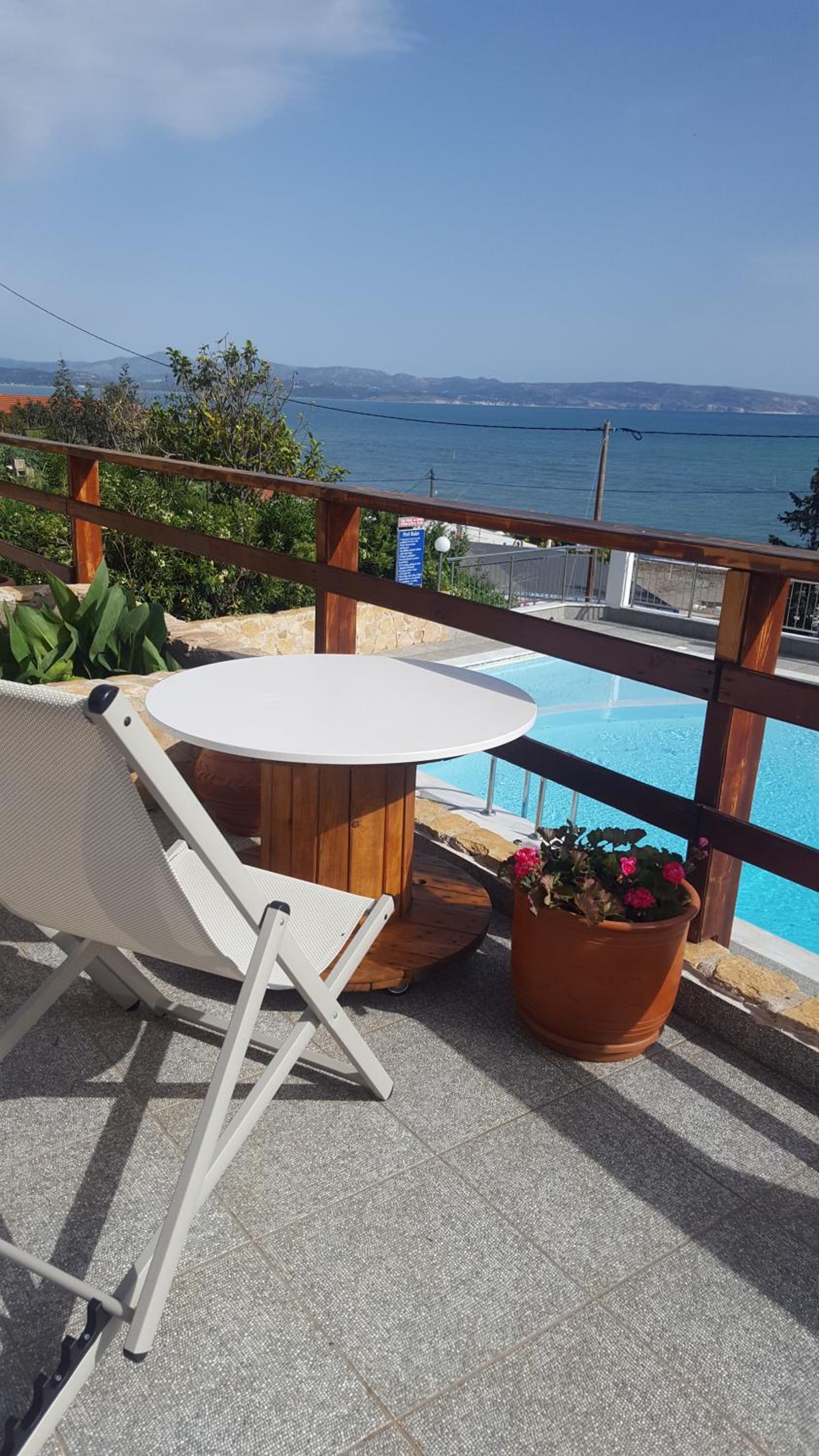 Отличное расположение, возле отеля таверны с вкусной едой, магазин, пляж с песчаным заходом в море. В отеле можно позавтракать, в течении дня перекусить, заказать напитки, мясо на гриле. Проживание в отеле даёт только положительные эмоции. Отношения хозяев отеля и персонала к своим гостям выше всякой похвалы. Горничная Людмила, помимо ежедневной уборки и смены постельного белья способствовала преодолению языкового барьера, помогала решать возникающие проблемы проживания так как английский у нас никакой а греческий ещё хуже, спасибо ей.
