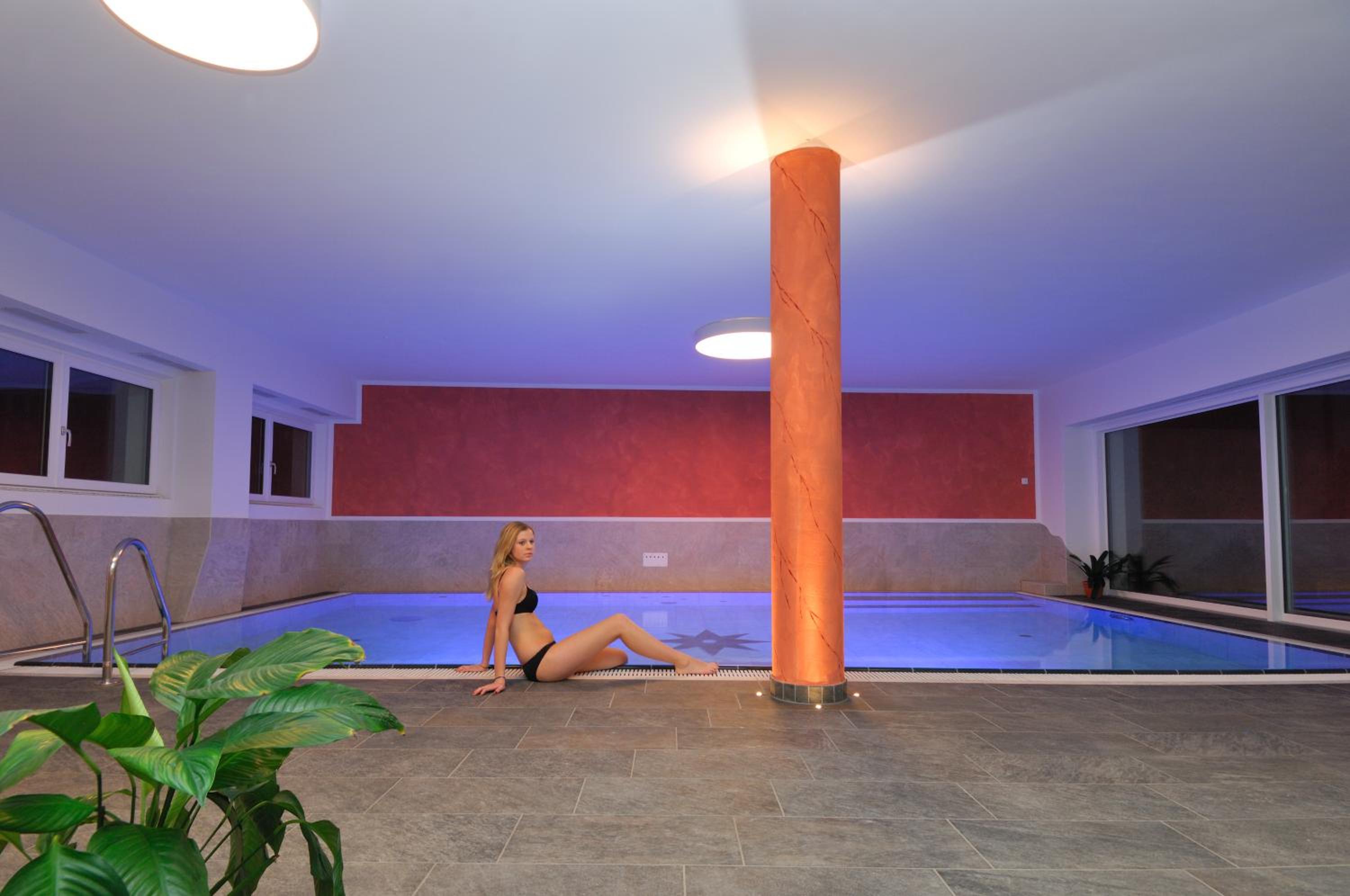 Residence Viktoria offers a luxurious spa experience with hot tub, hammam, and sauna. Guests can unwind in the pool with a stunning view or enjoy the indoor pool.