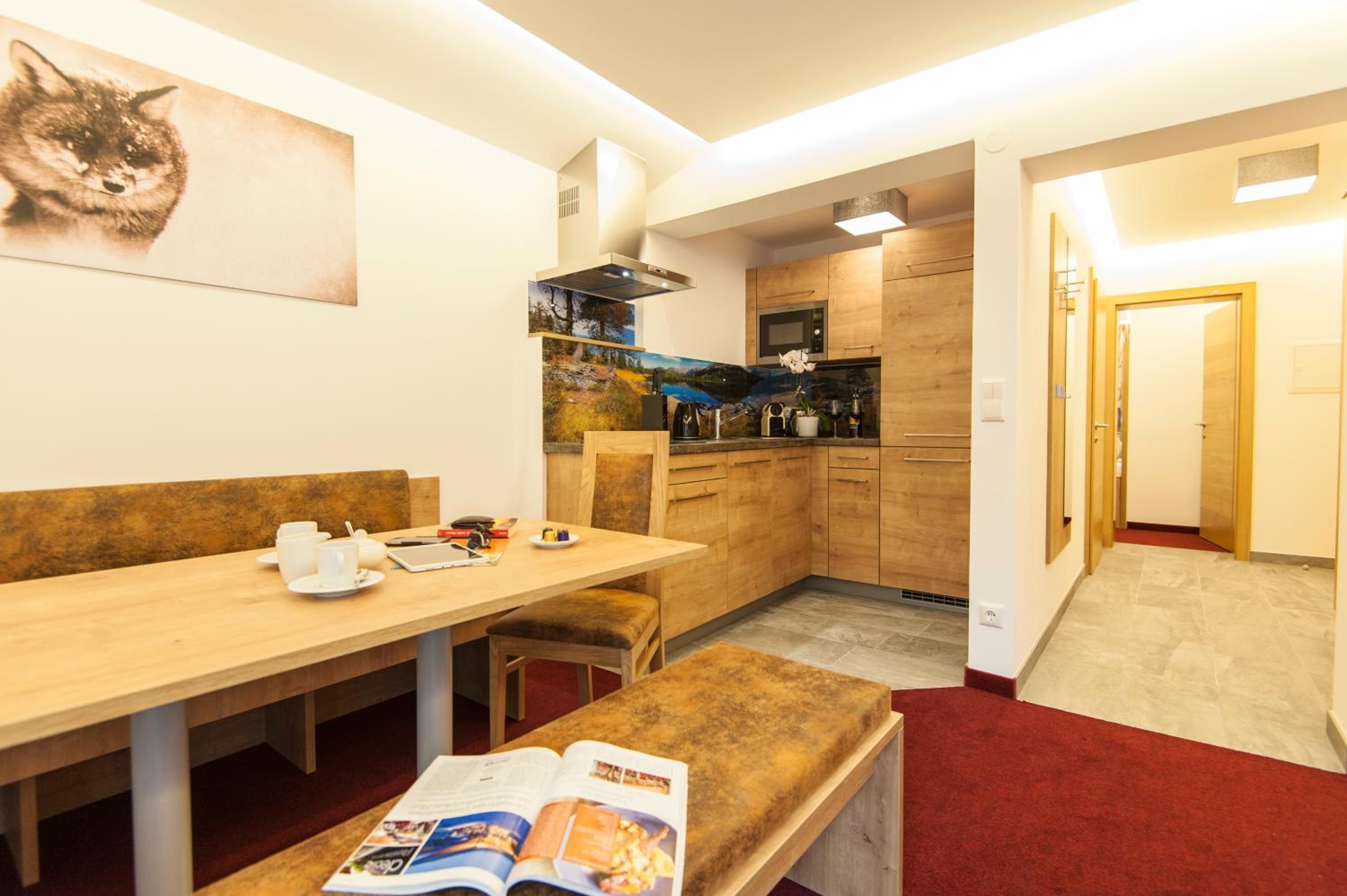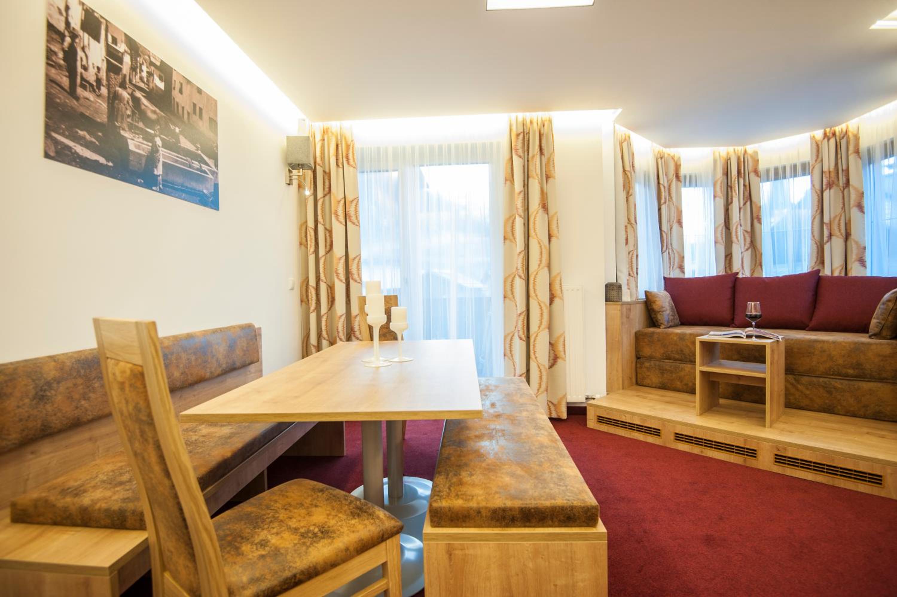 Located just steps from the slopes, Landhaus & Appartementhaus Haussteiner offers stylish apartments in the heart of Dorfgastein. The modern wooden furniture and spacious layout provide a comfortable stay for guests, with separate living and sleeping areas in each apartment.