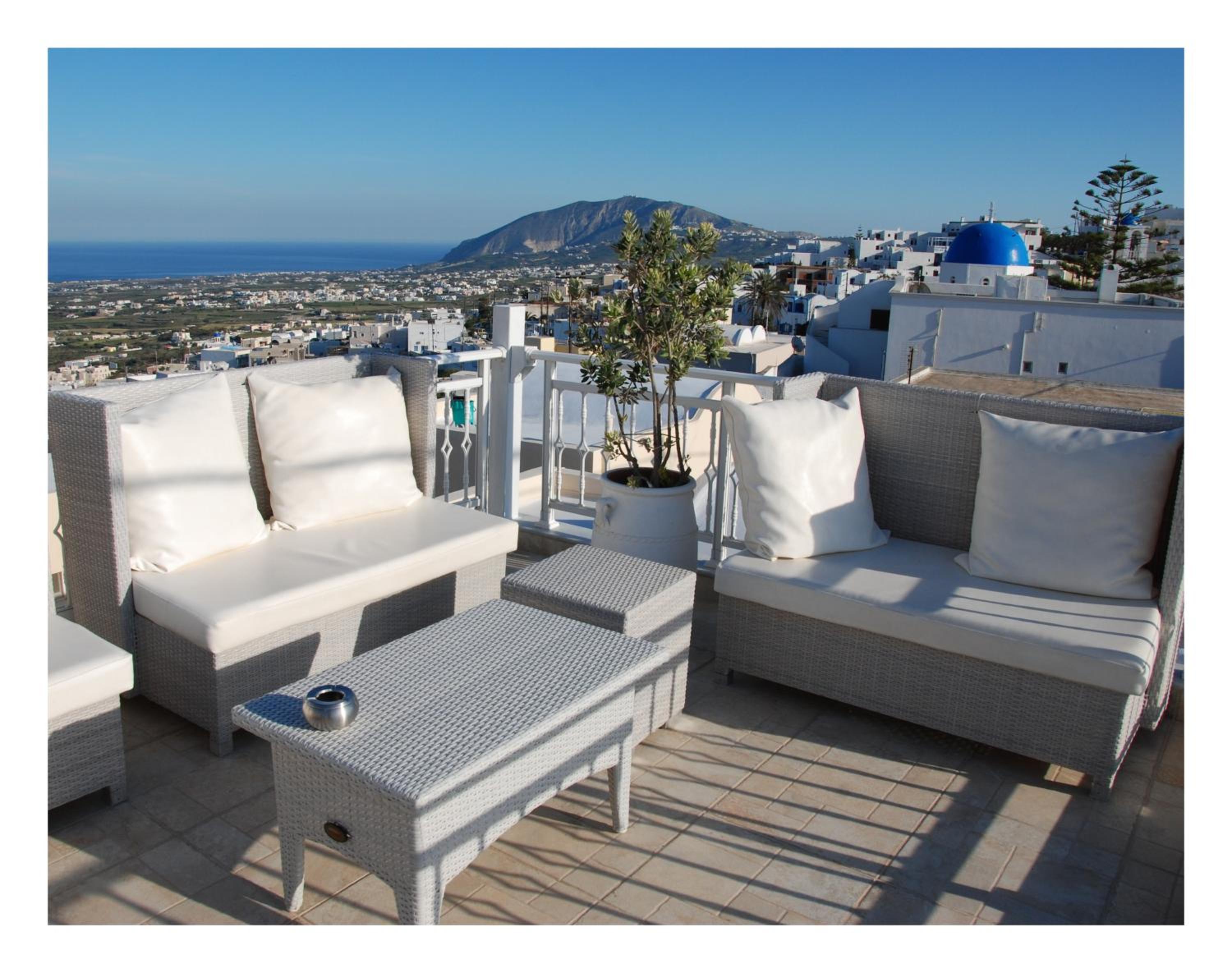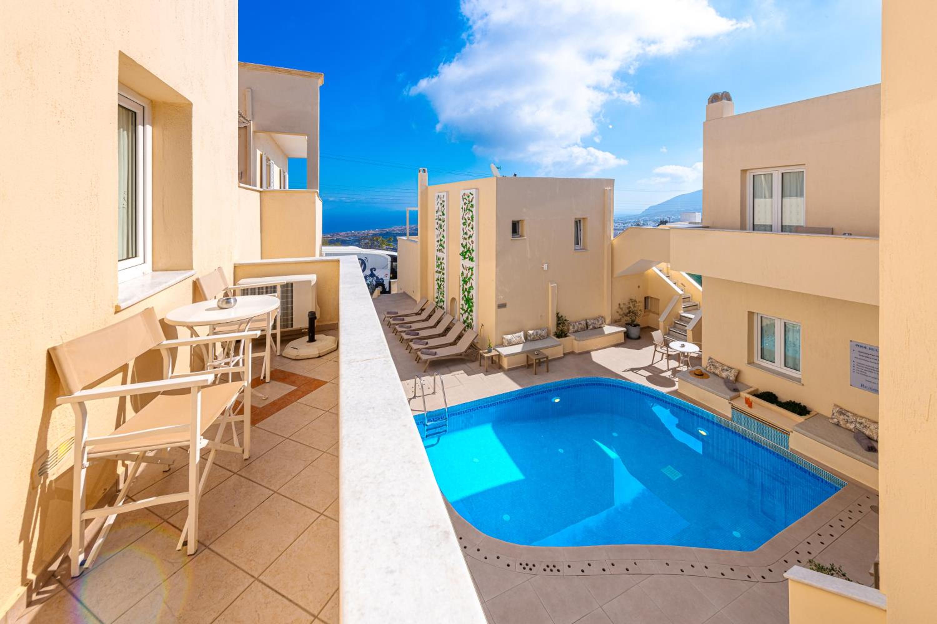 Lovely room with terrace overlooking the sea and nice little pool, close to beautiful restaurants and bars overlooking the caldera or grab a beer from the market and sit on the hotel terrace looking over the caldera. Lovely helpful staff