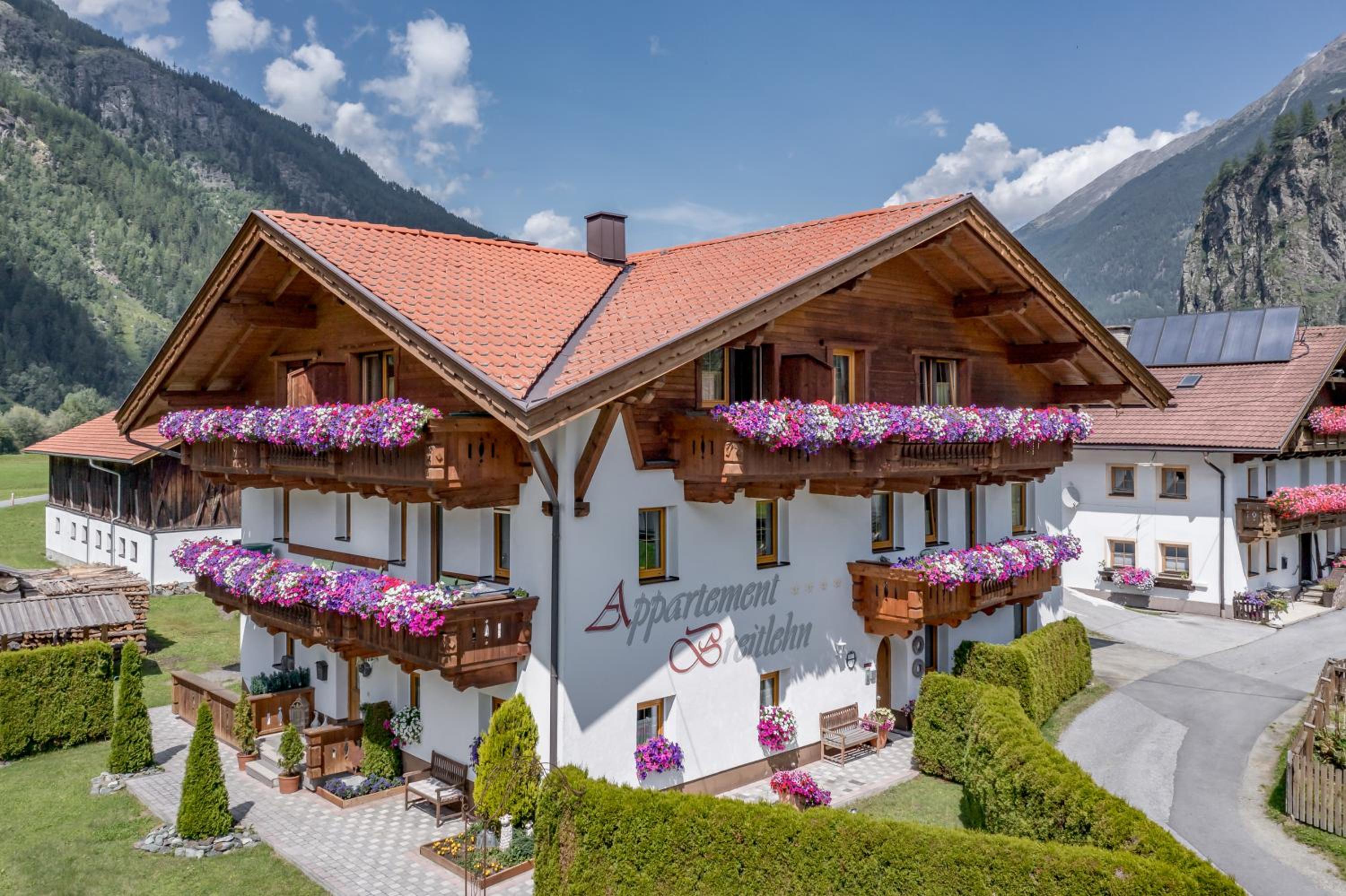 The Appartement Breitlehn offers spacious family apartments with full kitchens and private balconies, all overlooking the picturesque Ötztal Valley and Alps. The cozy seating areas with TV, well-equipped kitchens, and free WiFi ensure a comfortable stay.