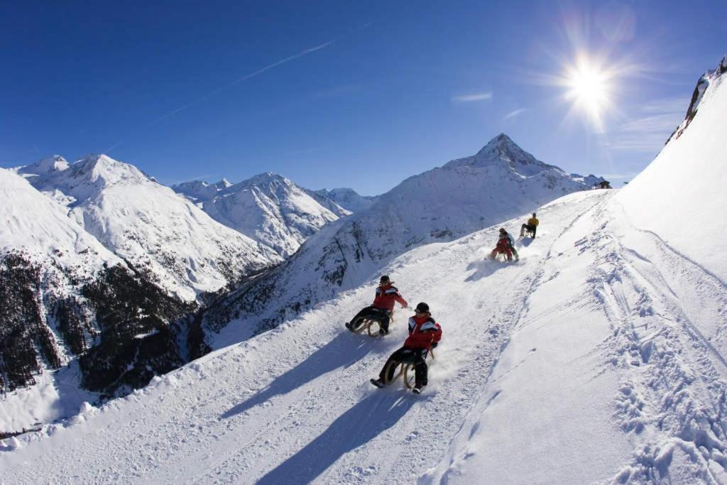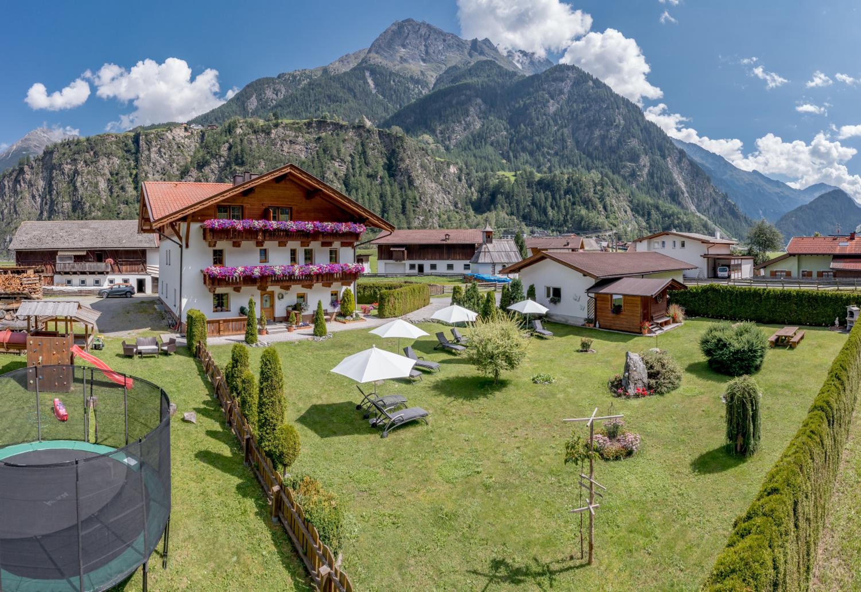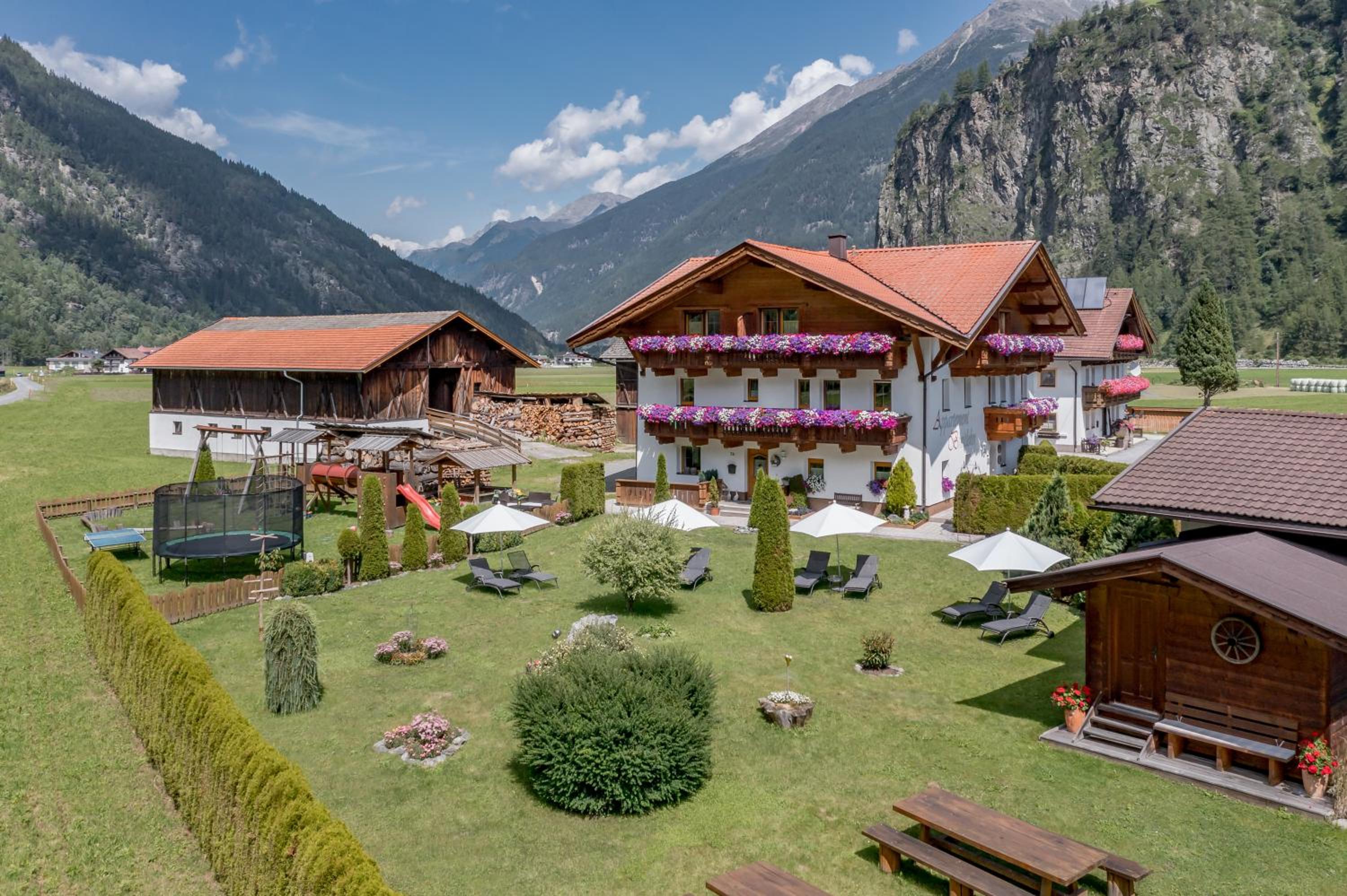 Guests can unwind on the sun terrace, taking in the serene landscape, while kids have a blast at the playground with a trampoline. The proximity to the Sölden ski resort and Aqua Dome makes it an ideal choice for both winter sports enthusiasts and spa lovers.