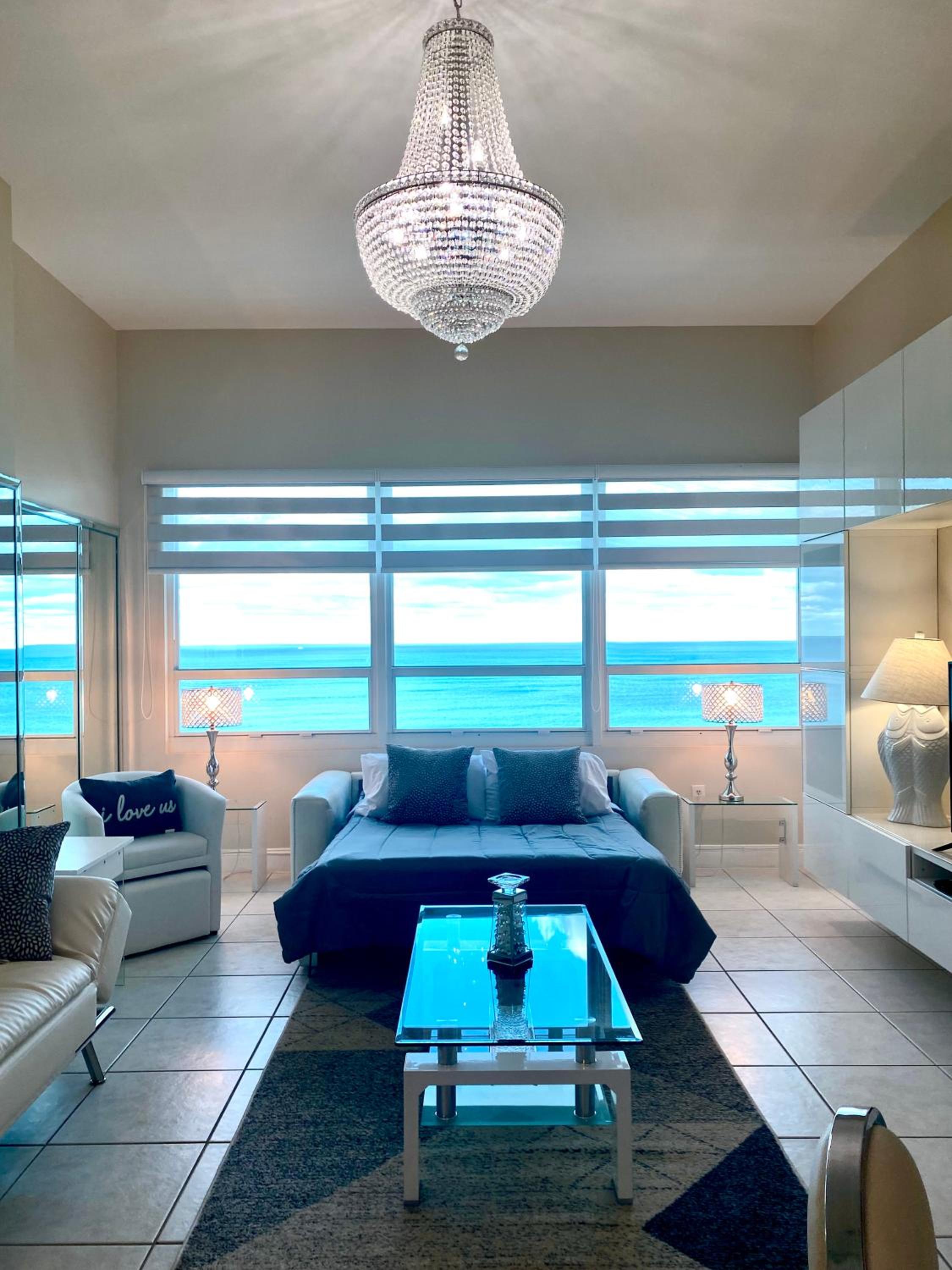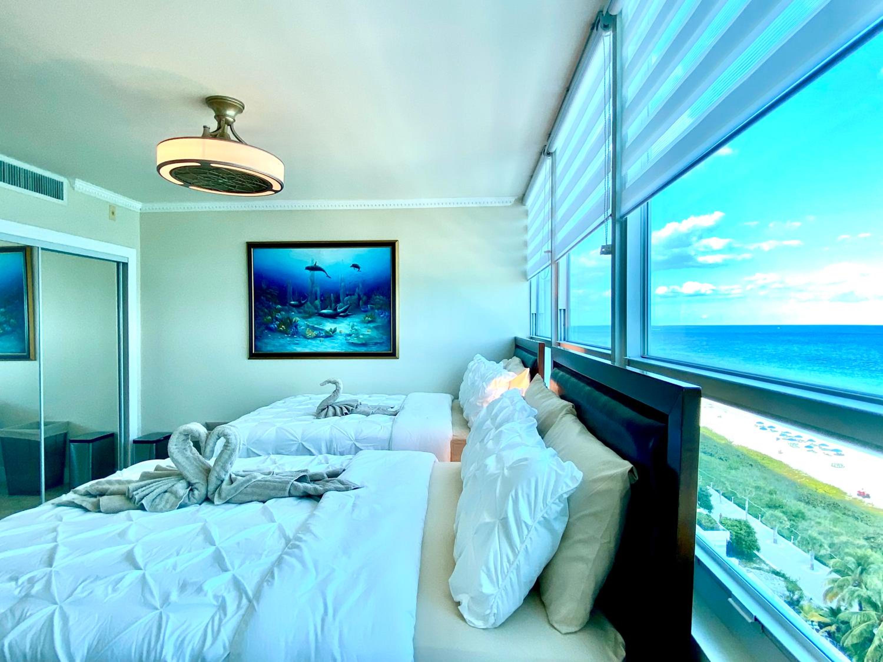 Experience the ultimate beachfront getaway at Castle Beach Resort Condo Penthouse in Miami Beach. Indulge in newly remodeled, modern 1BR condos with stunning sea views. Each unit features upscale amenities like a fully equipped kitchen, plush bedding, and a private bathroom with complimentary toiletries.