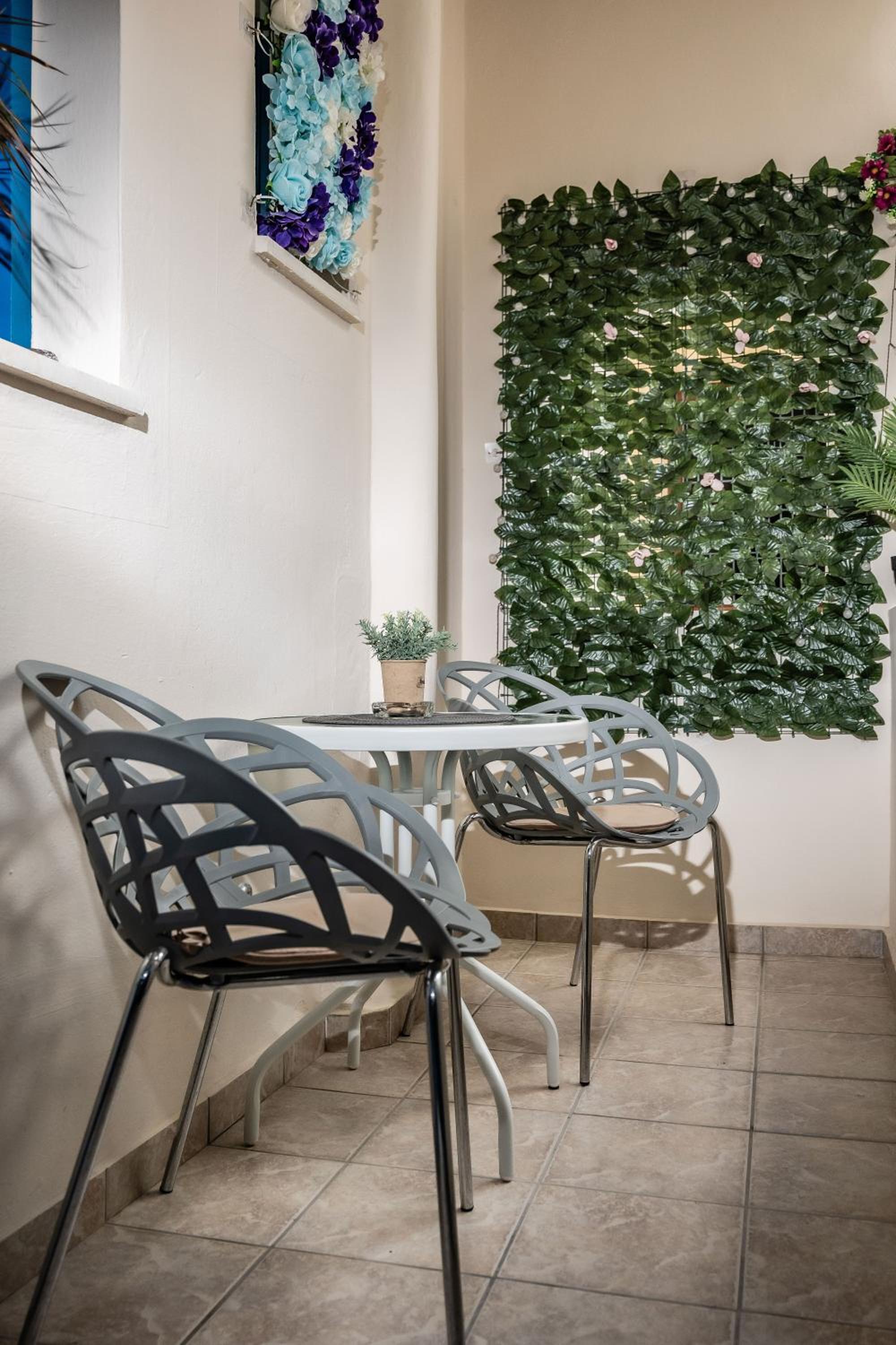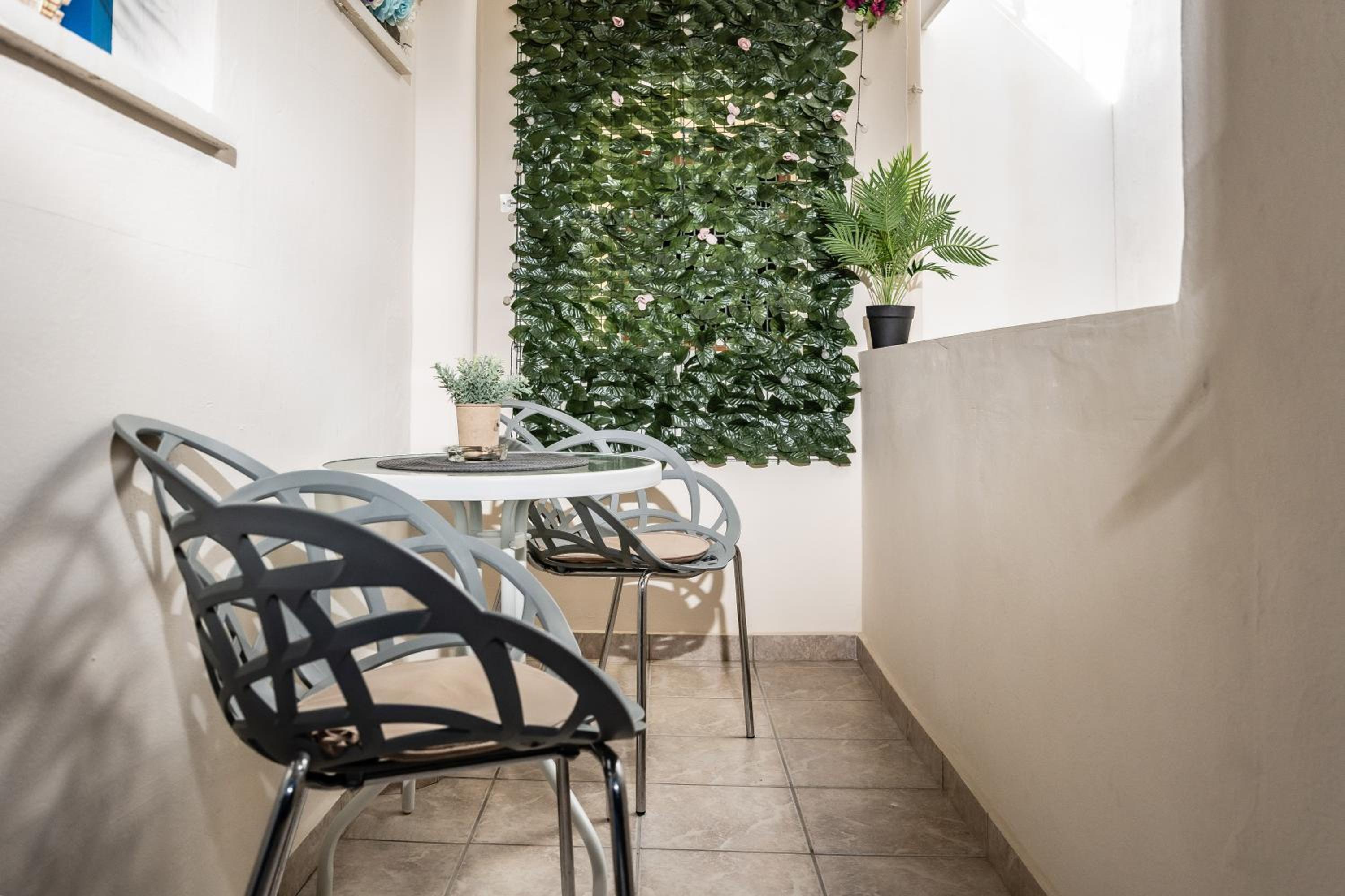Wonderful penthouse apartment with private wrap-around outdoor terrace. Numerous seating options inside and out. Large room with good sized shower room and well equipped kitchenette, including wine glasses. Friendly and helpful staff.