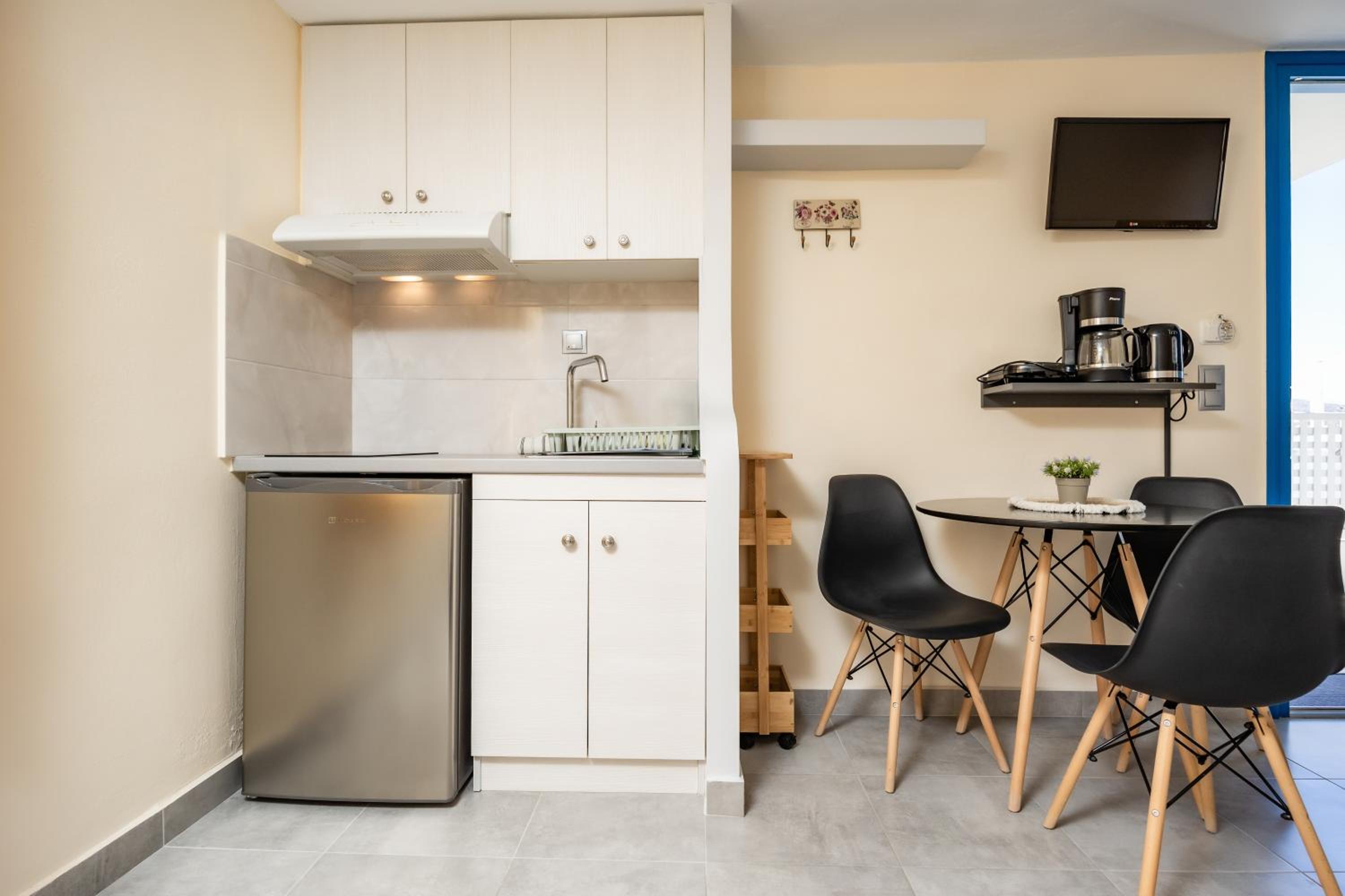 Pulizia, posizione. Comodità dell'alloggio. Tutto eccellente. Vicinissimo ad Agios Georgios e al corso principale.