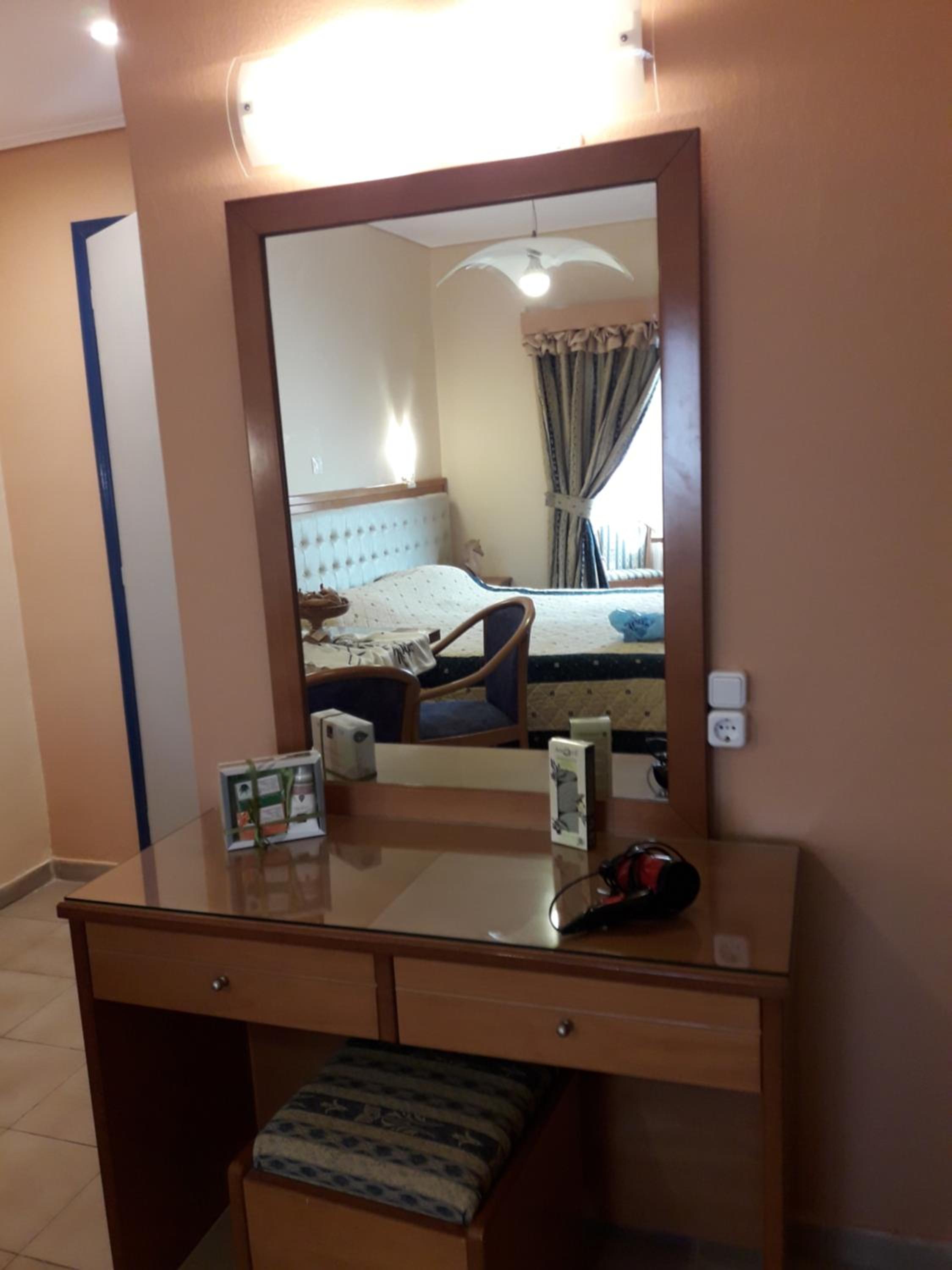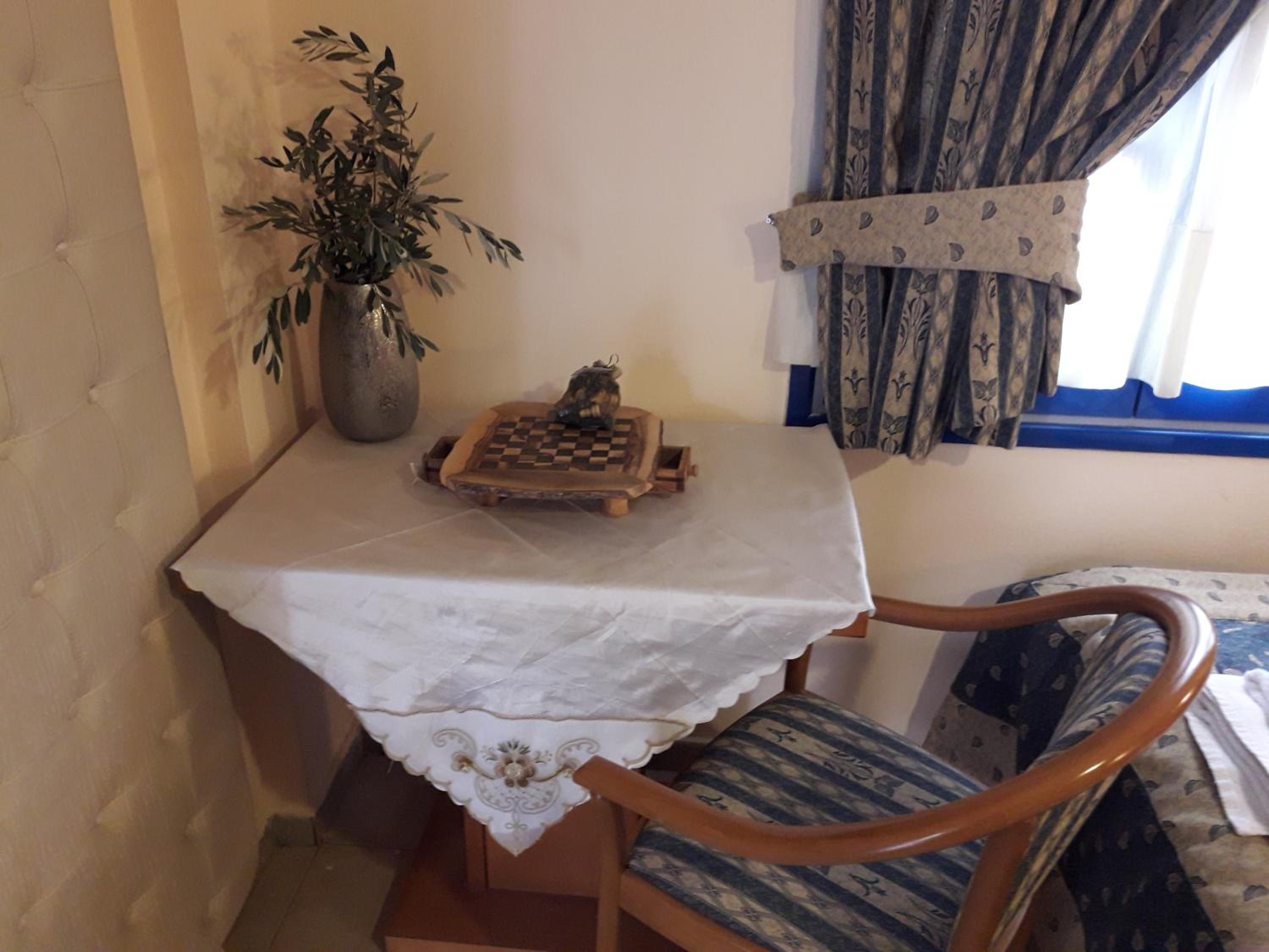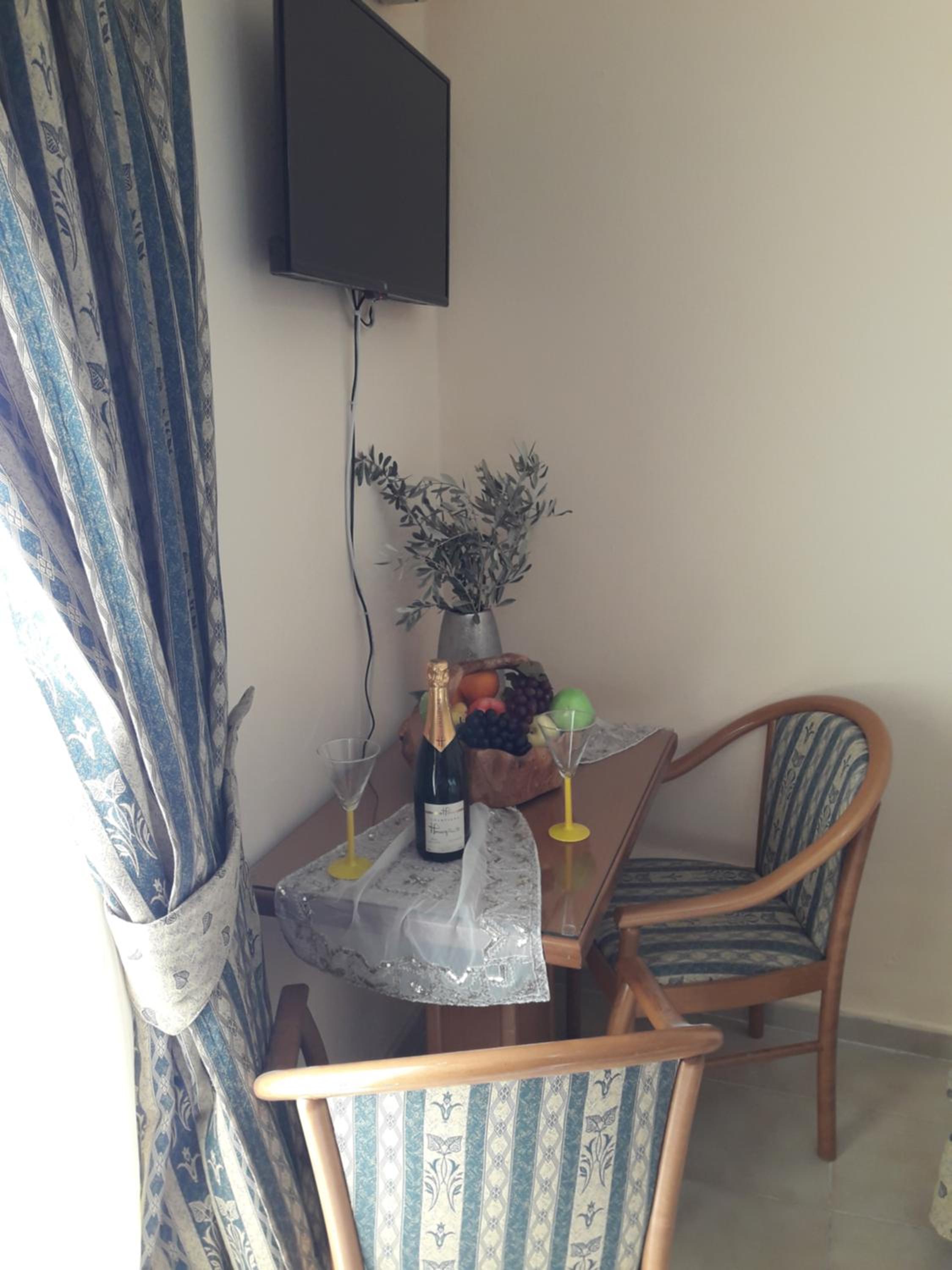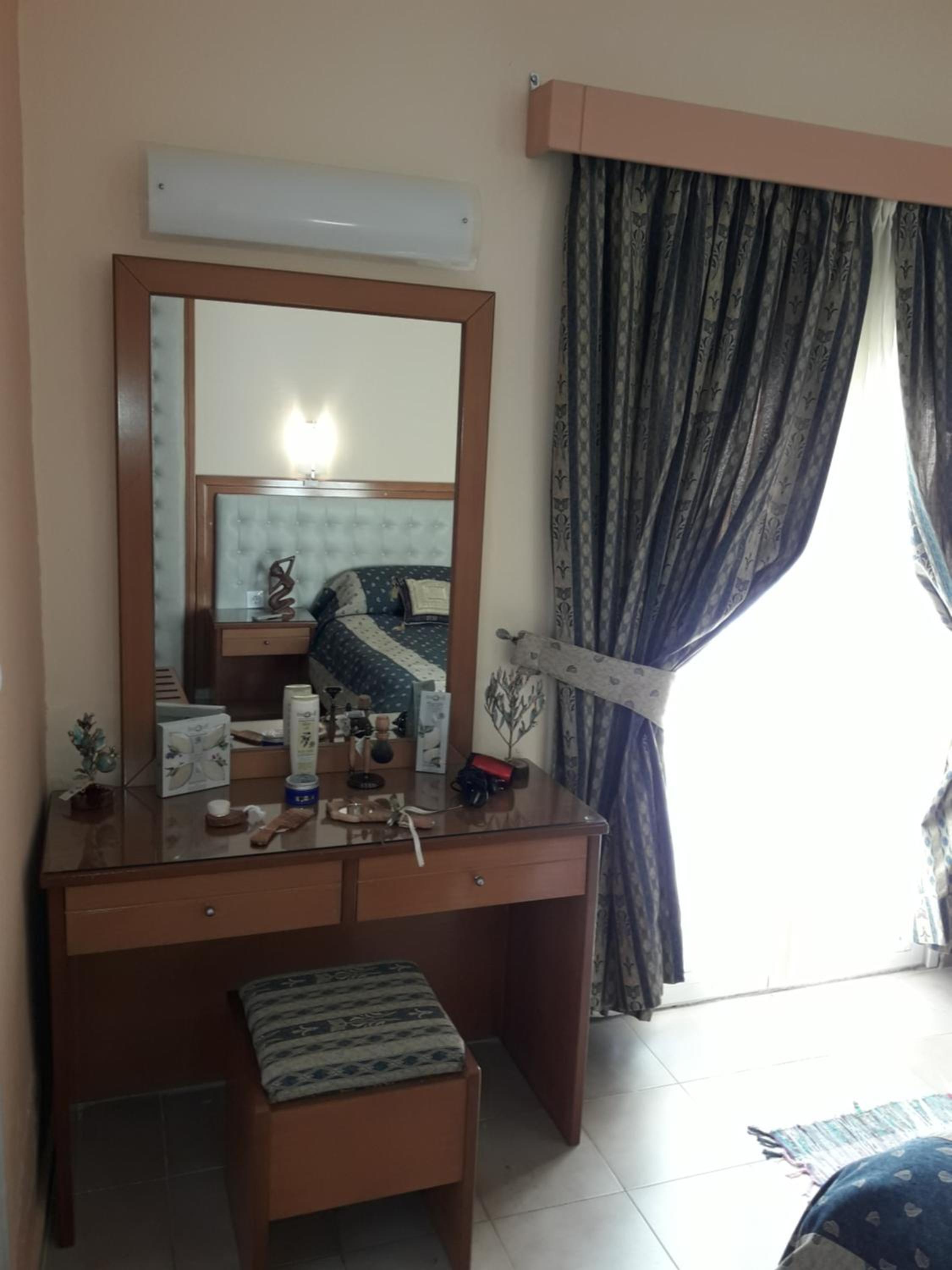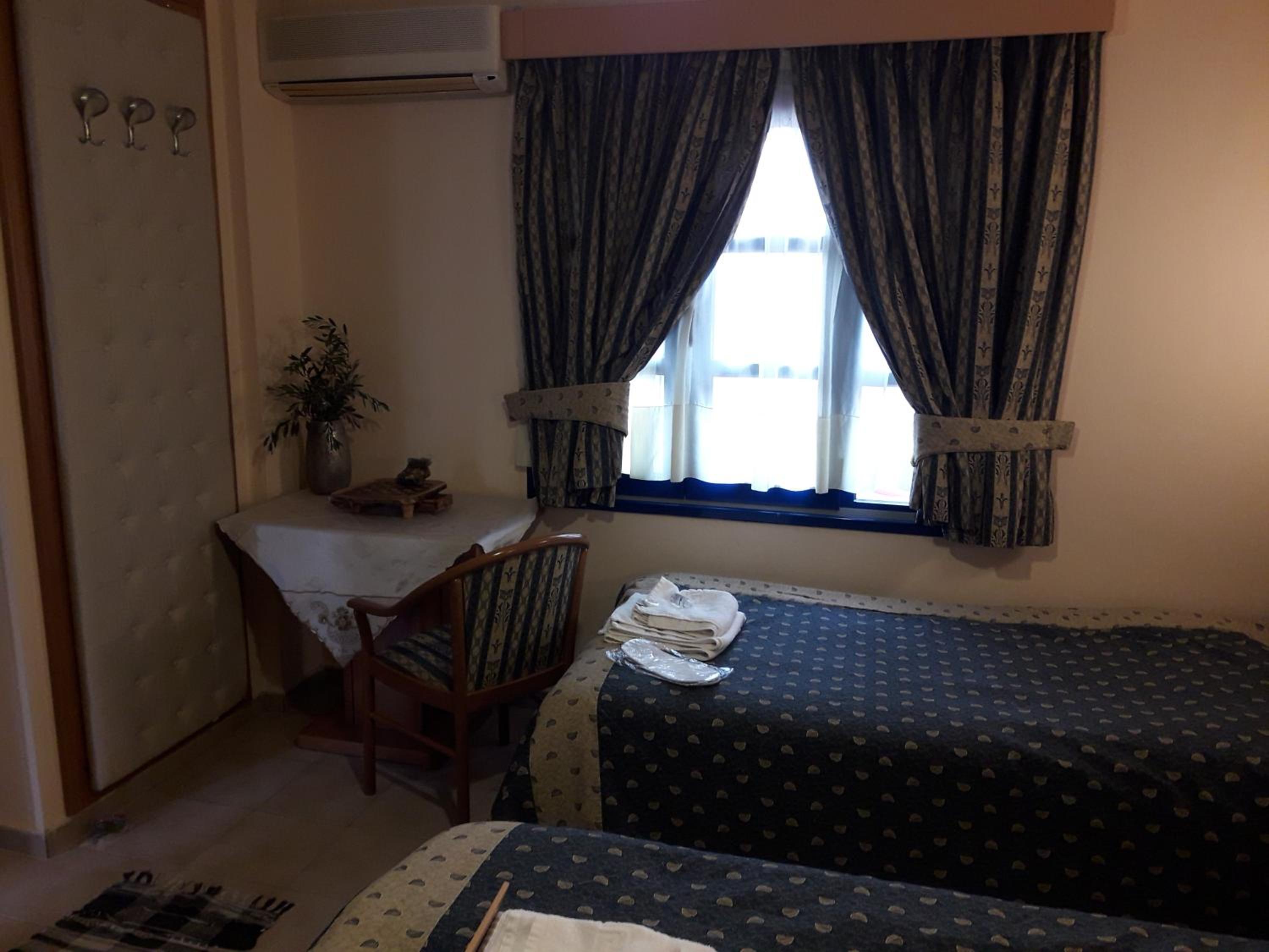 Room was nice. Bathroom was okay. They have curtains for the shower. Shampoo and soap, 1 bath towel, 1 hand towel were provided by the hotel. Bed was comfortable. Air conditioner was working. Room has the balcony with chairs and table. The hotel is near the restaurants where you can spend lovely times. And the hotel also nears some of the nice beaches which you can reach by walk. I mean I walked 40 minutes to go to the nearest beach i.e. Paralia Pamfila. It could be long distance for most of the people. After Paralia Pamfila and then I walked to the Paralia Viglia which is hidden, lovely beach.