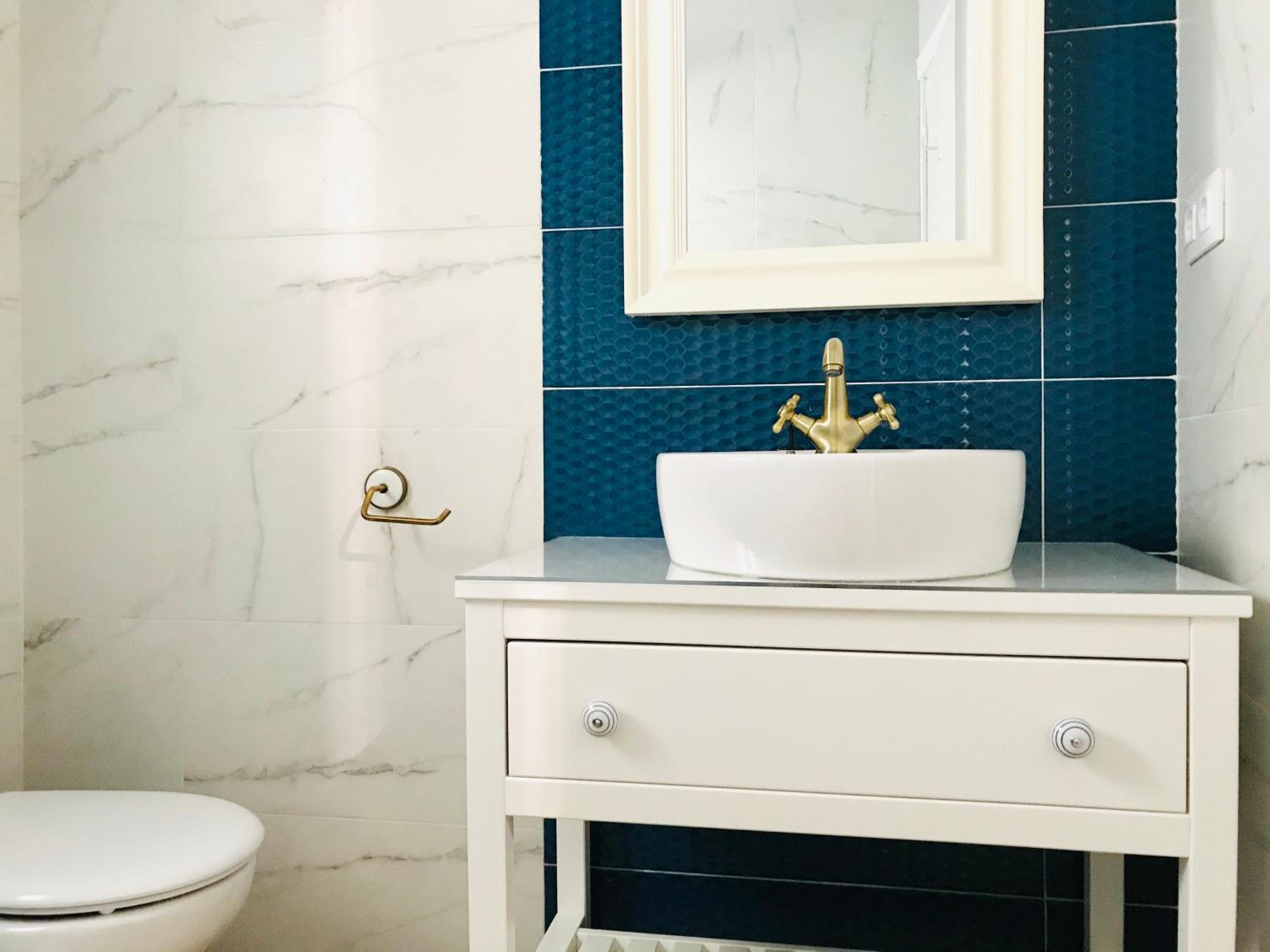 El baño tenía gel de manos y secador.