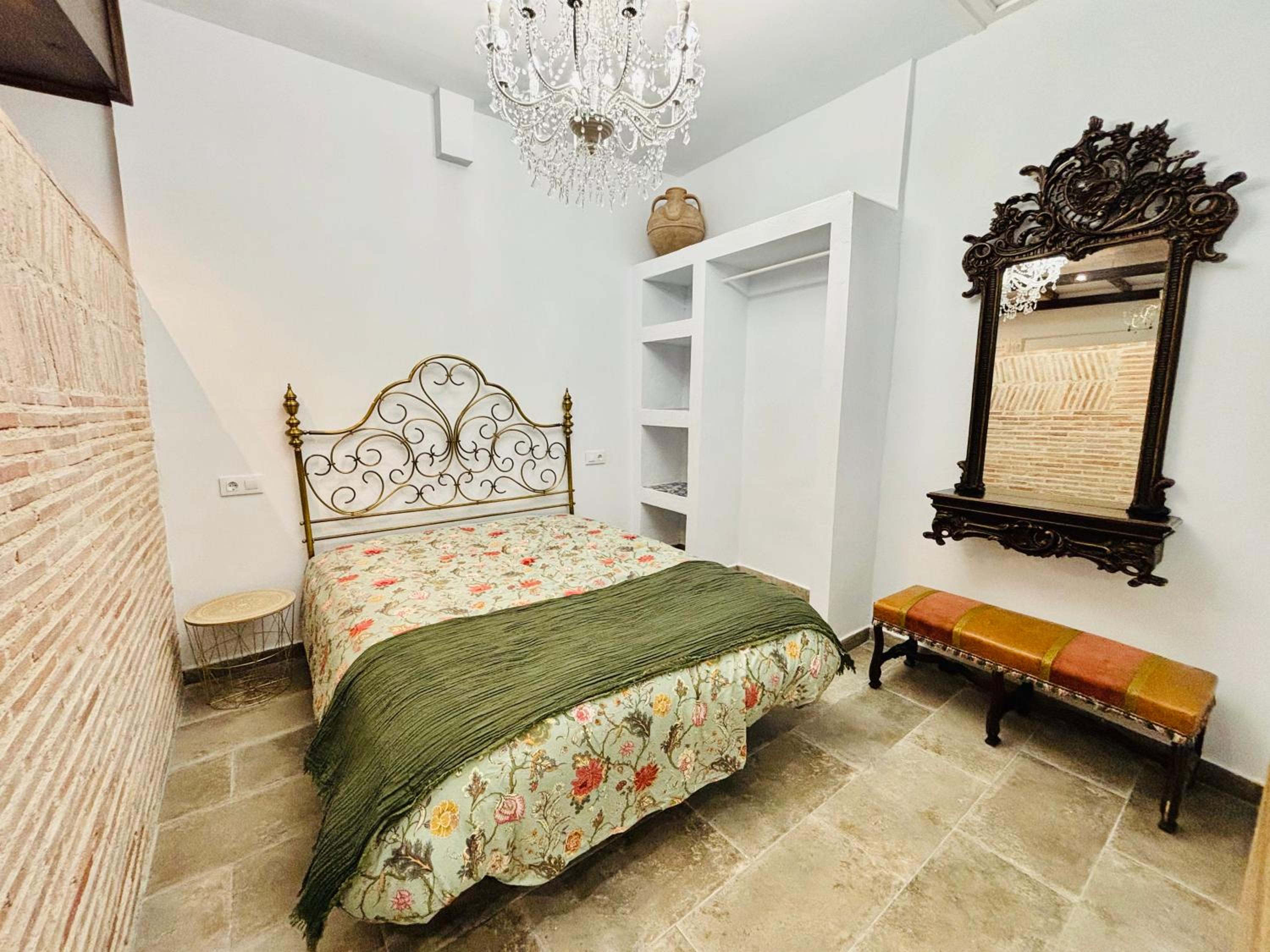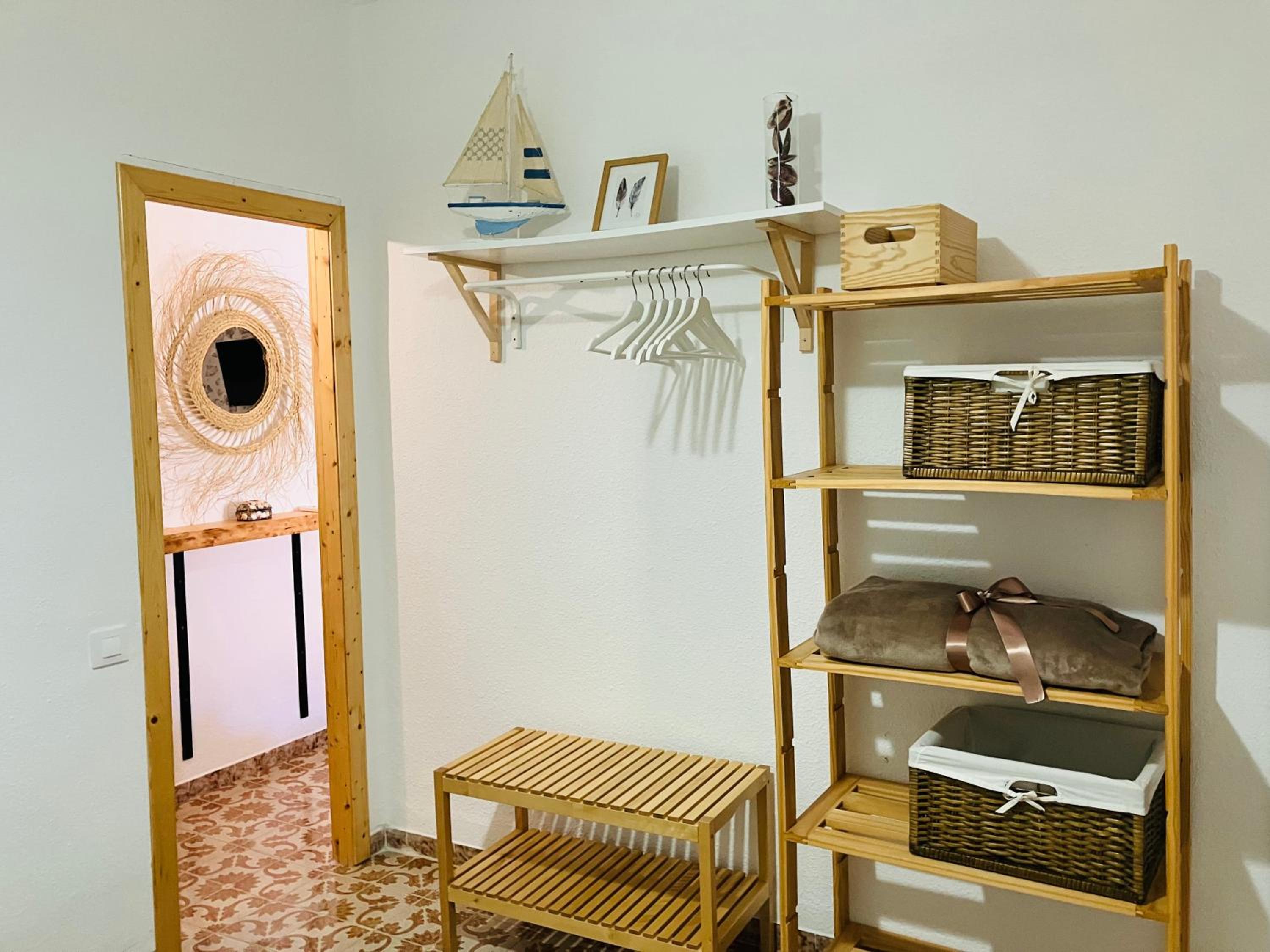 Tiene 2 habitaciones con una cama de matrimonio, un baño, salón-cocina y un mini cuarto con la escoba y el recogedor.