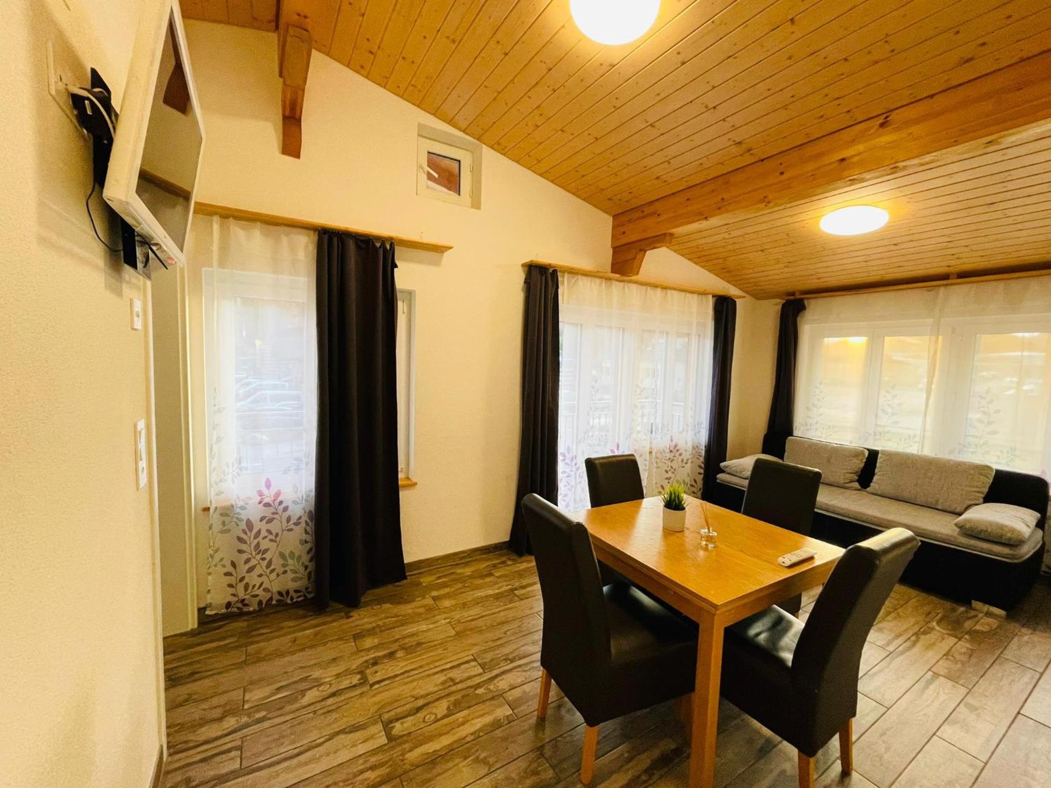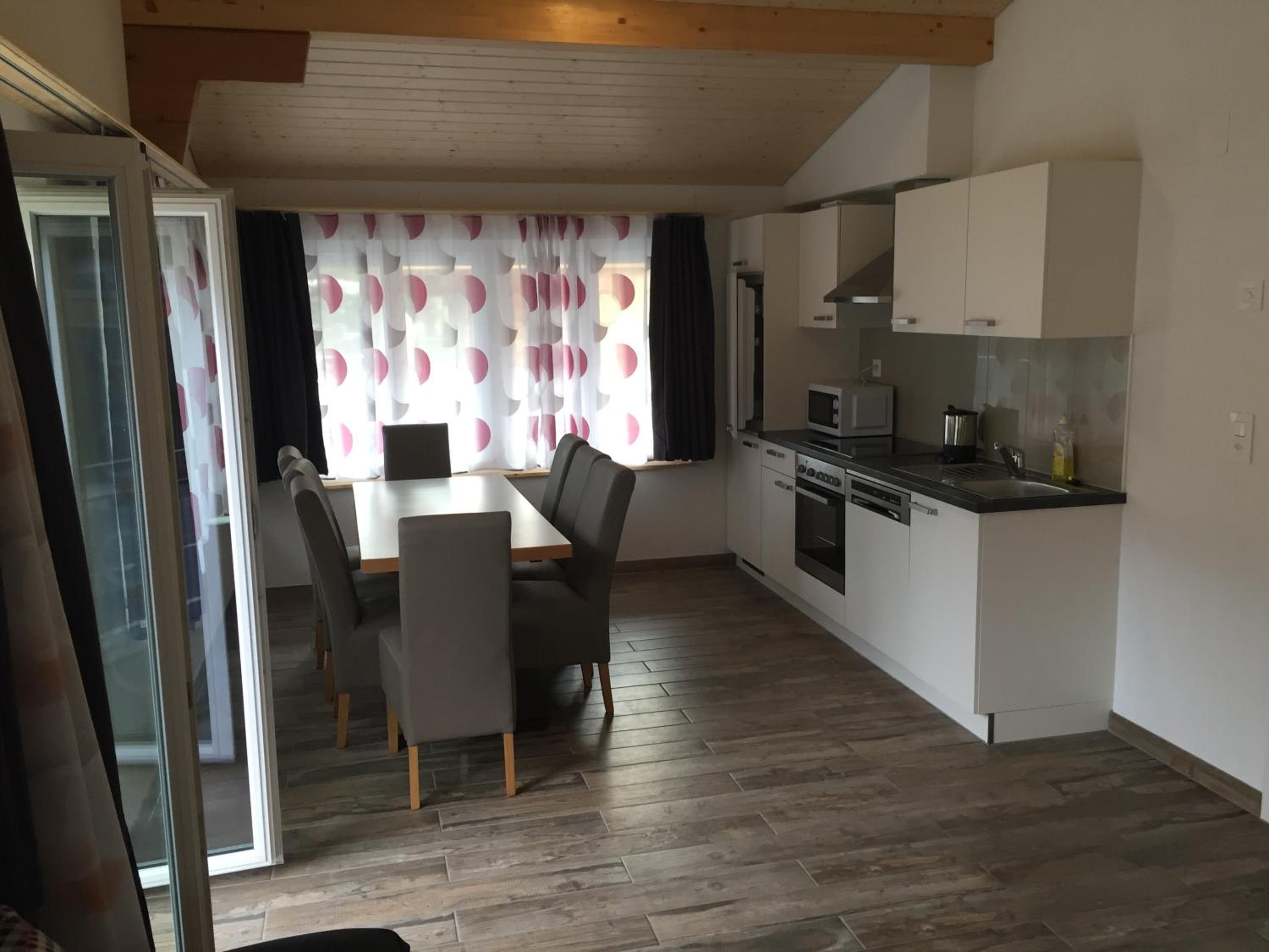 Great location, fully equipped and clean kitchen. The chalet was spotless. We had to book another night directly with the owner it was absolutely great! Spacious room that could fit 6 people and a dog.