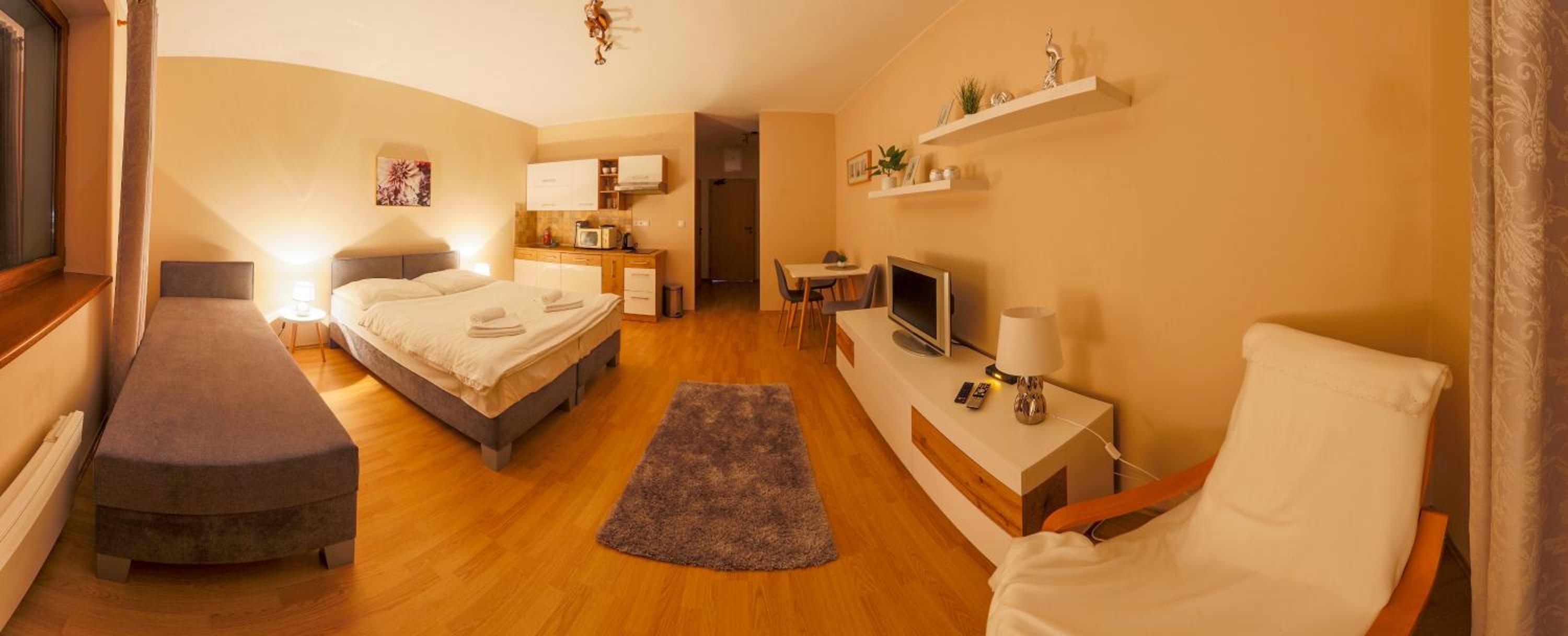 Vynikající lokalita apartmanoveho domu. Dobrý poměr kvality a ceny. Velmi milá paní recepční operativně vyřešila problém s nedostatkem parkovacích míst.
