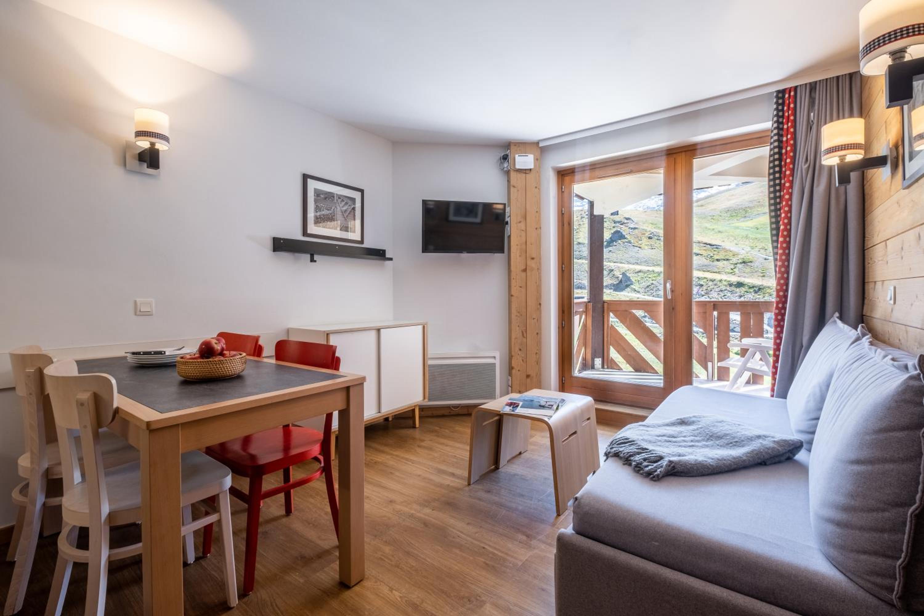Modern Chalet Apartments: Experience the perfect blend of traditional chalet charm and contemporary design in our apartments, each featuring a private balcony and a separate living area with an LCD TV.