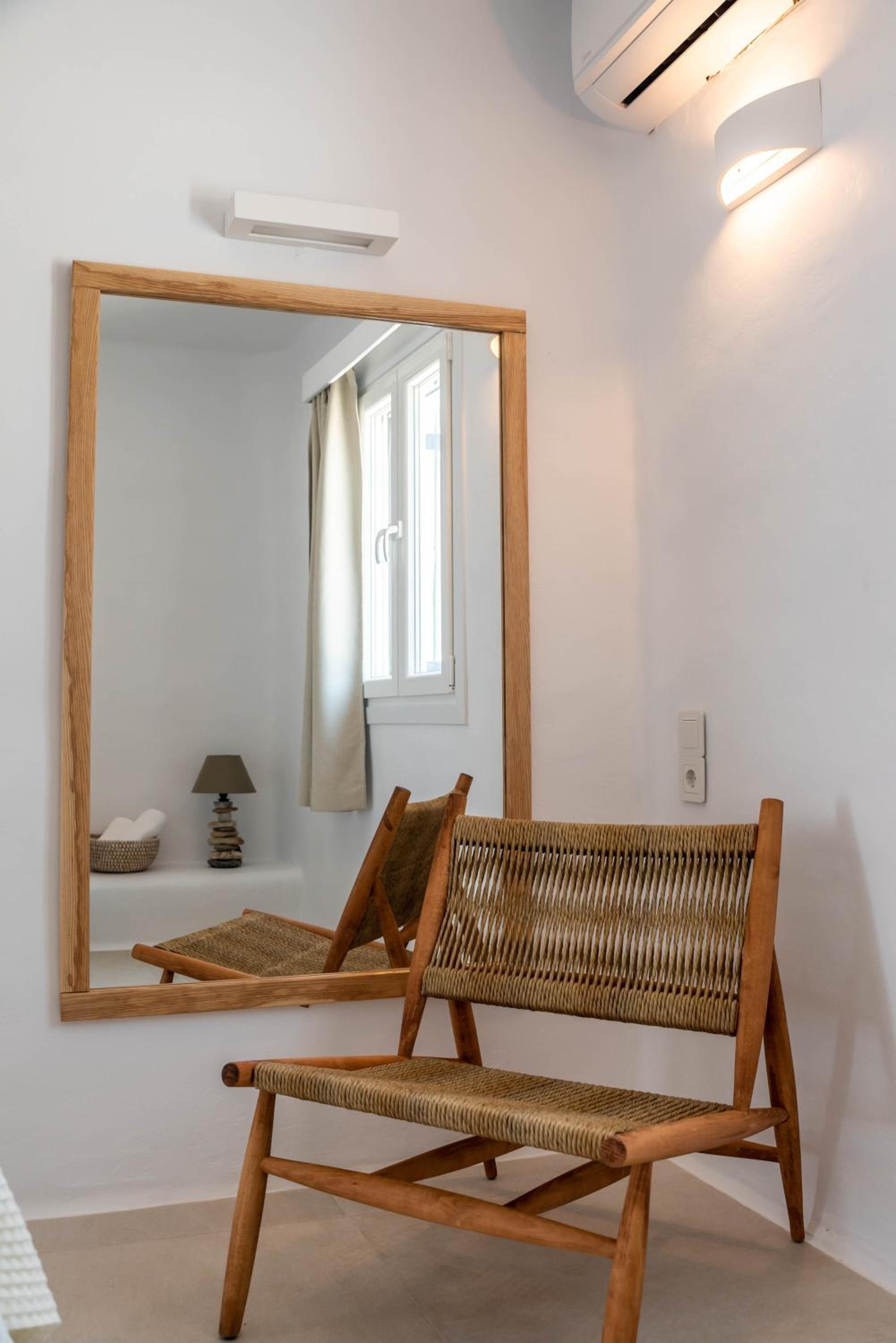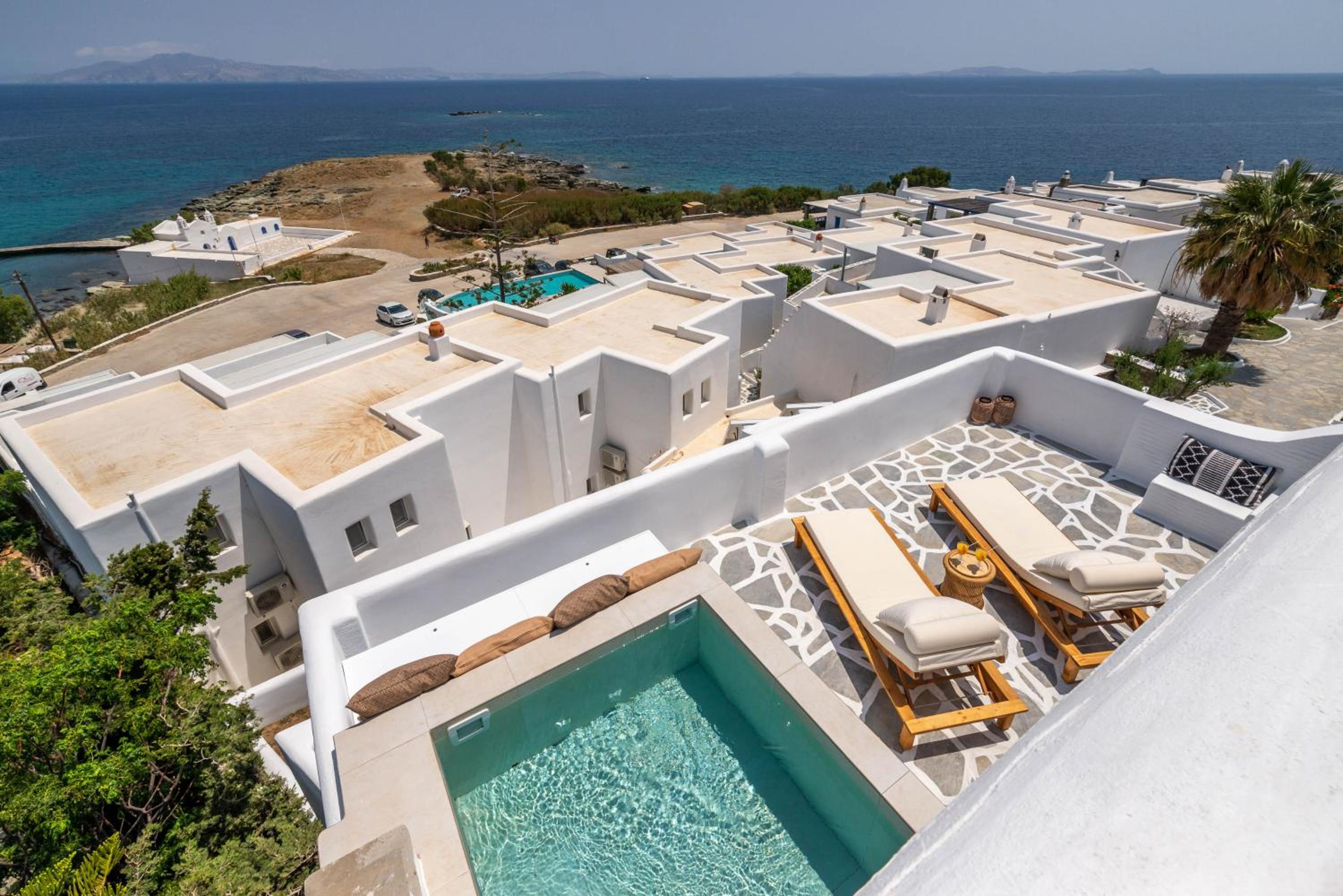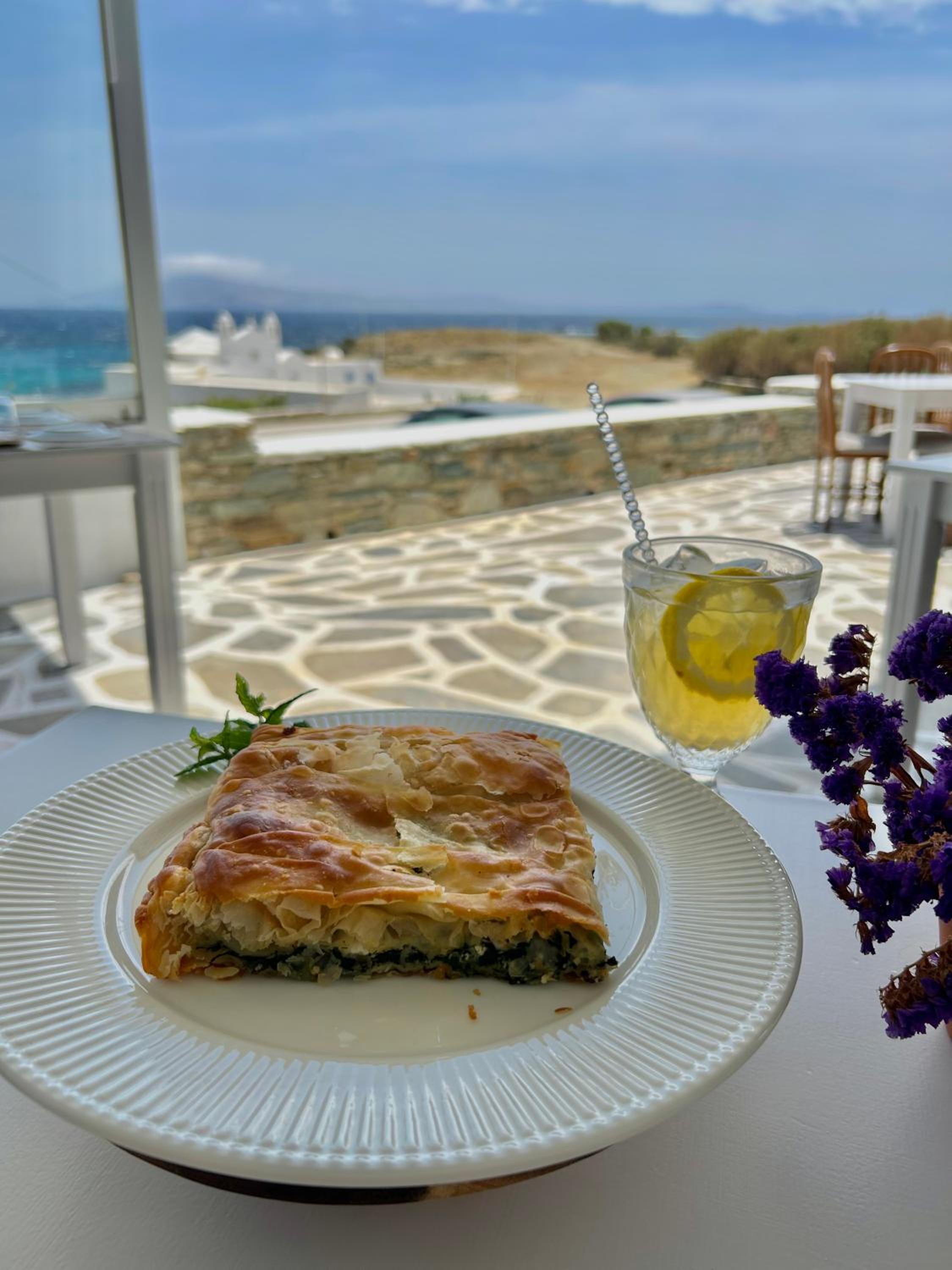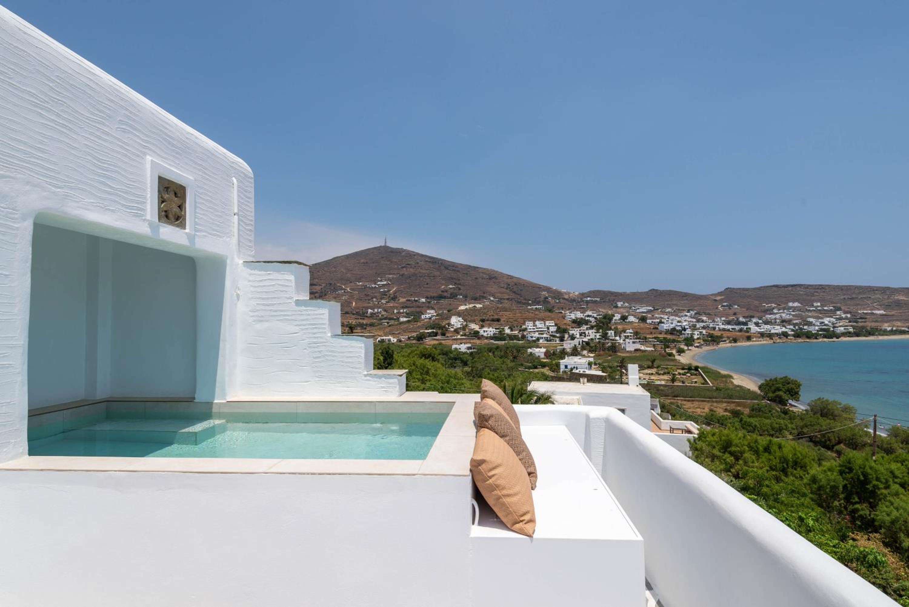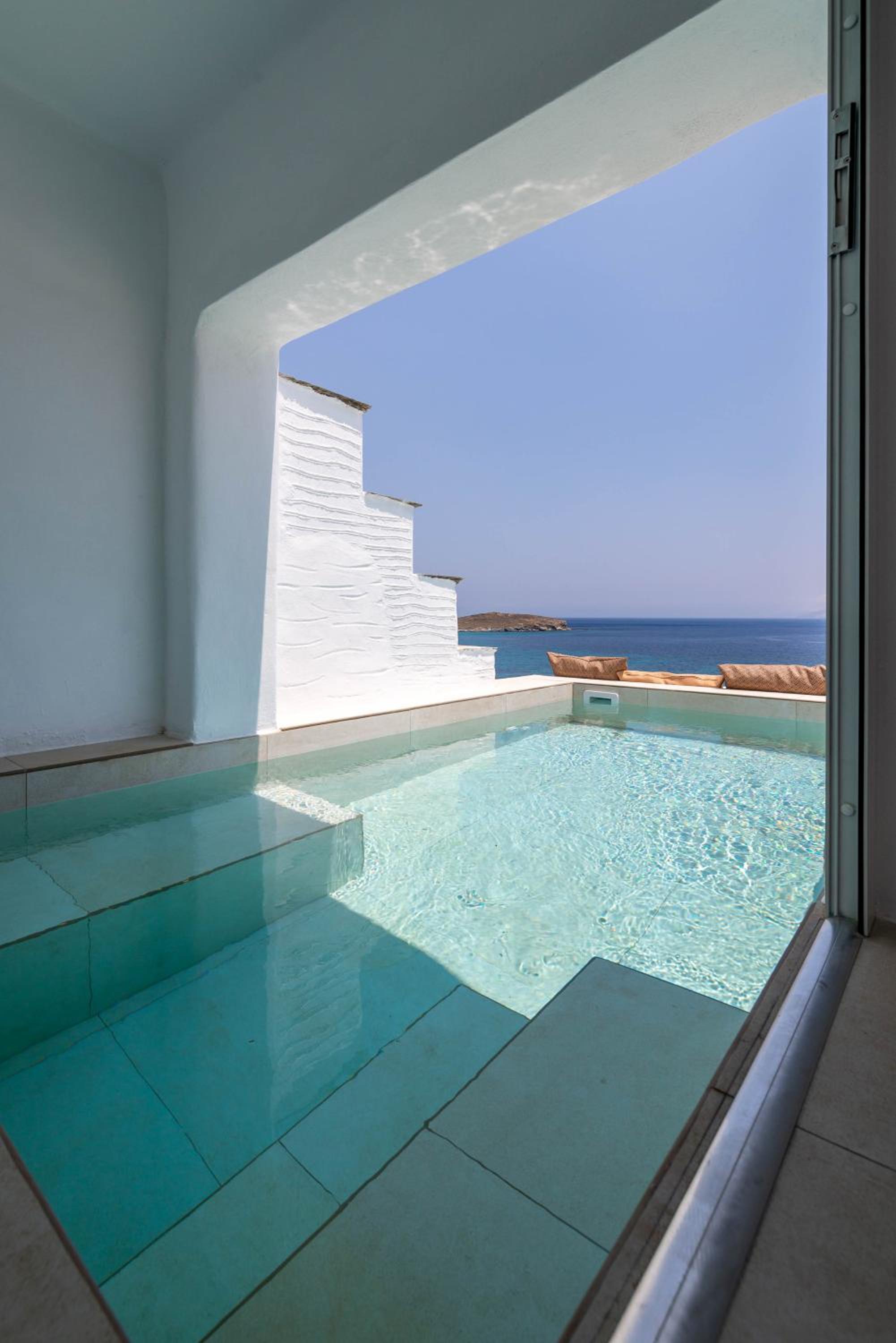 Very comfy beds. Delicious breakfast. Very clean rooms. Charming staff. In the best place in Tinos. Beautiful views. Very clean beach.