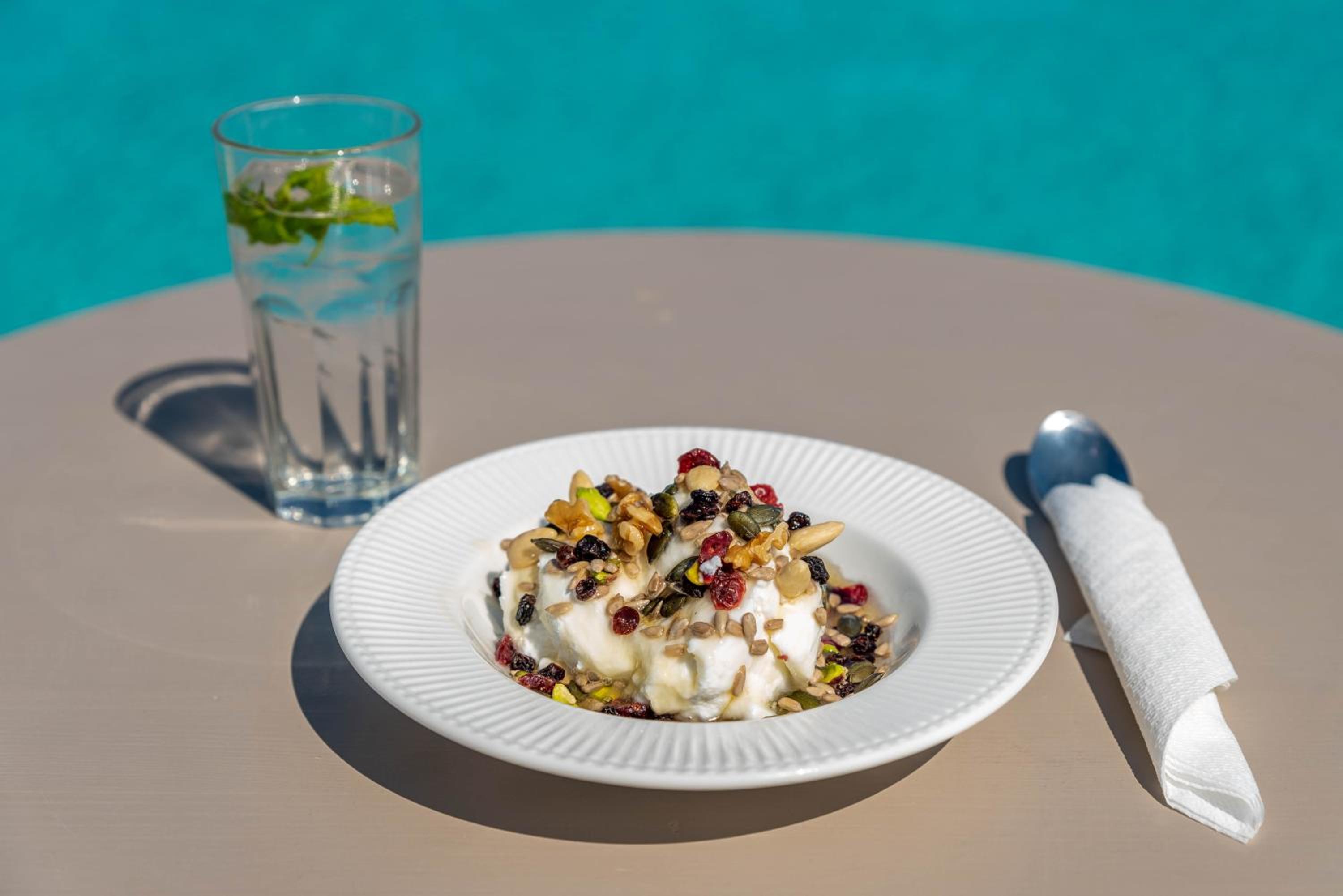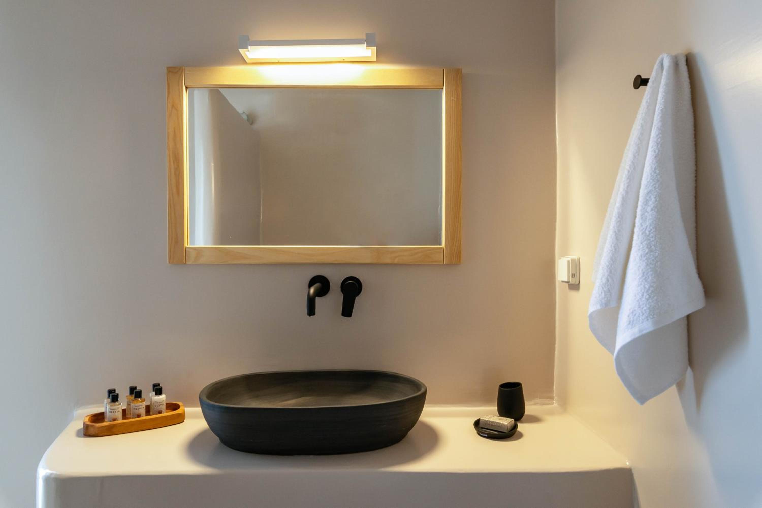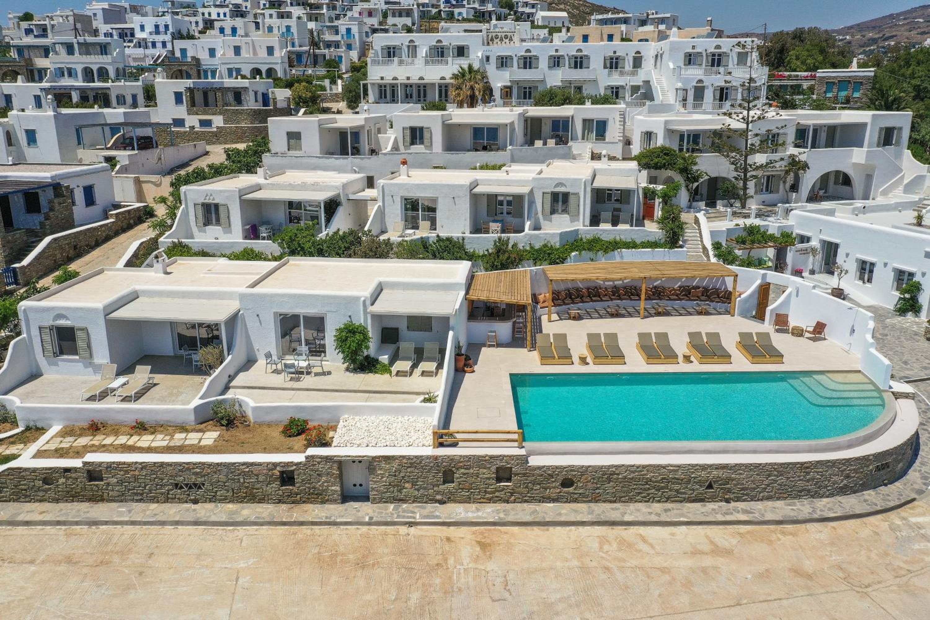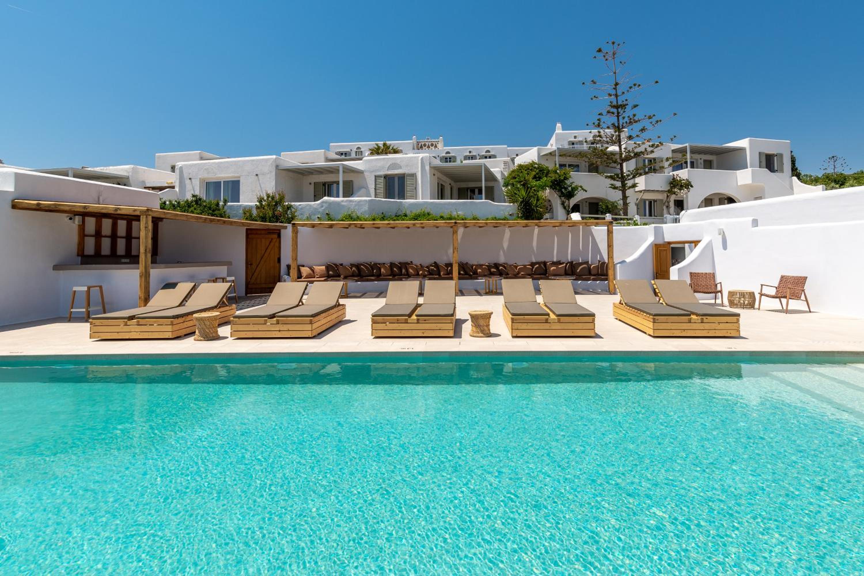 Very comfy beds. Delicious breakfast. Very clean rooms. Charming staff. In the best place in Tinos. Beautiful views. Very clean beach.