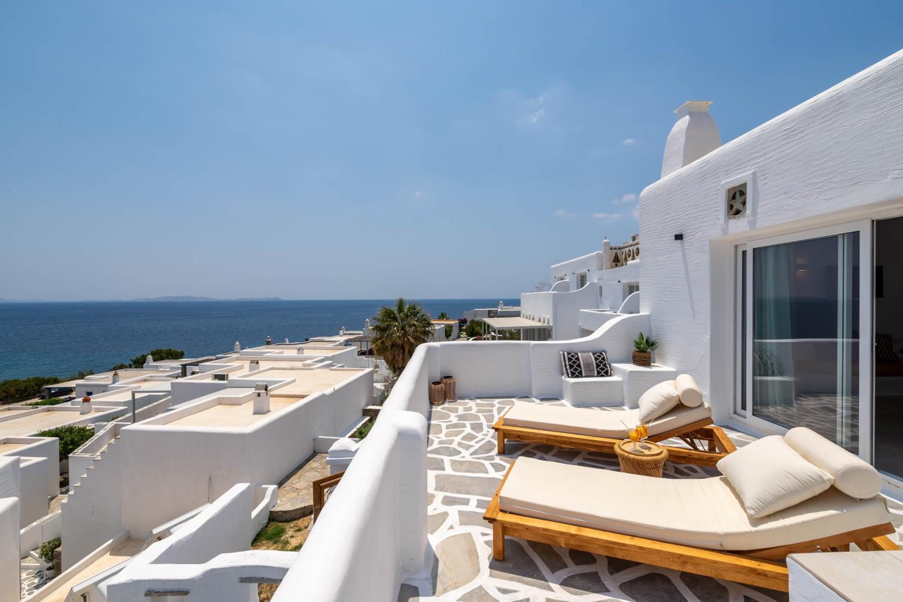 Sea-View Accommodation: Enjoy breathtaking views of the sea from the comfort of your studio or apartment at Cavos Studios.