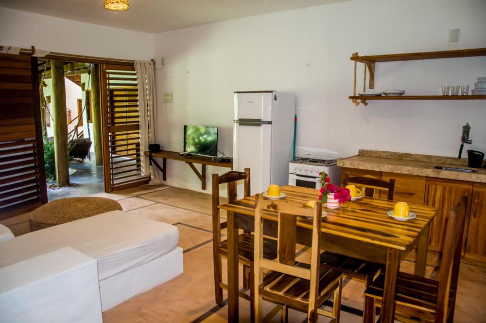 Acomodações sensacionais, super bem equipadas, com cozinha tem varal para colocar as roupas de praia e toalhas para secar. Tem uma piscina deliciosa que funciona até a noite.