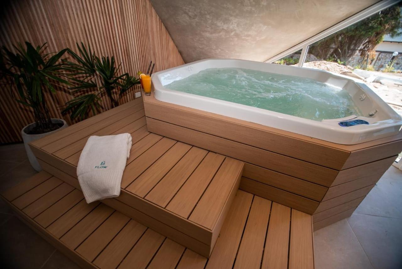 Flow Apart & Spa offers a range of luxurious amenities including a seasonal outdoor swimming pool with stunning pool views, an indoor pool, and a relaxing sauna.