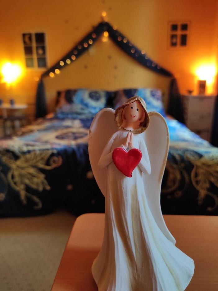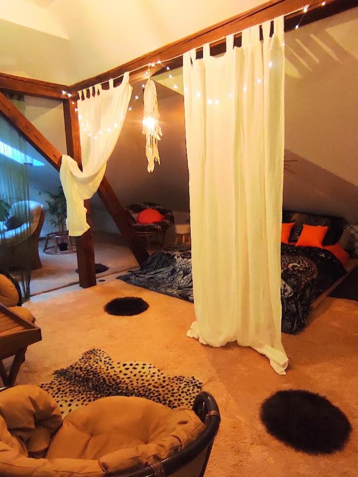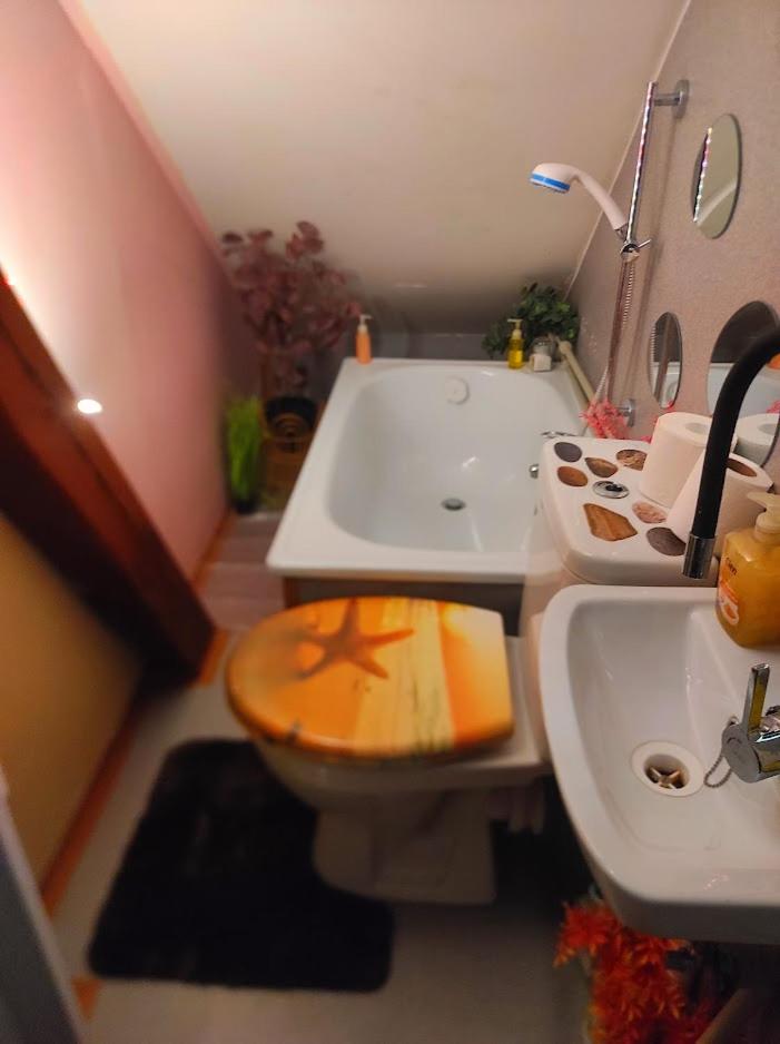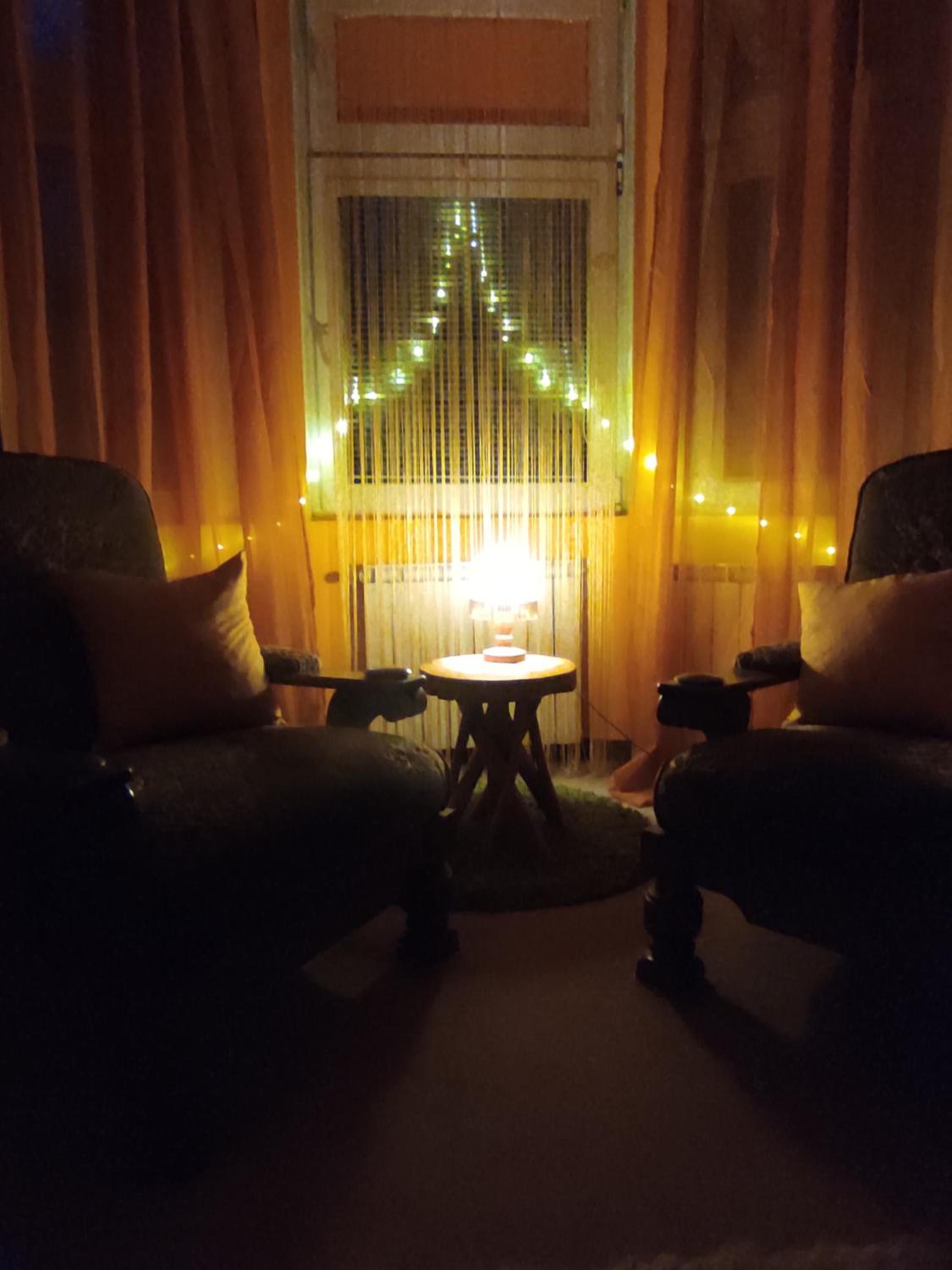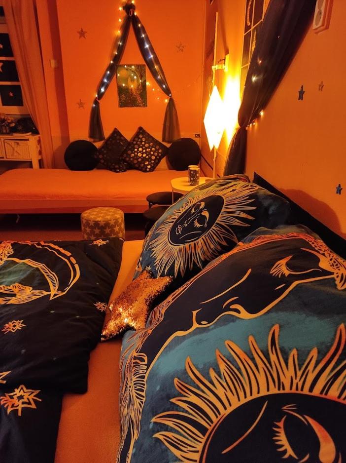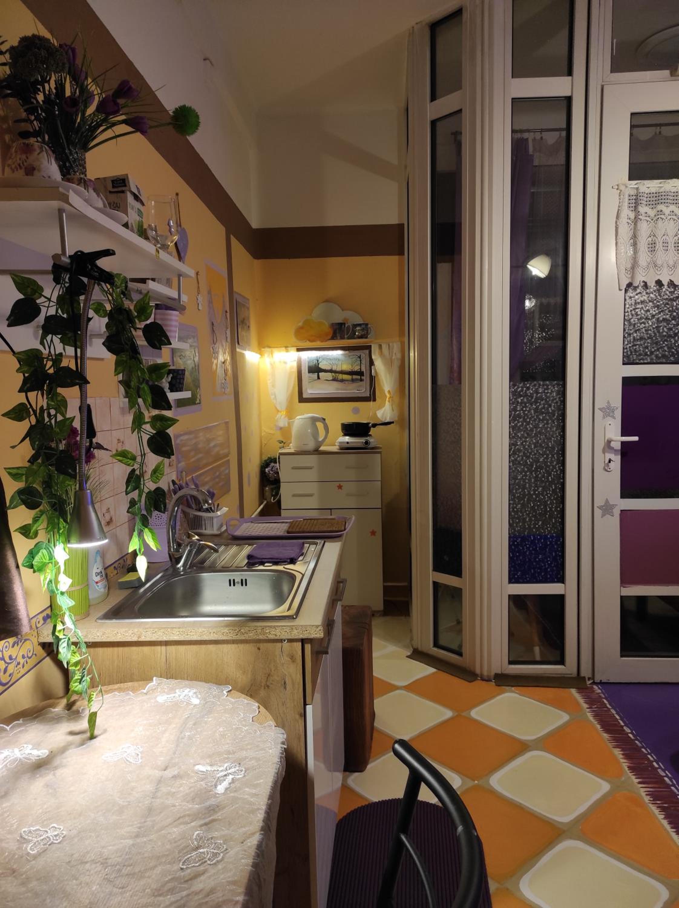 Ich habe gedacht mit meinem Frau wir sind im Liebestempel Buddhismus Viele Lämpchen , Lichterkette überall im Zimmer Sehr Farbe fro ausgestattet die Zimmer kein Kleiderschrank die Küche ist sehr dünne ausgestattet ohne Sieb und keine weitere Kochtöpfen nur die Pfanne und ein Kochtöpfen und ganz wenig Geschirr dazu noch ein ganz kleines Badezimmer mit ein kleines Waschbecken dazu noch der Türrahmen defekt und nicht sicher gefühlt mit in der Nacht um 0:30 Uhr war es eine Rumschauerei die Besitzerin mit einer unbekannte Person keine Rücksichtnahme wenn wir schlafen und das schlimmste ist jetzt über die riecht es nach Duftspray