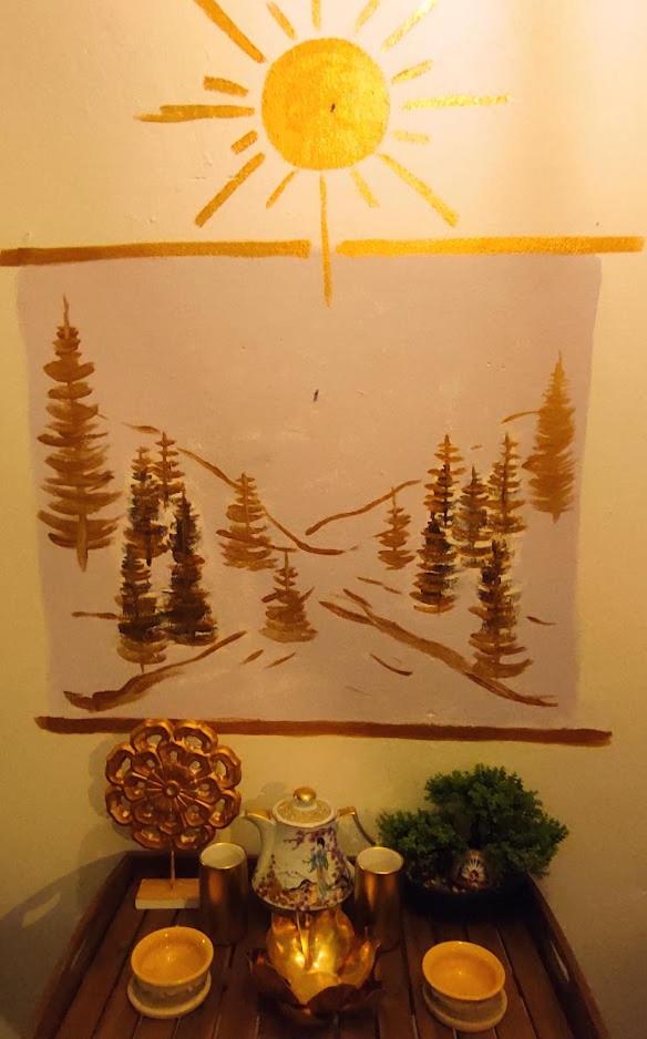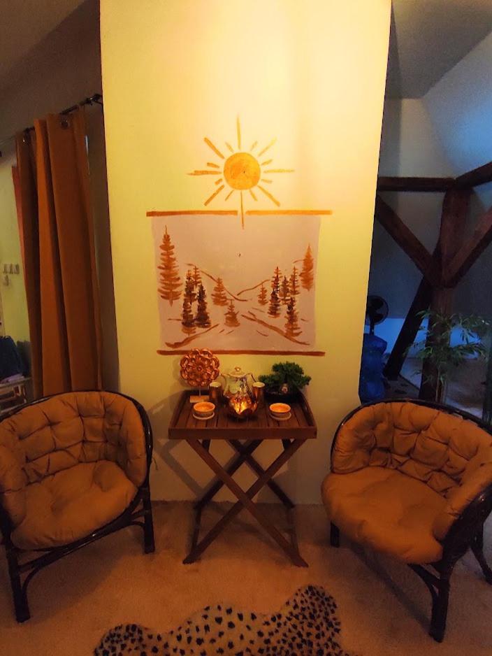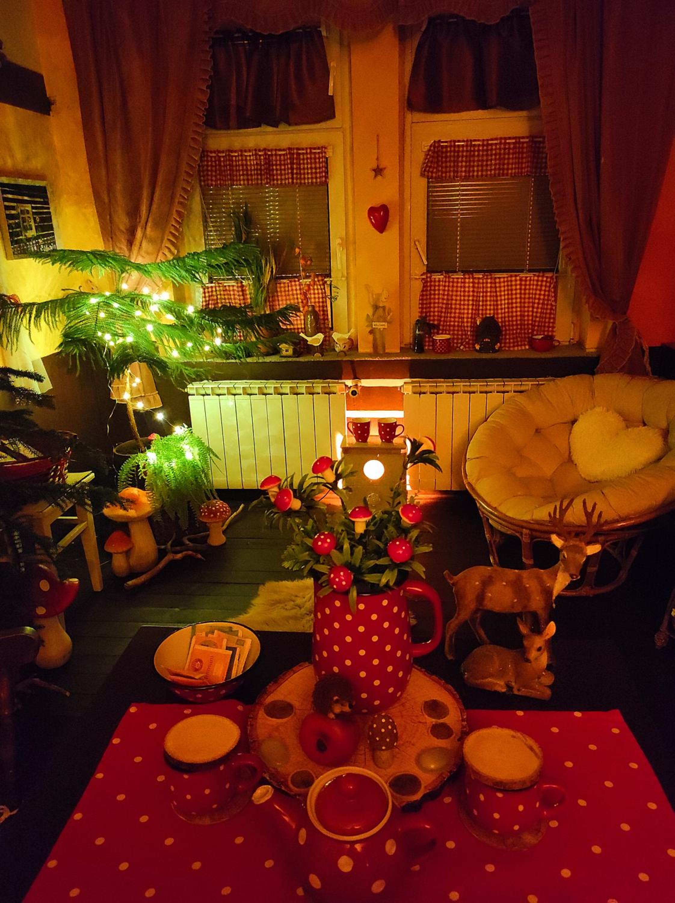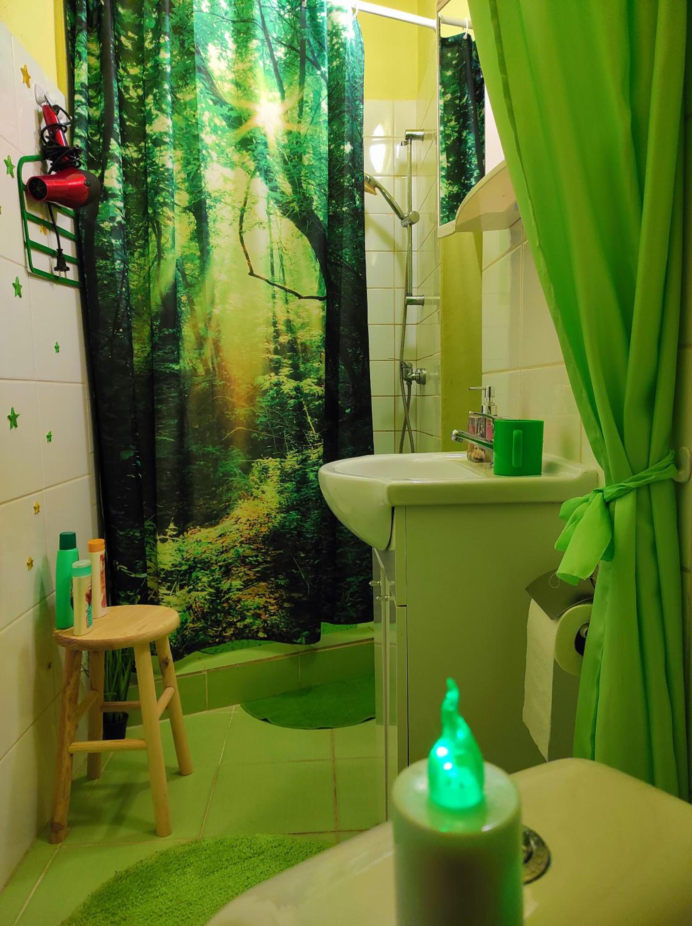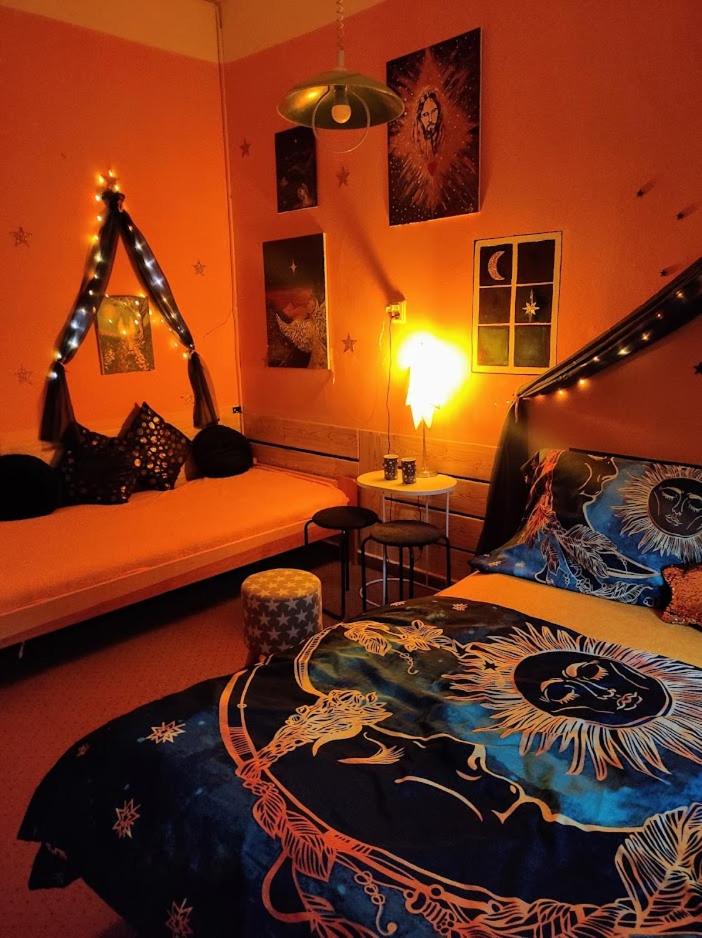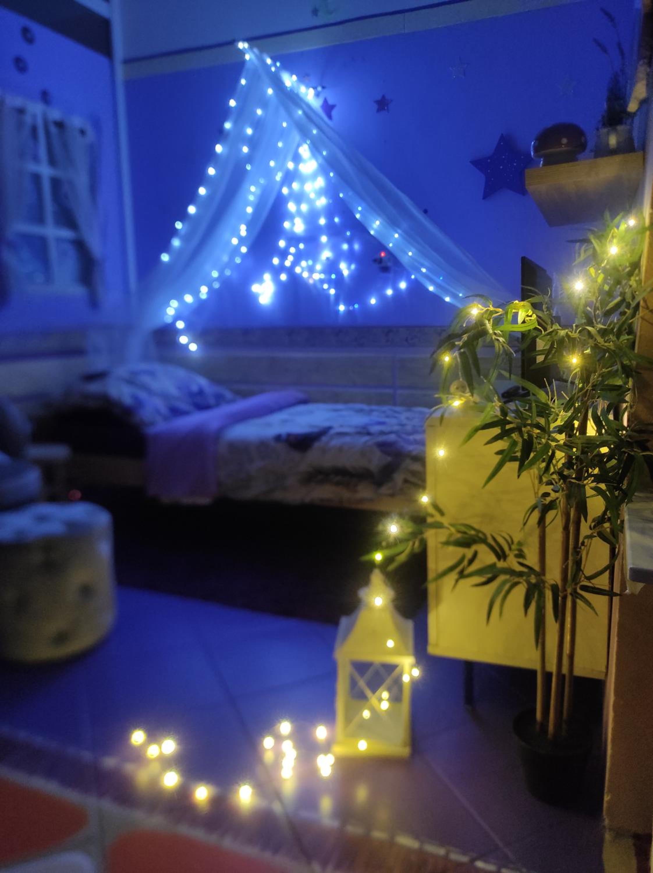 Ich habe gedacht mit meinem Frau wir sind im Liebestempel Buddhismus Viele Lämpchen , Lichterkette überall im Zimmer Sehr Farbe fro ausgestattet die Zimmer kein Kleiderschrank die Küche ist sehr dünne ausgestattet ohne Sieb und keine weitere Kochtöpfen nur die Pfanne und ein Kochtöpfen und ganz wenig Geschirr dazu noch ein ganz kleines Badezimmer mit ein kleines Waschbecken dazu noch der Türrahmen defekt und nicht sicher gefühlt mit in der Nacht um 0:30 Uhr war es eine Rumschauerei die Besitzerin mit einer unbekannte Person keine Rücksichtnahme wenn wir schlafen und das schlimmste ist jetzt über die riecht es nach Duftspray