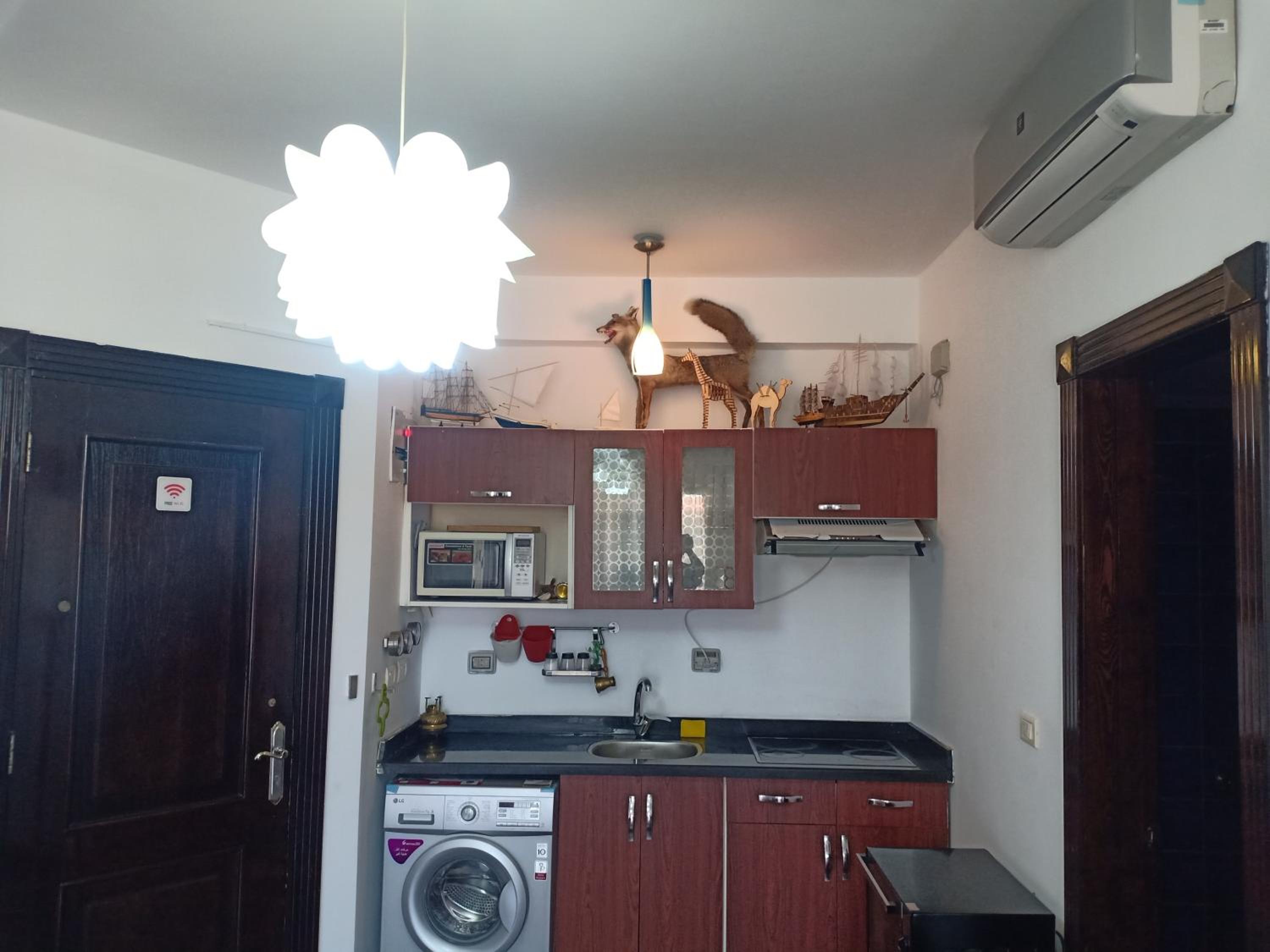 The place is good and the family atmosphere can be felt in Porto Matrouh as whole. The unit has good air conditioning and 2 bathrooms. There's also a well equipped kitchen with pots, microwave and water boiler to make tea. So it was convenient for our stay. The garden is also very good and had swing and table and chairs.
