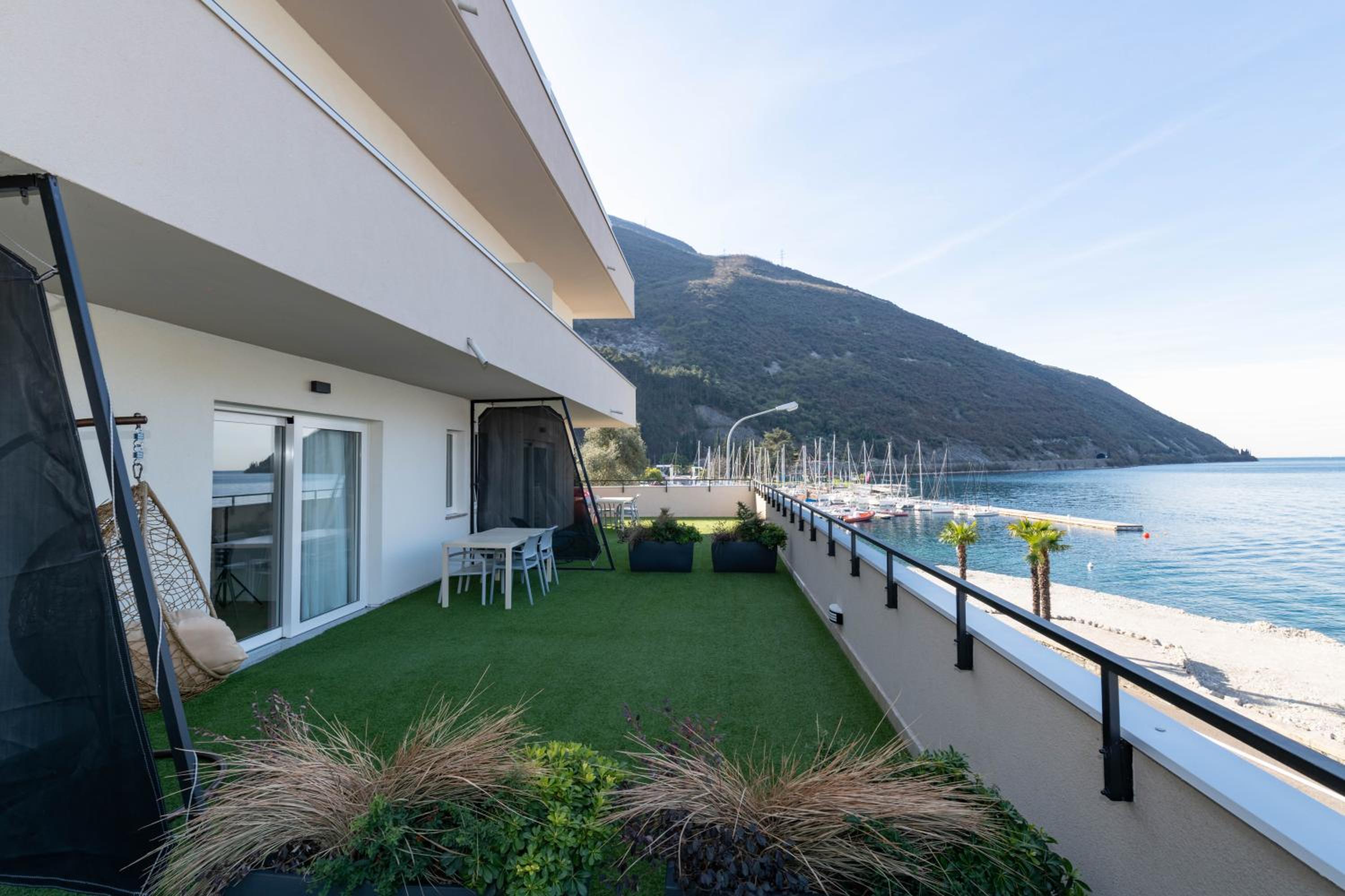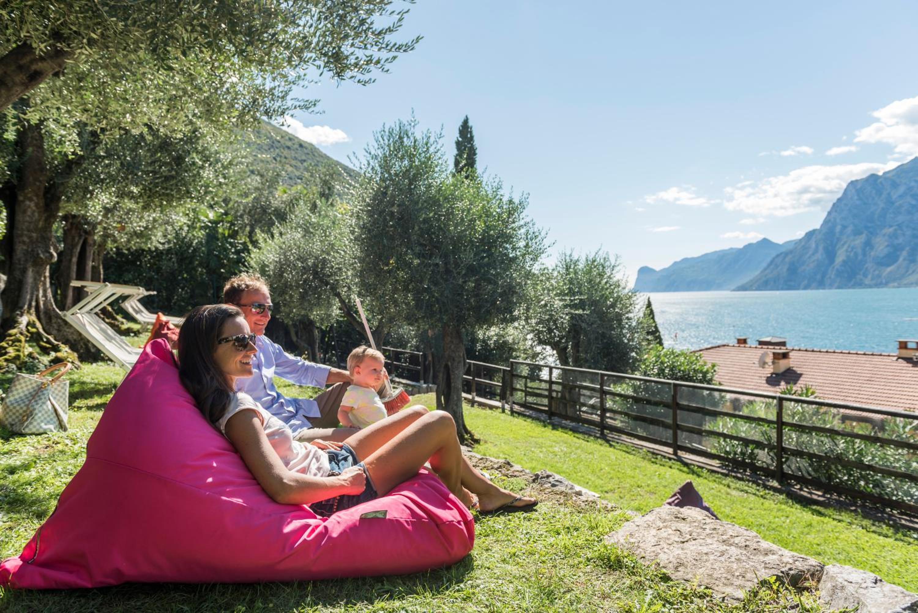 Indulge in the tranquility of centuries-old olive trees and stunning lake views in the peaceful gardens. Enjoy the sun terrace, children’s playground, and beach bar for ultimate relaxation.