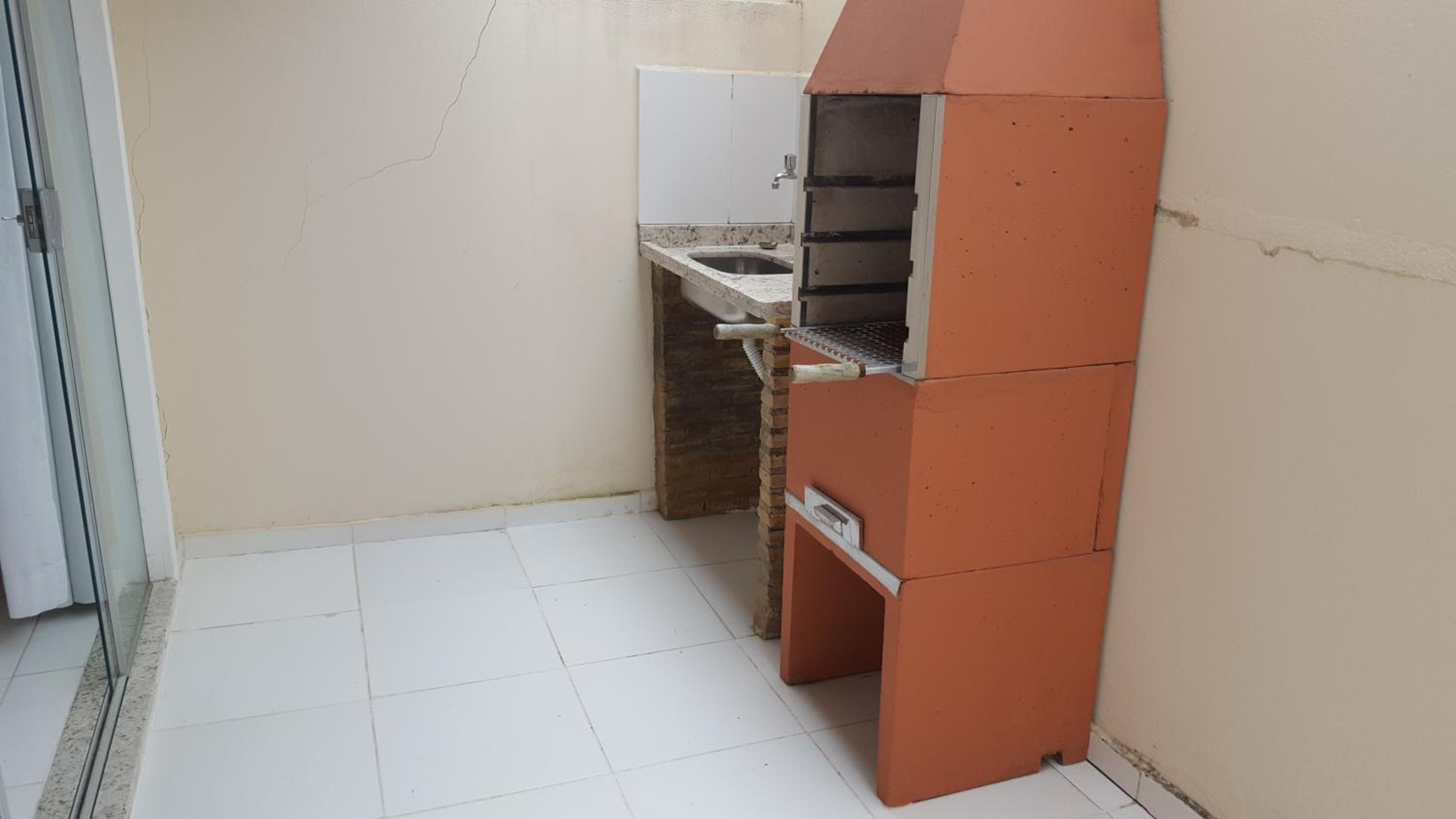 As instalações do tanque e pia externa estão ressecadas pelo tempo com vazamento de água e a churrasqueira sem o cuidado de manutenção.