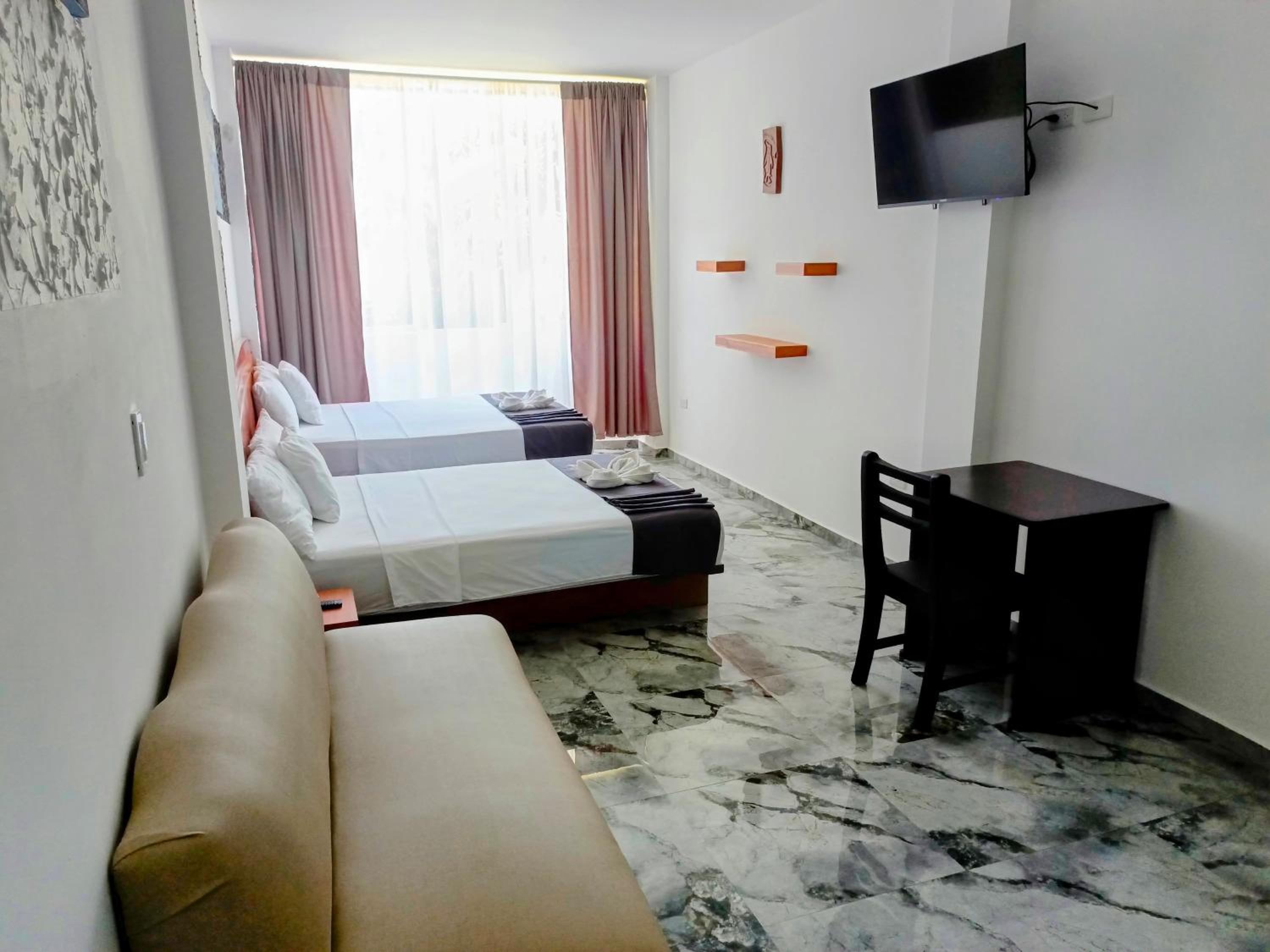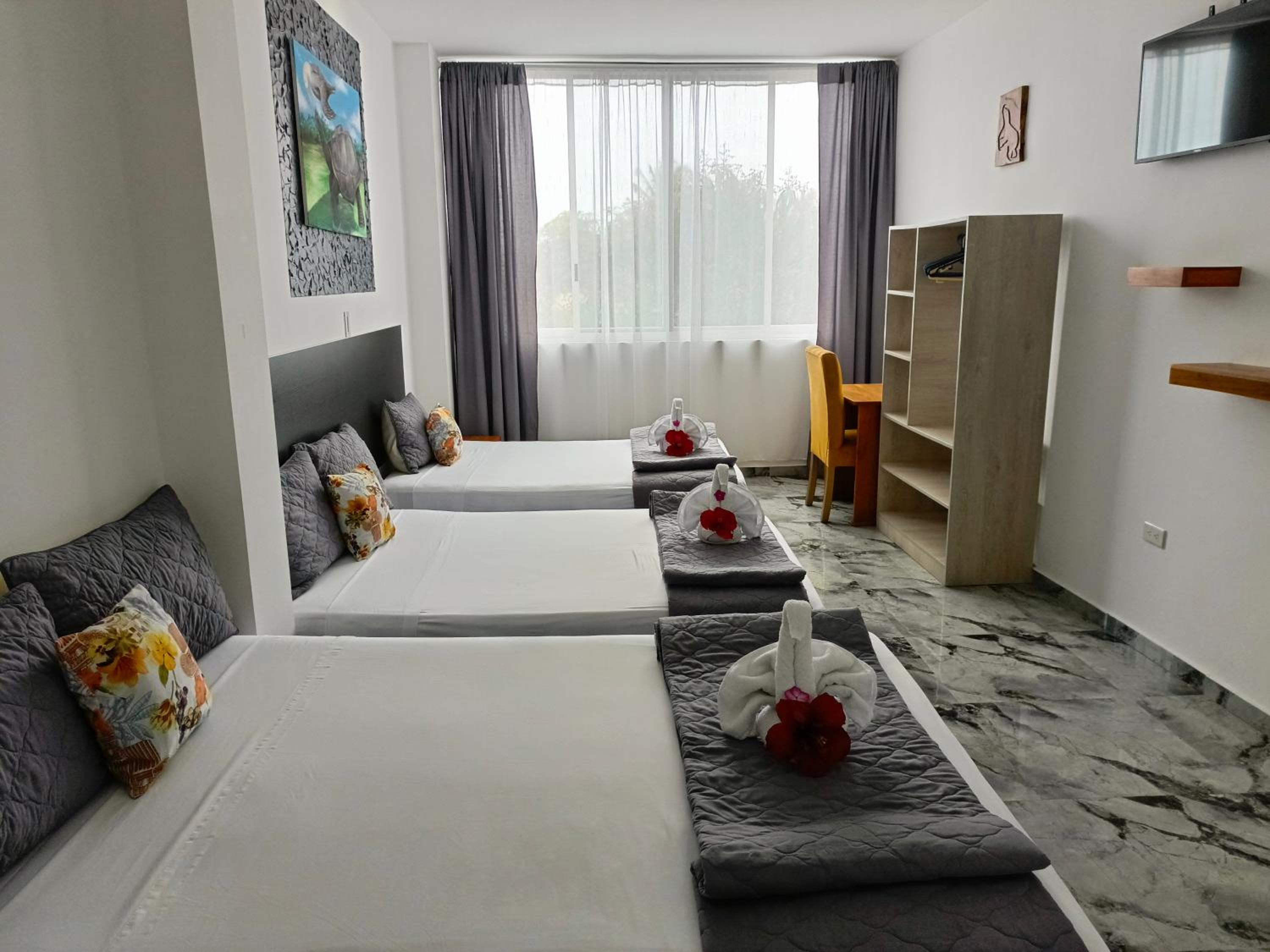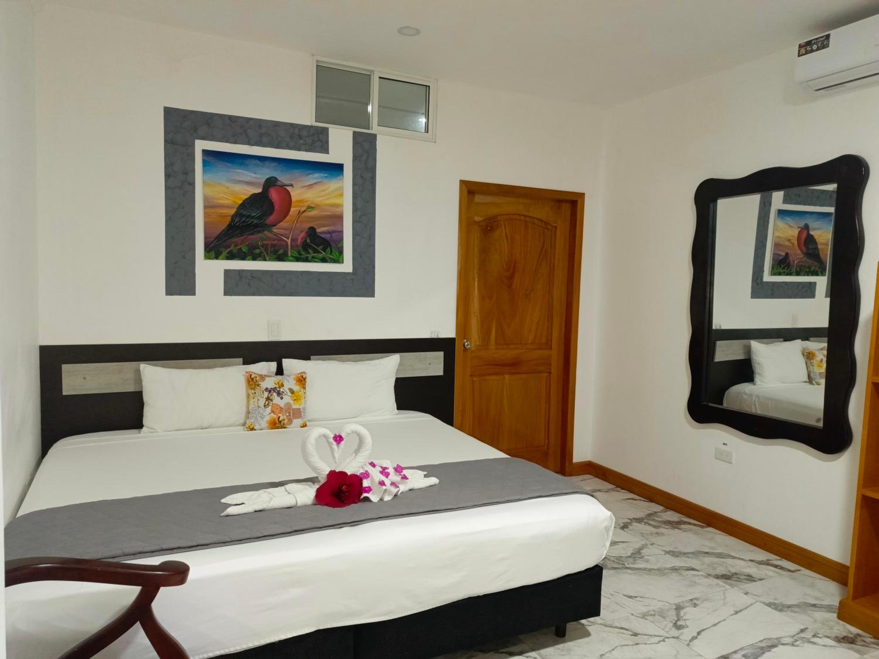 Patty House Galapagos offers air-conditioned rooms with flat-screen TVs and DVD players. Some rooms even feature a cozy seating area for relaxation. The private bathrooms are equipped with modern amenities for your comfort.