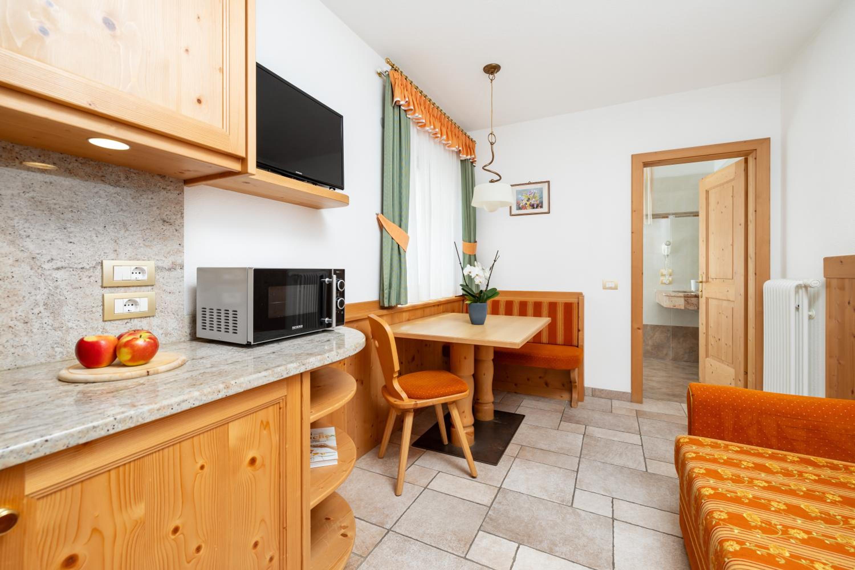 Located in the heart of San Cassiano, our residence is just 200 meters from the Piz-Sorega cable car. With a bus stop 300 meters away, exploring nearby towns like Brunico is a breeze.