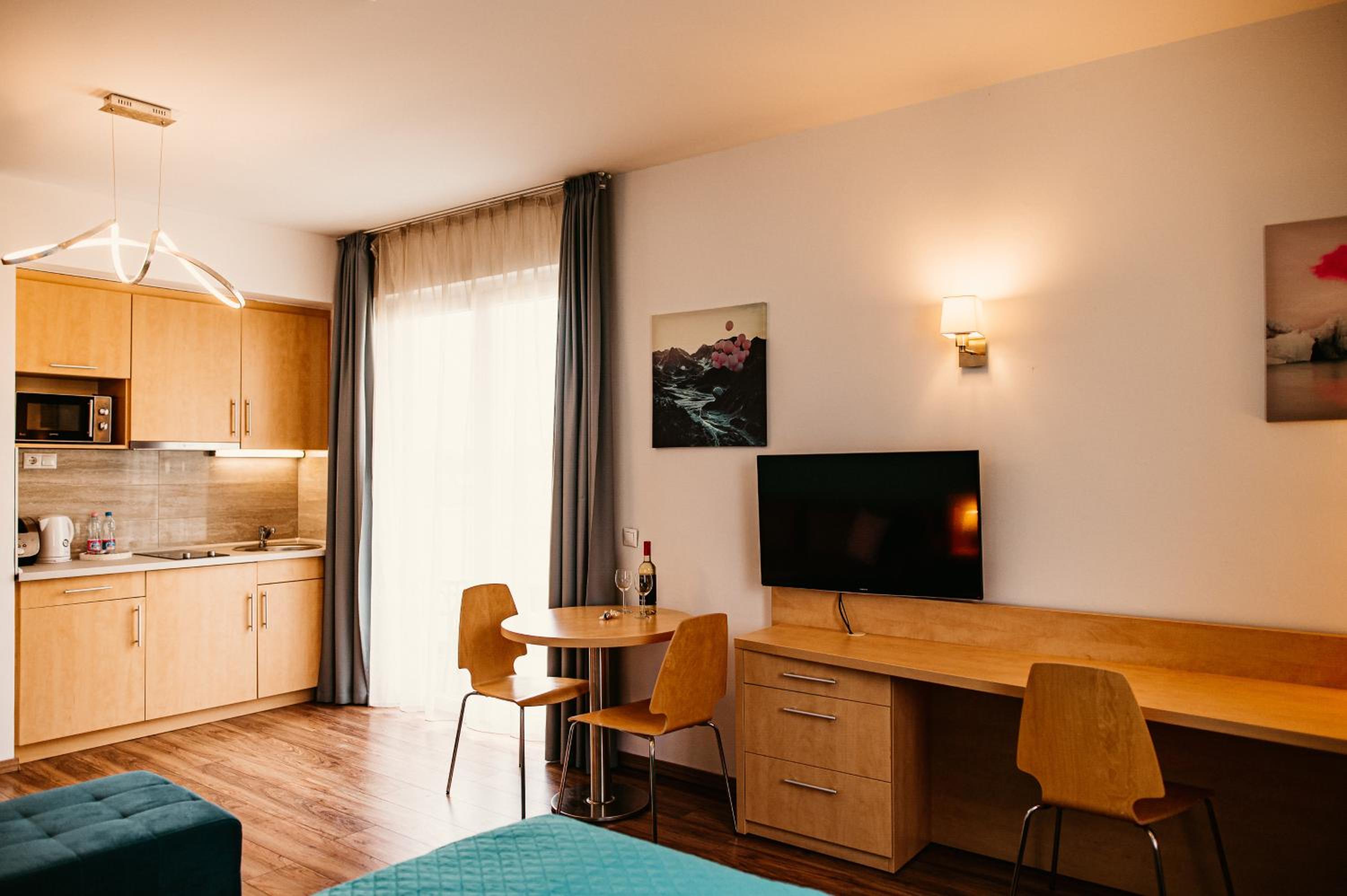 Tágas, csendes erkélyes szoba. Infraszauna nagyon jó volt, többször is használtuk. Egyszerű bejutás a szállásra. Felszerelt konyha, ingyenes parkolás is biztosítva volt. Séta távolságra volt minden.