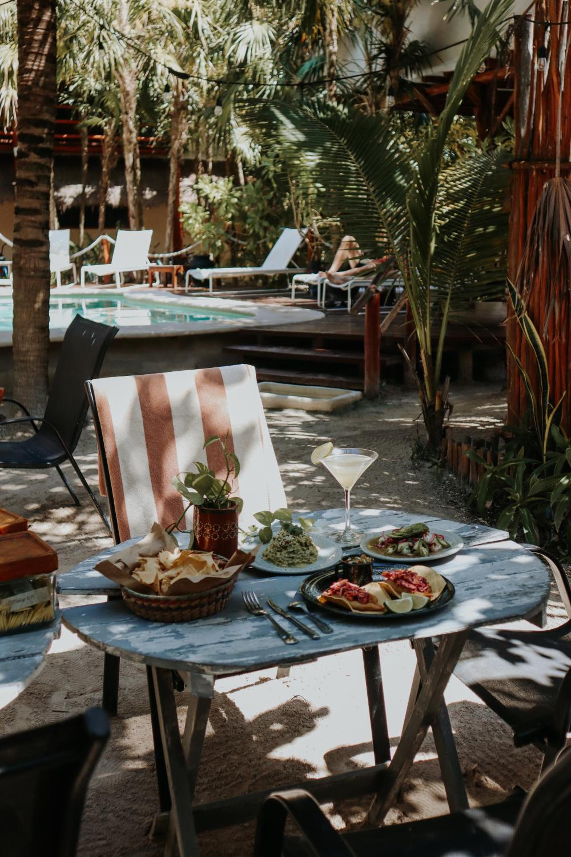 L'emplacement tout près de la plage et d'un resto. Magnifique coucher de soleil. Belle ambiance autour de la piscine avec musique relax. La gentillesse des cuisiniers au déjeuner :)