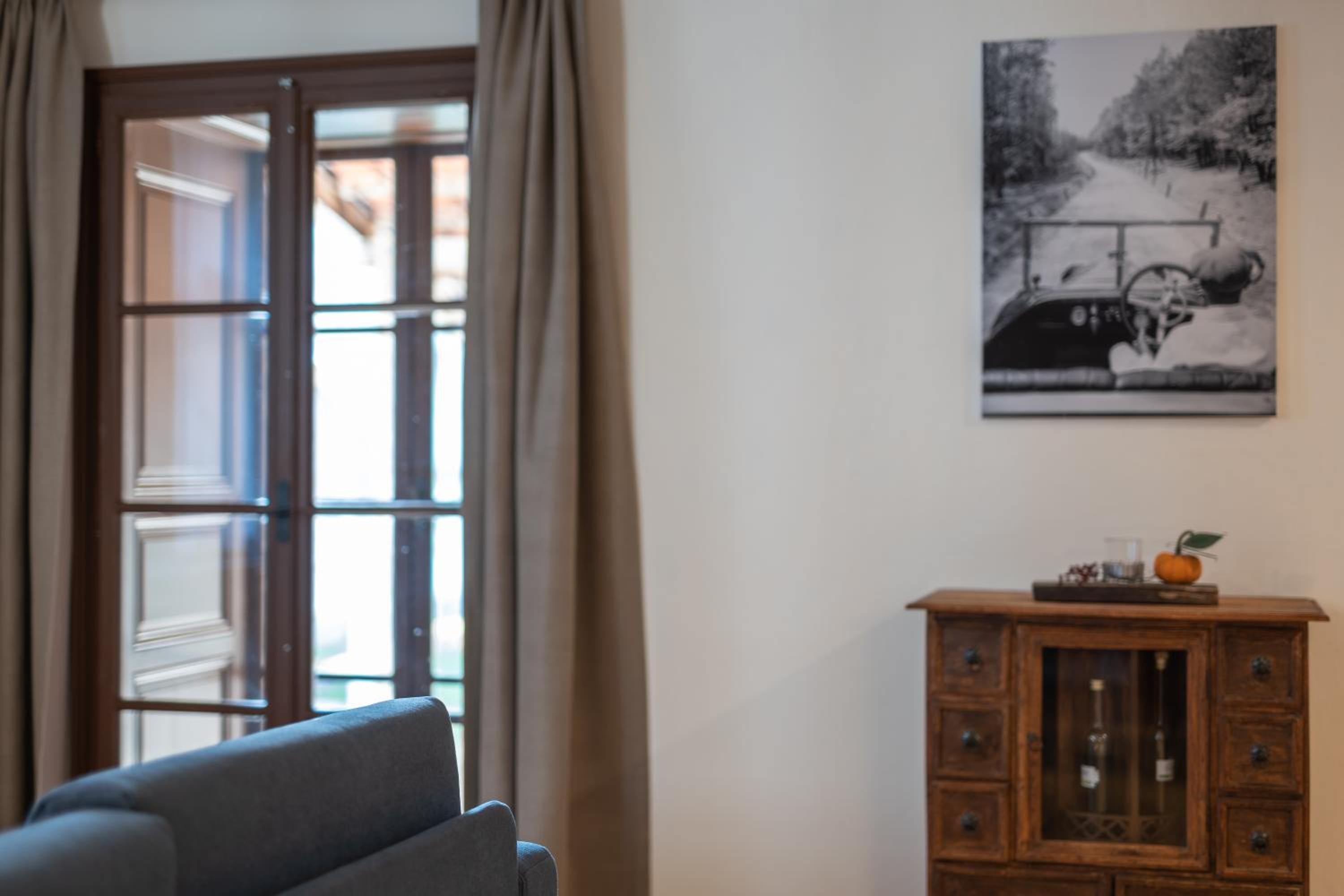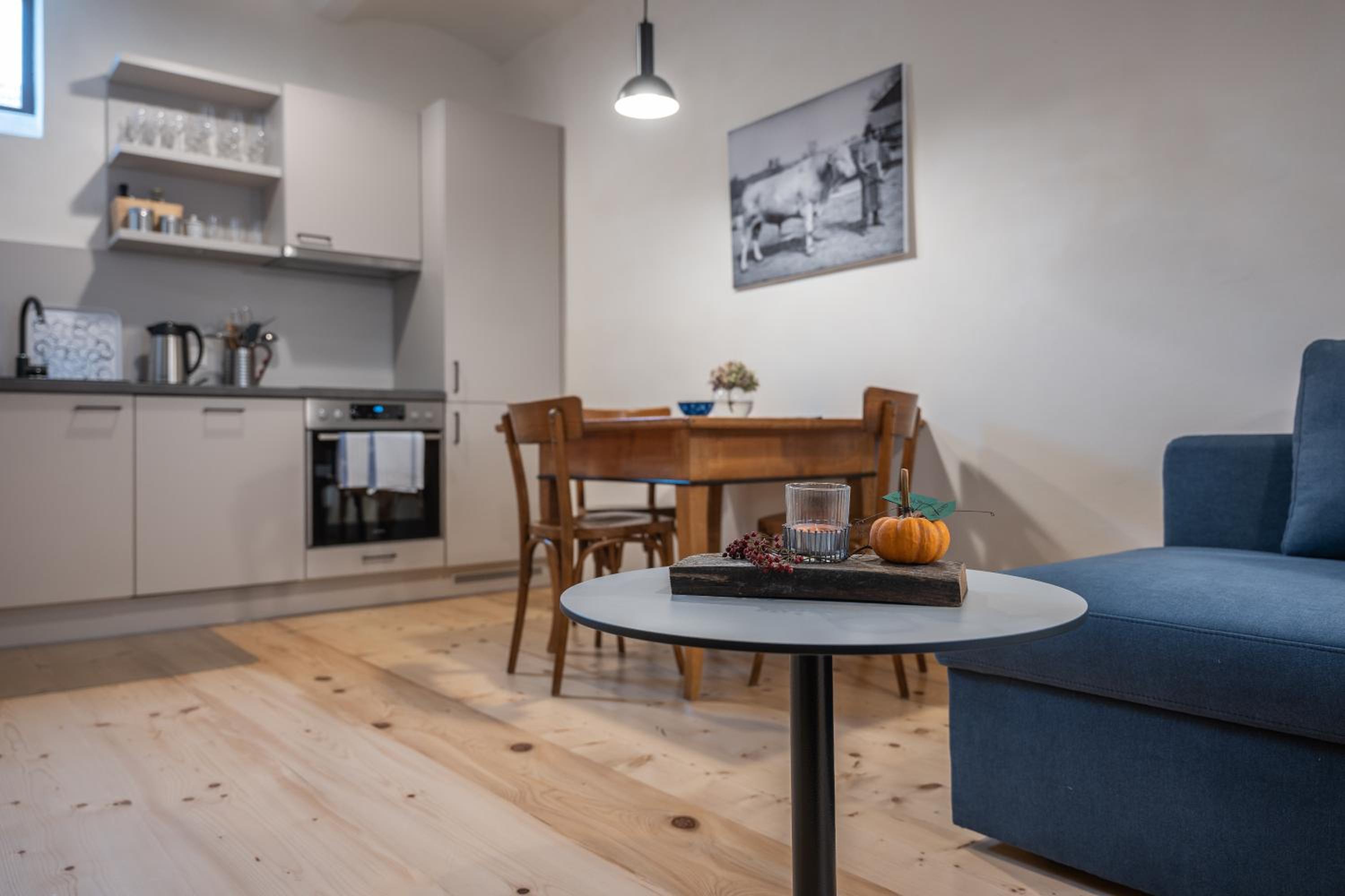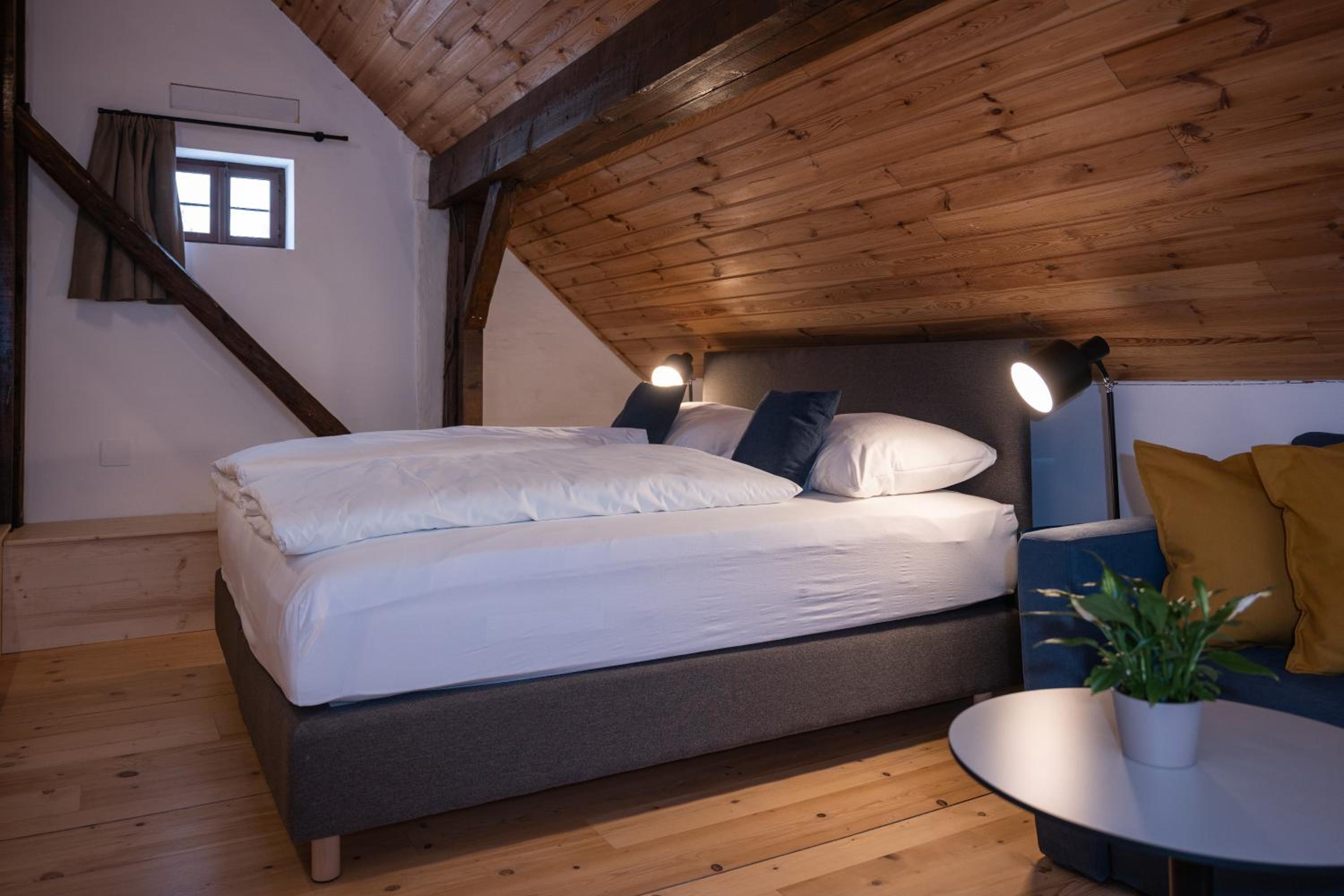 By far i must say that this was one of the most indite and nice places where I have check-in. The whole construction and building are based on a traditional old farmhouse and living house that was fully renovated and modernized but also kept the original aspect. The place is very nice and quiet, you get a lot of facilities such as barbecue, patio, you can rent ebikes, you have a huge clean garden. Our room was selected by us to have 2 levels separated by a steep staircase, it was absolutely beautiful. Everything was spotless clean, everything was modern and functional. The lower level area you have a large kitchen space fully equipped with everything needed for a full family, even a dishwasher! The breakfast was also an interesting concept as in the morning you will find a fresh-box on your door steps which contains various things including fresh eggs so you can prepare them as you want. To make things even better there is also another common space room in which you have a wine cellar, washing machine, dryer, books and even some children toys. To top it all the location is in a very nice and quiet place, there is a small parking next to the property and you are also close to the local aqua-park.