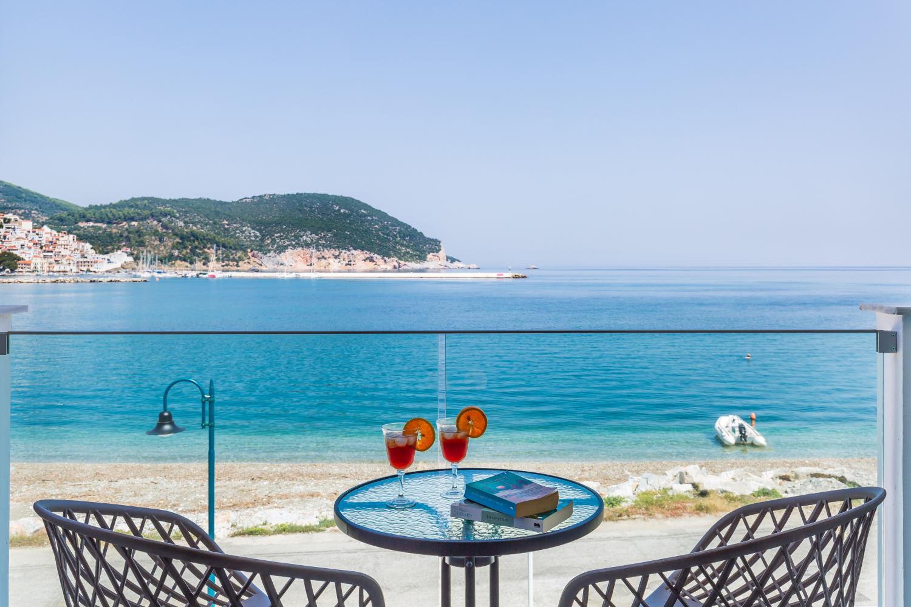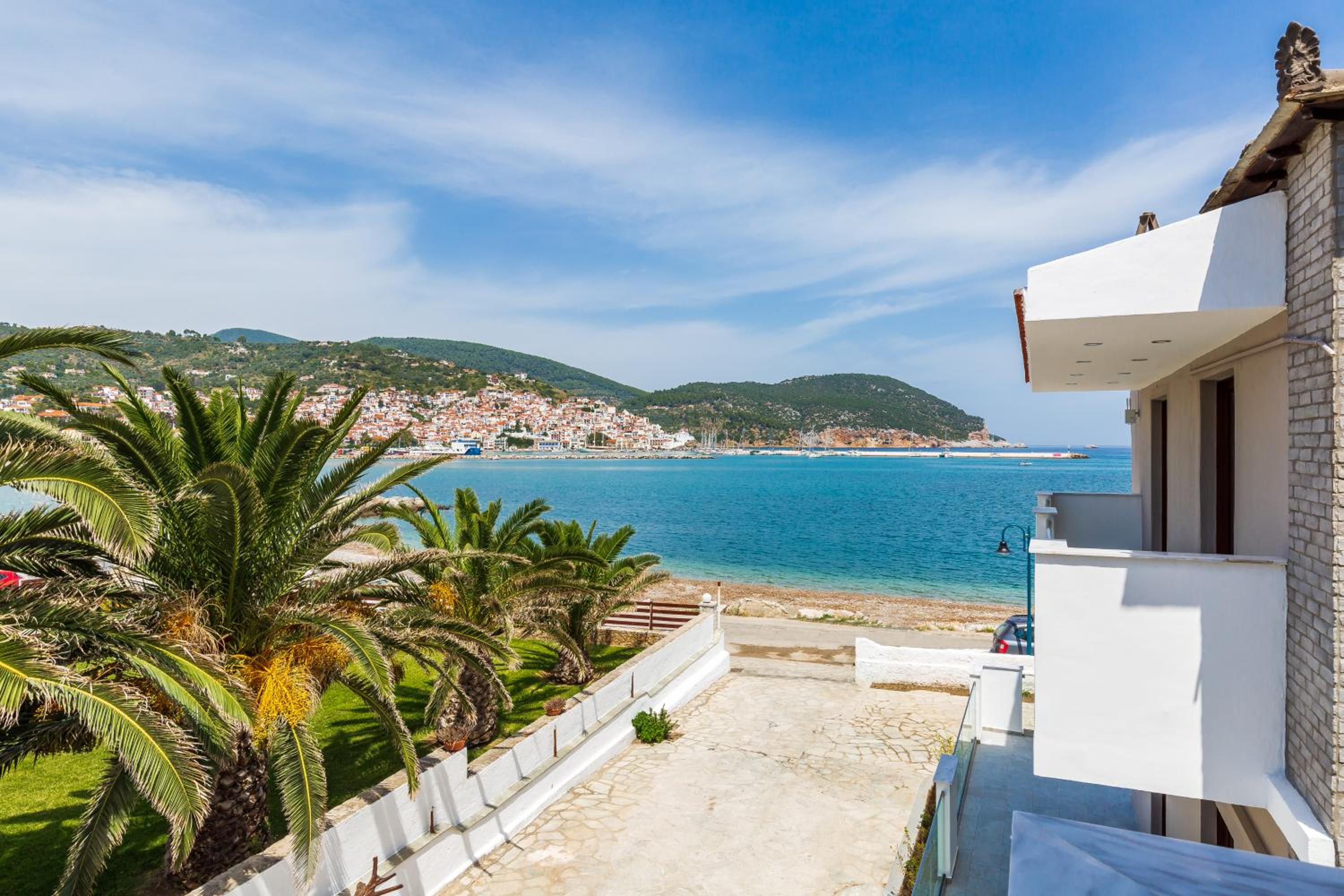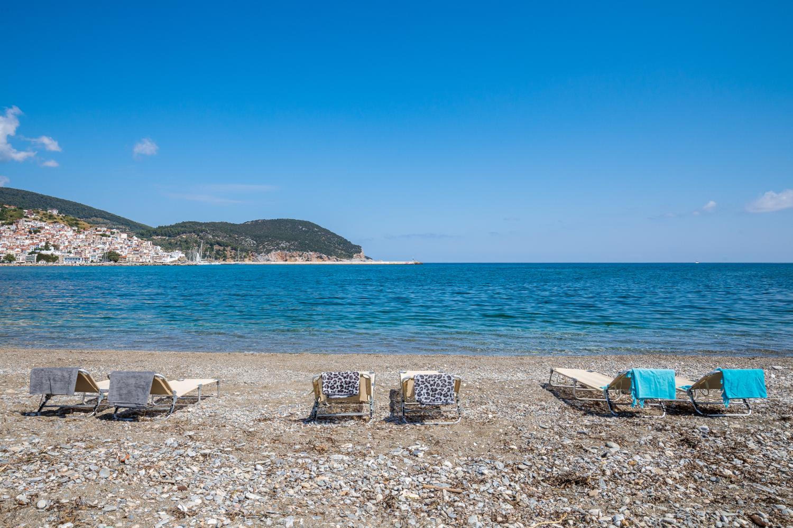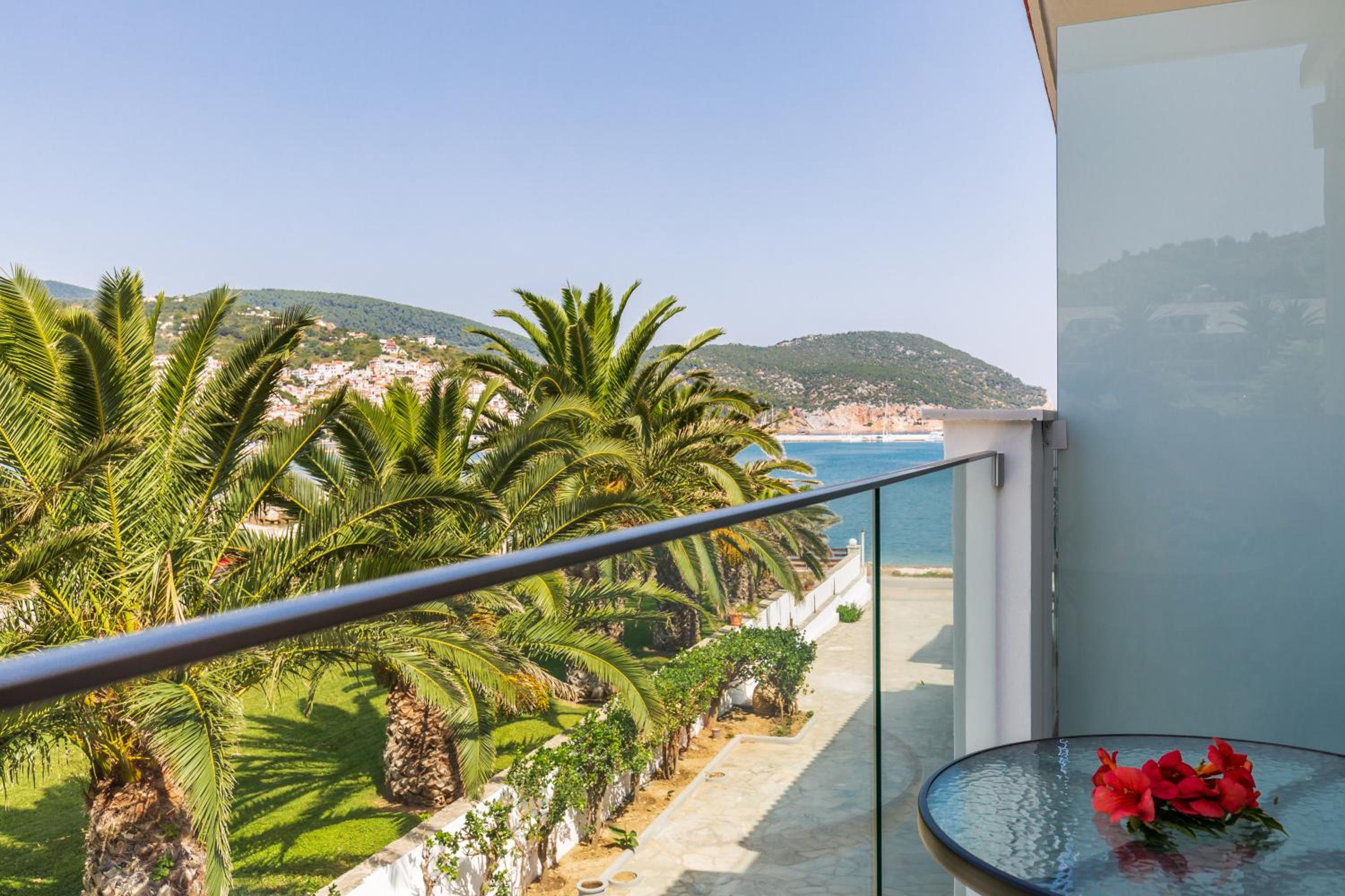 Prachtig zicht op de zee en Skopelos stad vanuit ons terras van kamer 102. Zeer verzorgd ontbijt buiten naast het zwembad in de schaduw. Zeer vriendelijk personeel met een super uitleg over de troeven van het mooie eiland Skopelos.